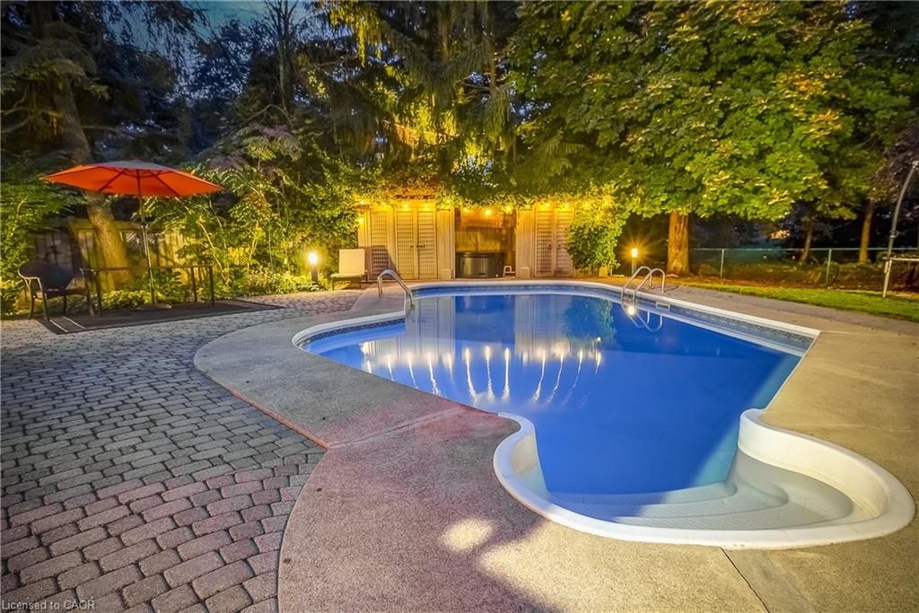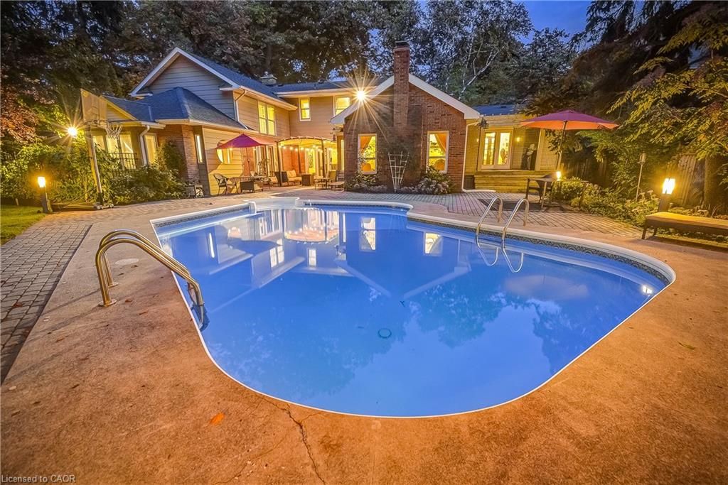 Welcome to this sprawling executive 4 level home in the coveted roseland community. Just steps away from vibrant downtown burlington, the lake and within sought after school catchment. From the moment you arrive, you will be impressed with the lovely curb appeal this home offers on a premium 80 foot wide lot, double car garage and parking of up to 5 cars. Once inside the spacious foyer, you'll step up to a large welcoming living room perfect for entertaining and enjoying the warmth of the wood burning fireplace. The kitchen featuring stainless steels appliances and stone countertops flow effortlessly to the main floor office, dining room and grand family room with vaulted ceilings, skylights and wood burning fireplace. Convenient main floor primary bedroom suite features an atrium ceiling, a 5 piece ensuite, walk-in closet, gas fireplace & walkout to private, park-like grounds with heated in-ground pool. Second storey offers four spacious bedrooms, one featuring a 5pc ensuite and an additional 4pc bathroom. Lower level recreation room has a wood-burning fireplace, wet bar & built-in bar fridge. Relax in style within the massive backyard and perfect sanctuary for gatherings & extending outdoor enjoyment with the heated in-ground pool and serene views of the mature landscaping and perennial gardens. Enjoy the convenience of being within walking distance to downtown burlington with its array of shops, restaurants, the arts center, spencer smith park, and much more. Experience the vibrant lifestyle this community has to offer right at your doorstep.