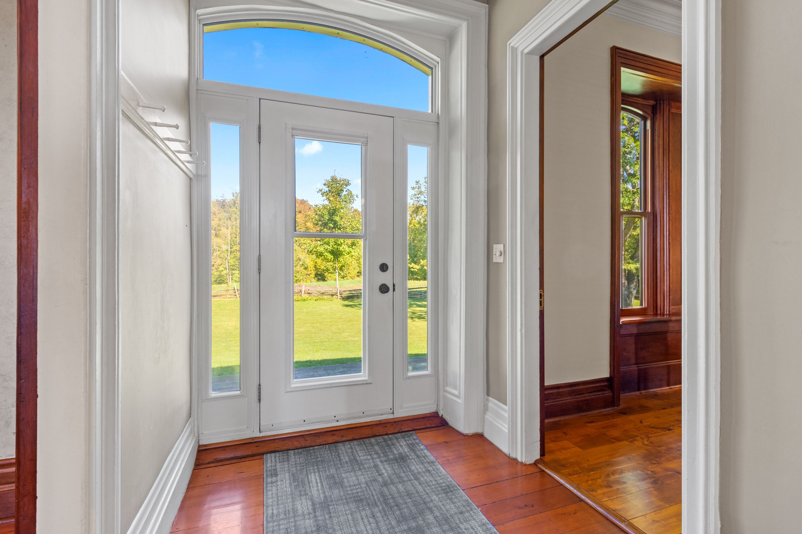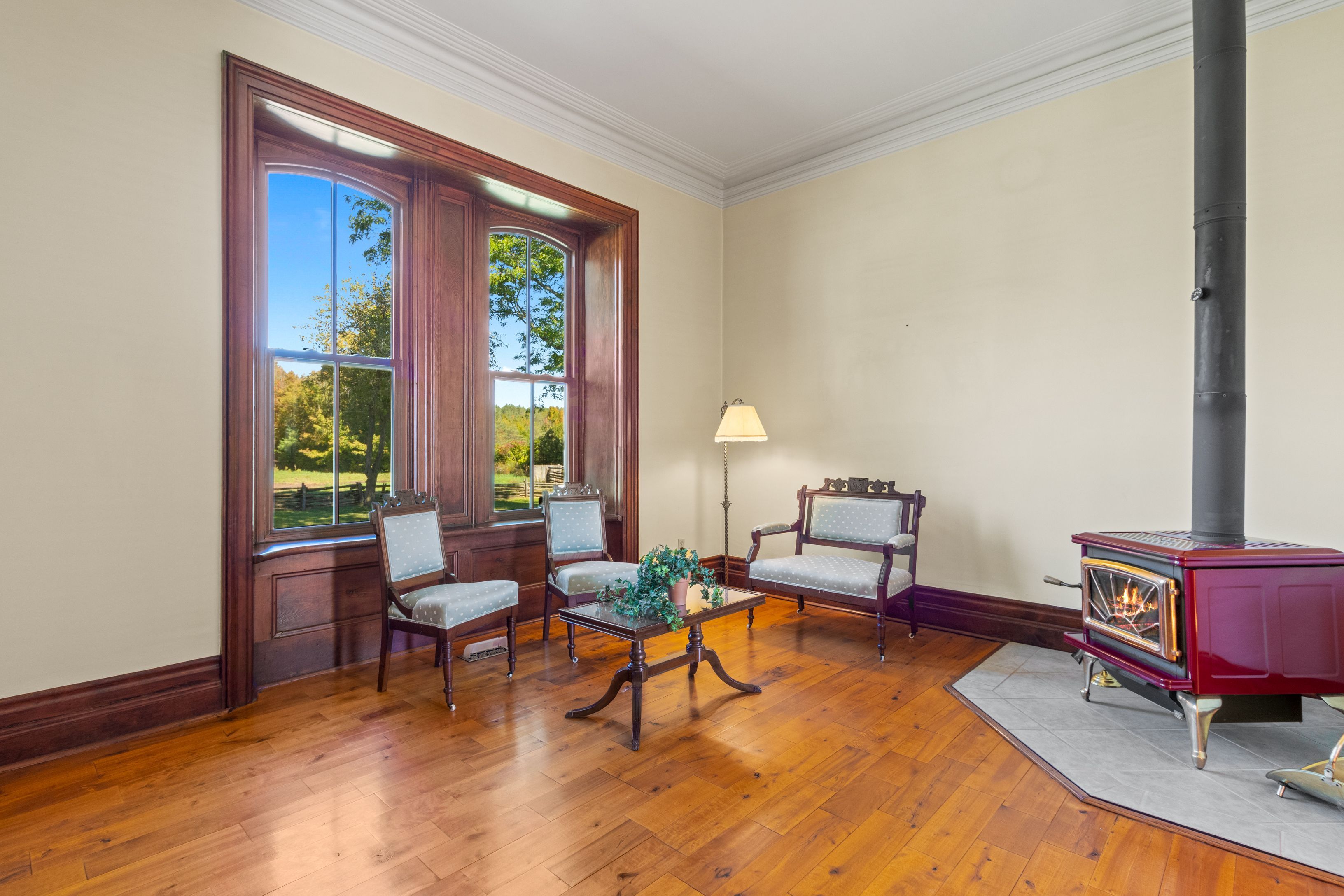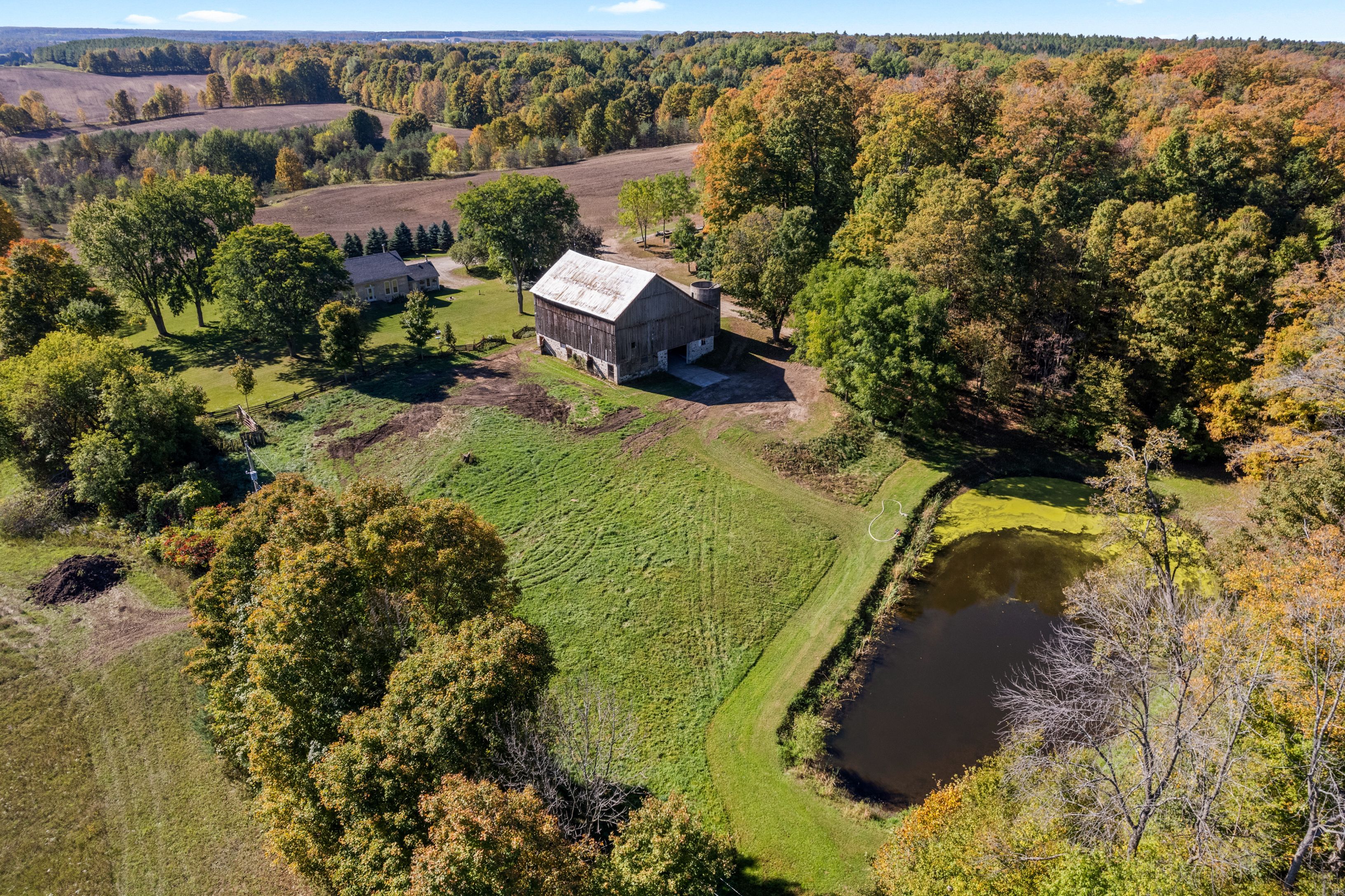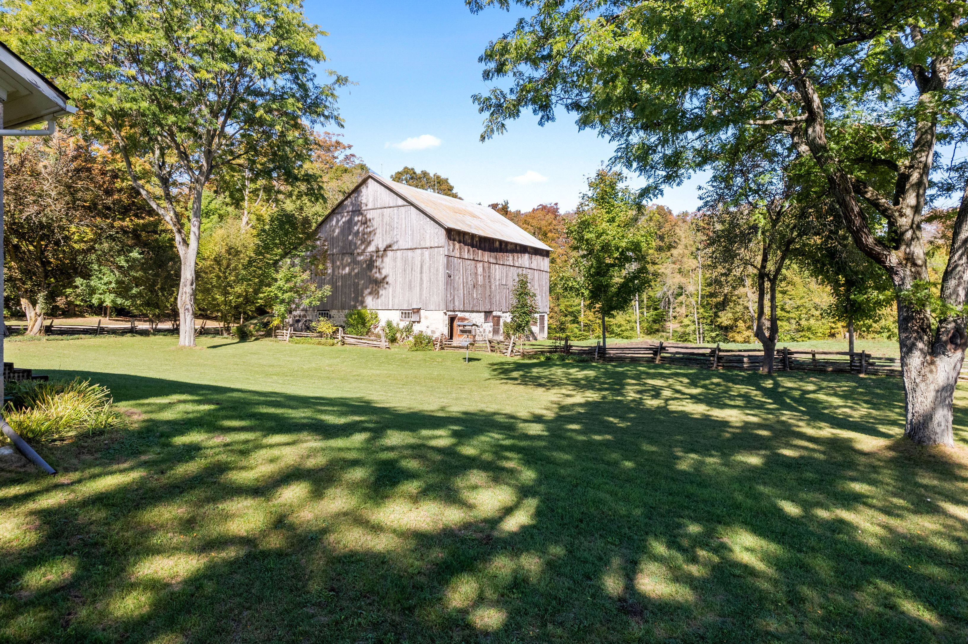 An exceptional stone farmhouse set in the middle of 71. 65 acres of rolling hills, mature forest and beautiful views. This functional estate includes 35 workable or cleared pasture acres, and 35 acres of woodland with ponds and trails. Ultimate privacy is assured via the long, tree-lined lane leading to the historic 1870s stone house. With its unmistakable character and modernized farmhouse charm boasting over 2200 sq. Ft of space, 3 bedrooms and 2 full bathrooms with space for more. Perfectly blending history and modernity, featuring hardwood floors and an updated modern kitchen. The home retains its original trims and moldings, cozy certified woodstoves (plus the convenience of propane forced air furnace with a/c), a full walk-out lower level with a bathroom featuring in-floor radiant heat, and an inviting exposed stone bedroom or bonus family room with propane stove. The clean and prepared open attic (35'6x11'7) is ready for conversion into additional living space, a cozy bedroom suite or office- the inspiring canvas is ready. The property's crowning jewel is the original 54x53 bank barn. The upper barn space is ideal for storage but well enough maintained and preserved to set the stage for event hosting with carriage lights mounted on the beams and fairy lights strung along the rafters. While the lower level workshop/garage is perfect for multiple vehicles, equipment storage, or a clean slate for horse stable and tack room conversion. The truly inspiring aspect of this property's location is how it backs onto the desirable unassumed sand road providing direct access for activities like quiet walks, horseback riding, or cross-country skiing into the vast 428 acres of allen parks forested lands. With groomed trails and the most beautiful and bountiful natural trillium blooms in ontario. Your search is over for an unique estate offering both historical charm and vast functional potential as a hobby or horse farm, rural retreat, event host, and private oasis.