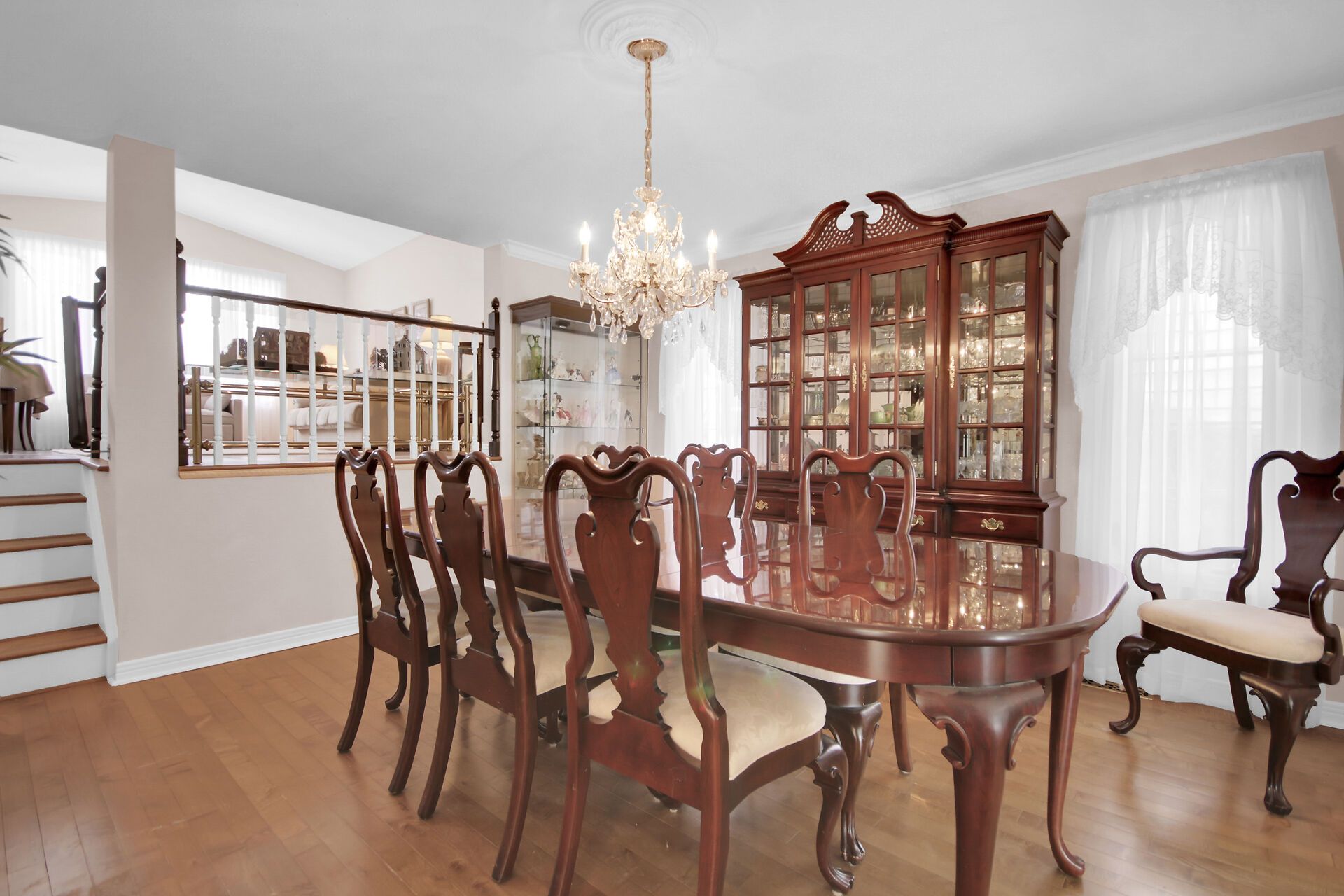 • Bright living room with vaulted ceilings and generous dining space.