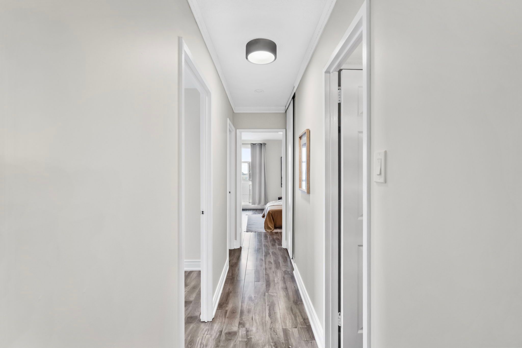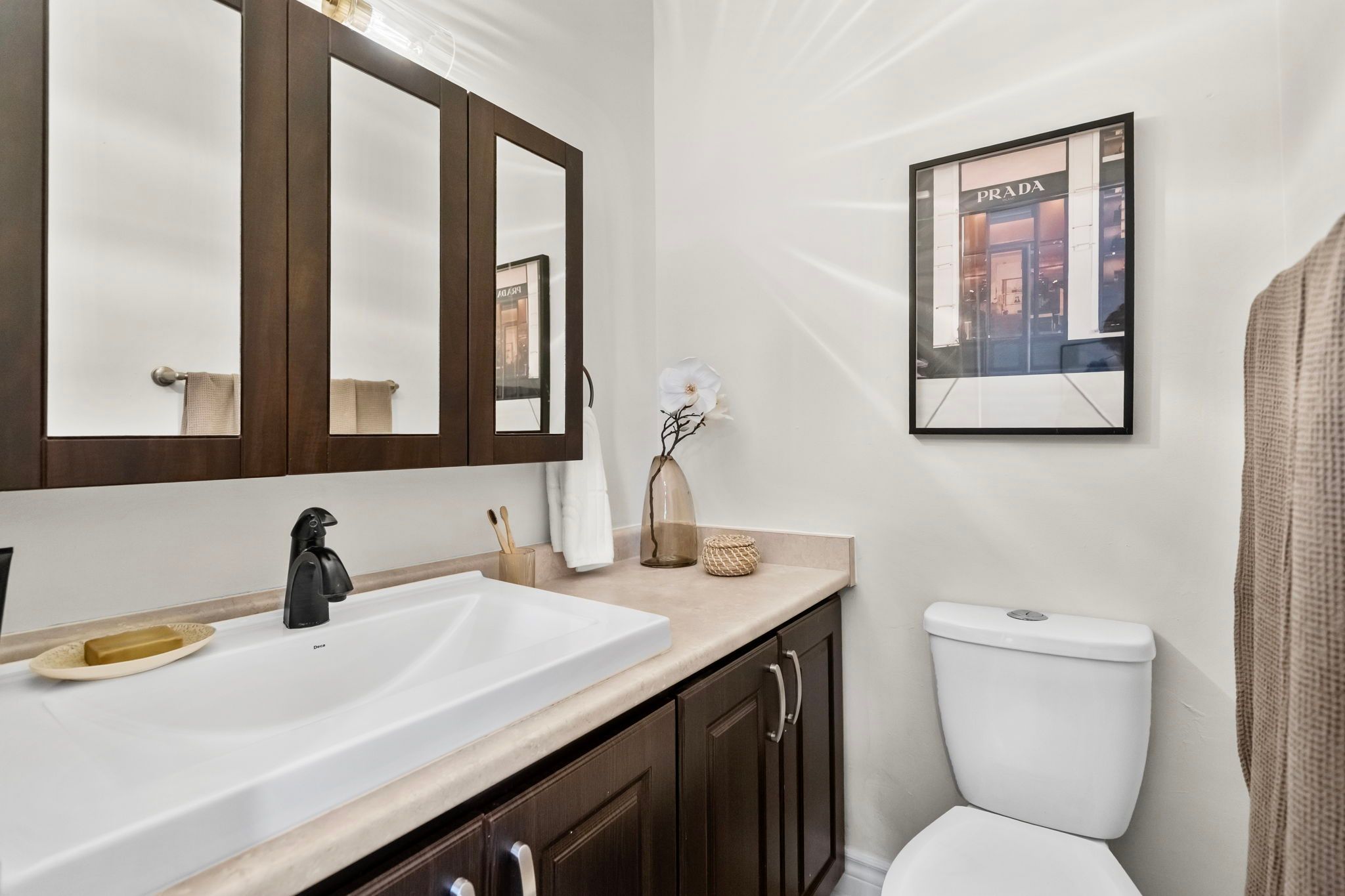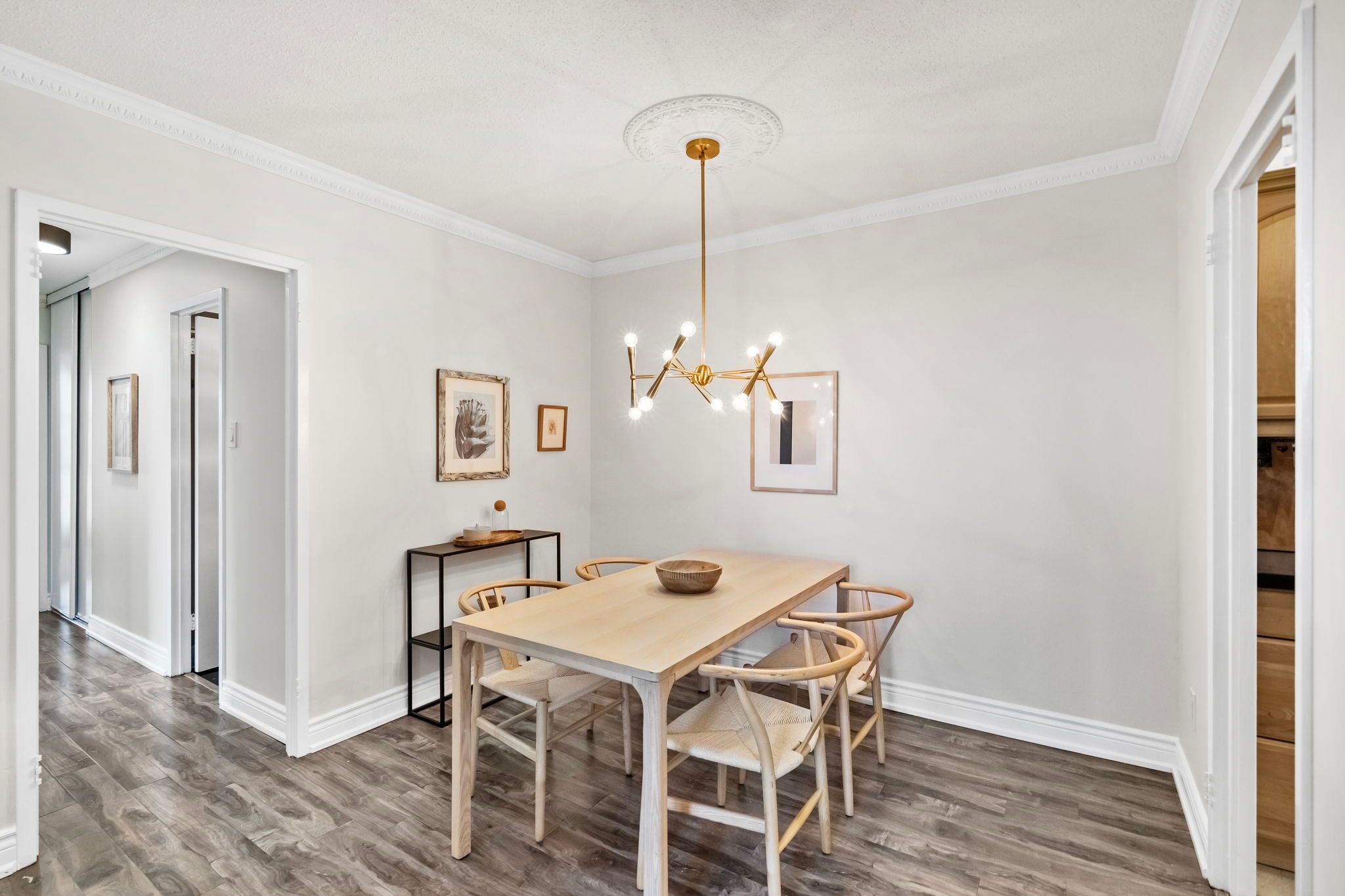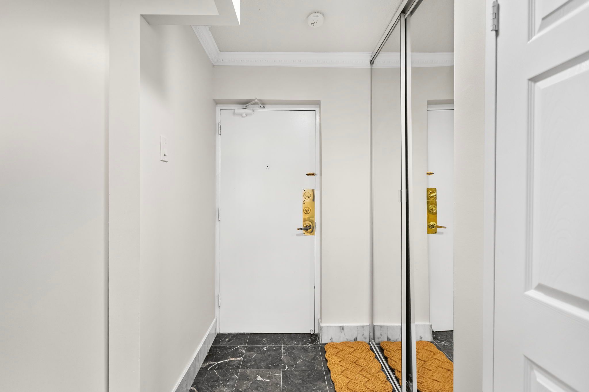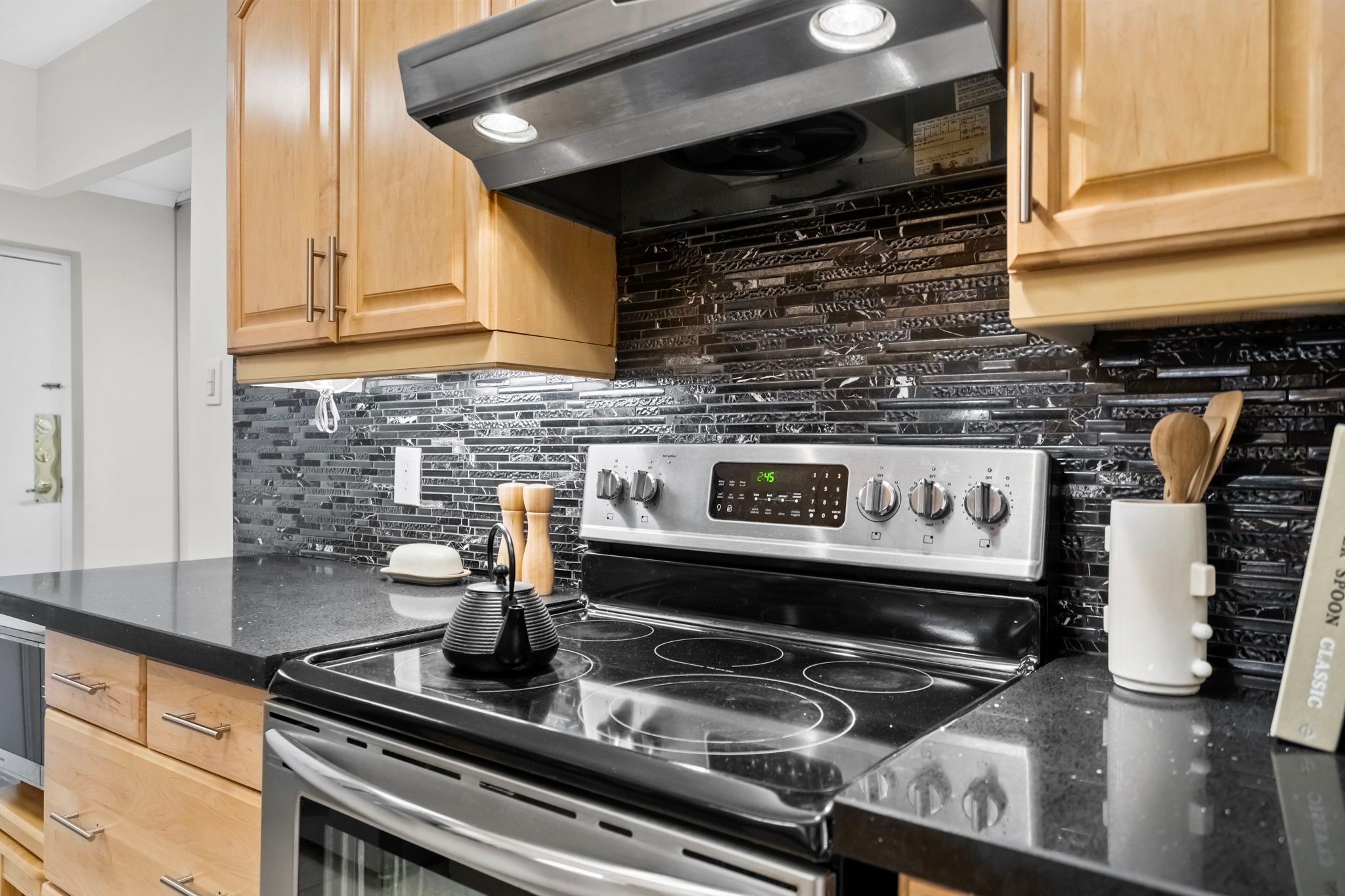 • Functional galley kitchen with ample storage and efficiency.