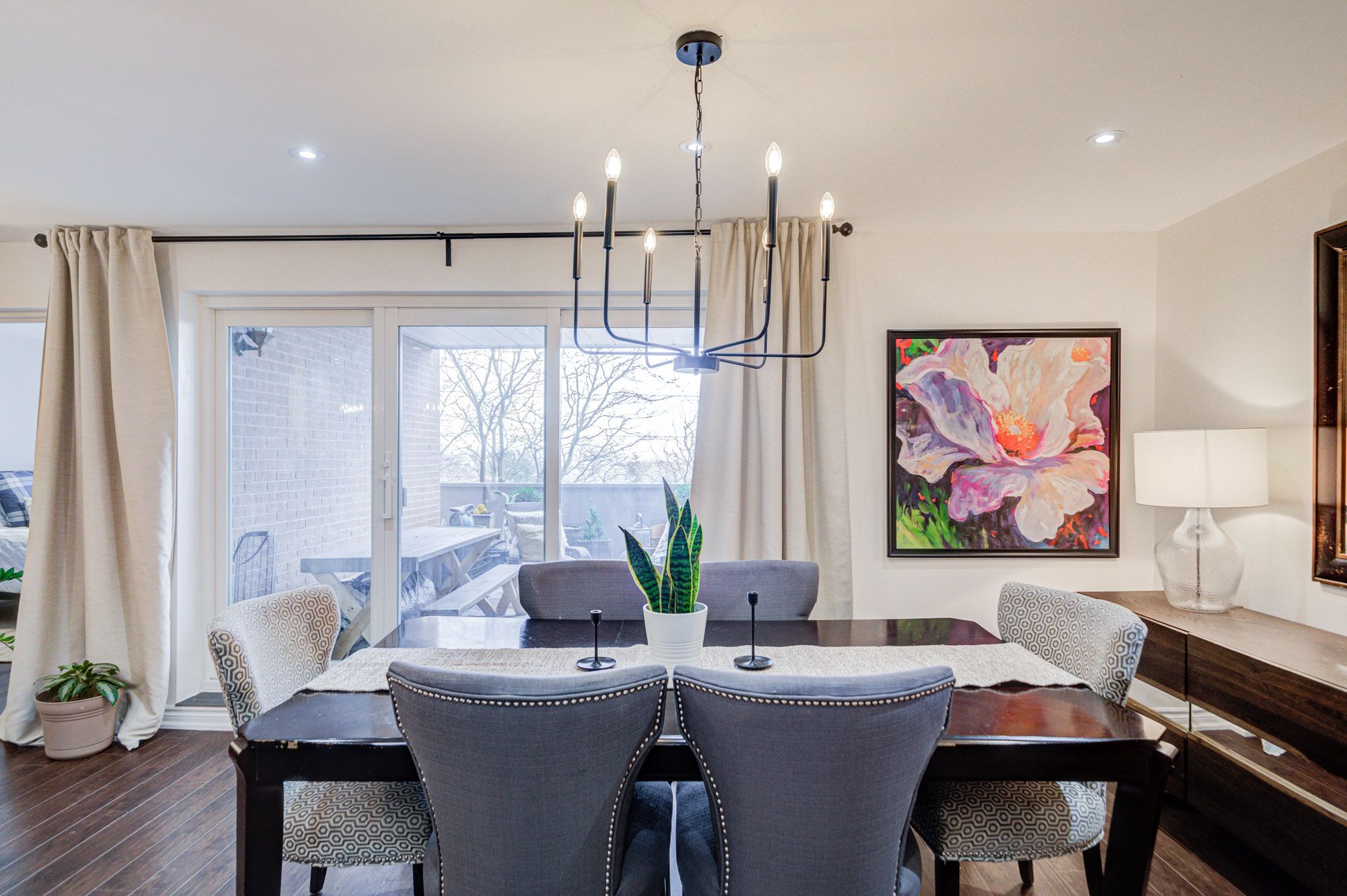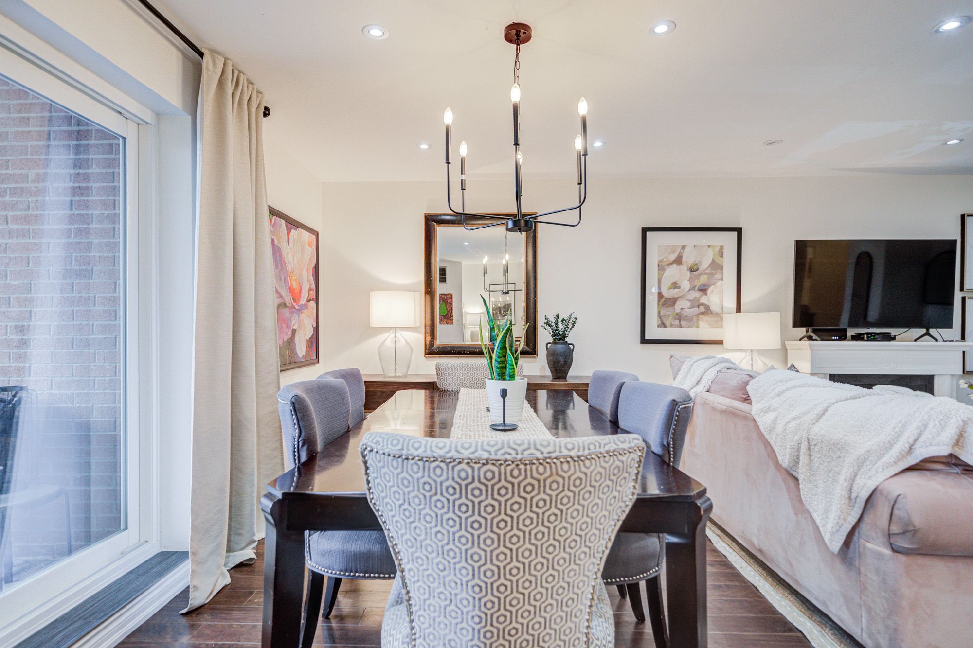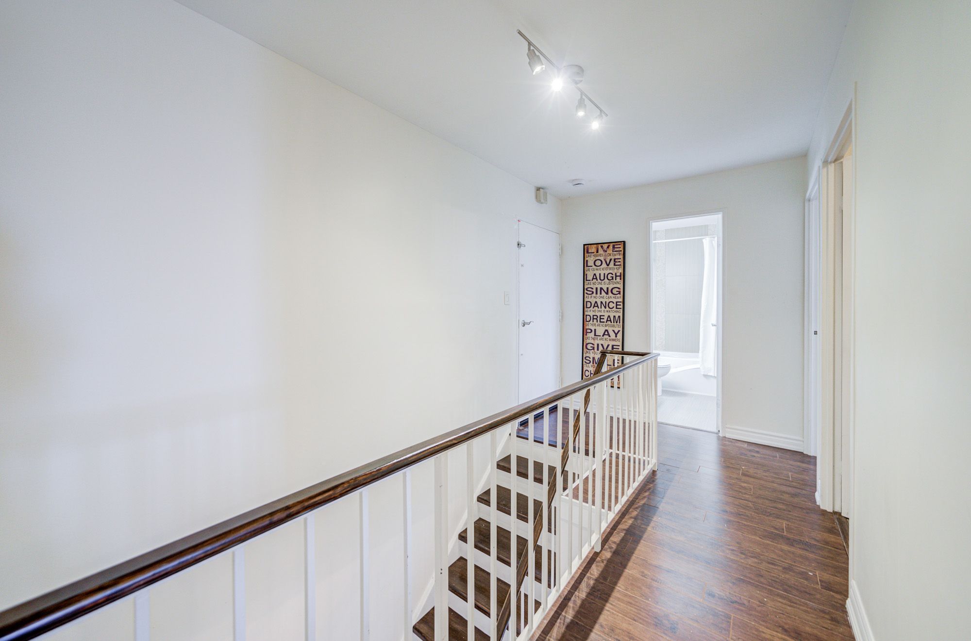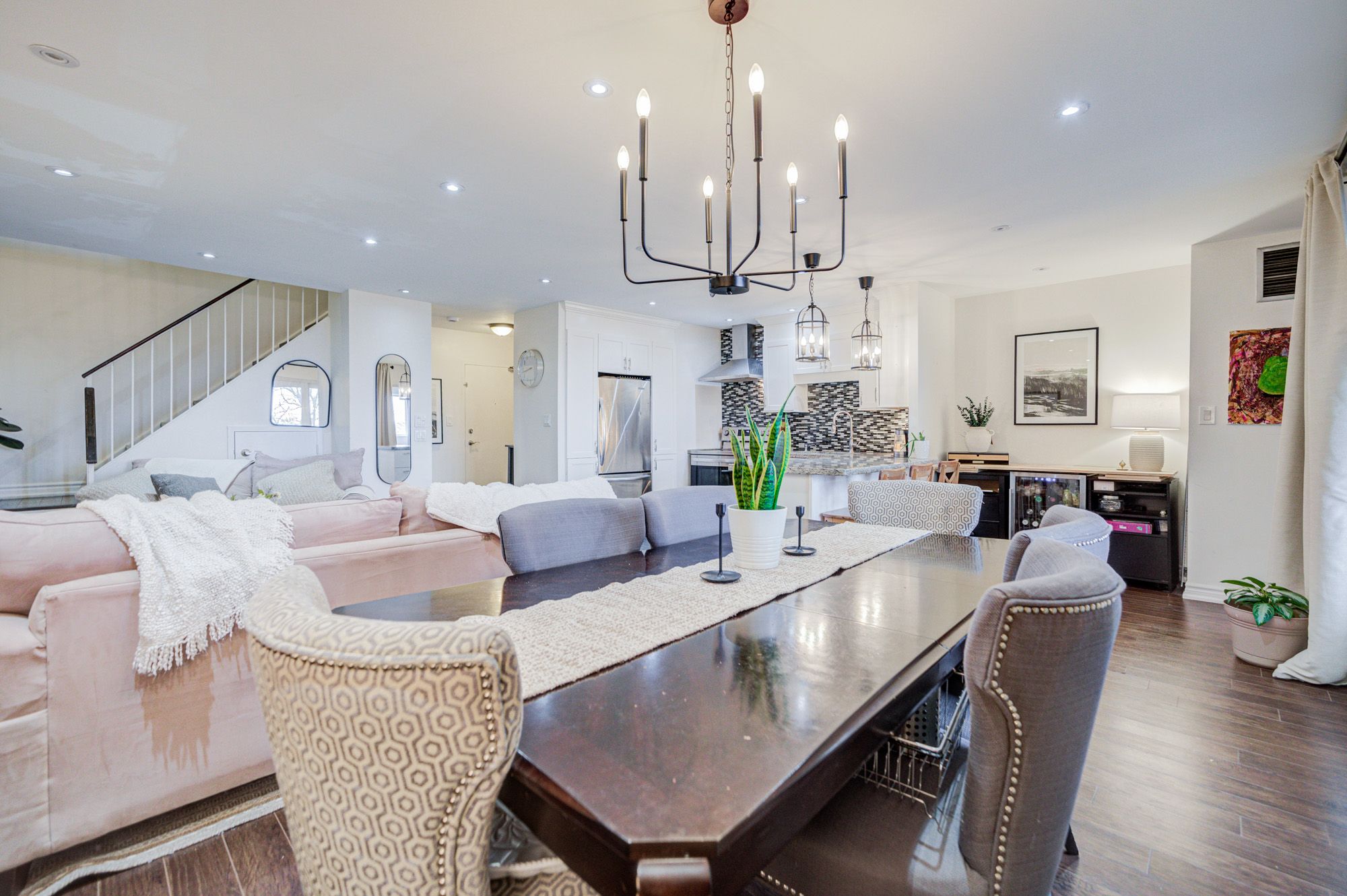 • Spacious open-concept layout with laminate flooring and pot lights.