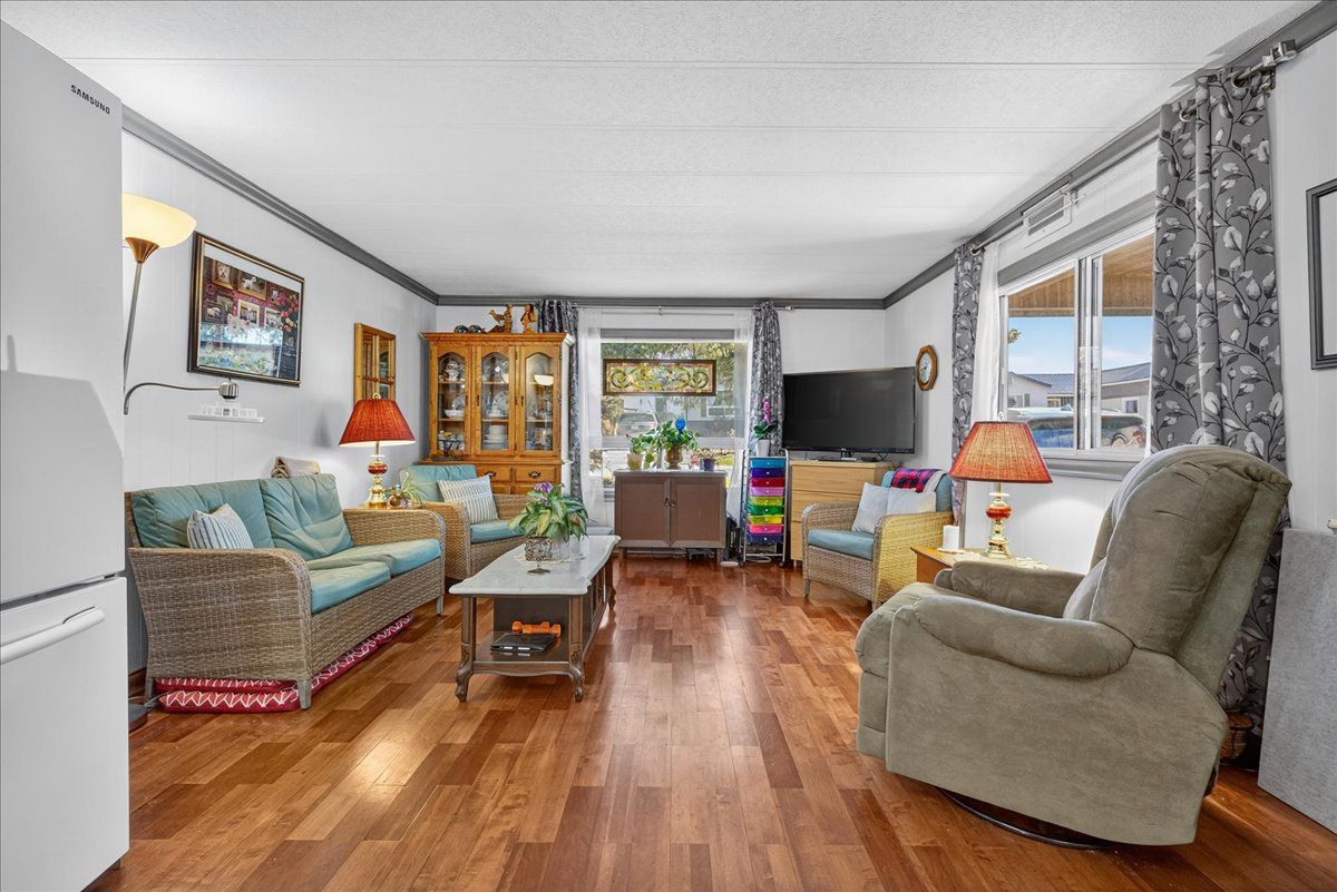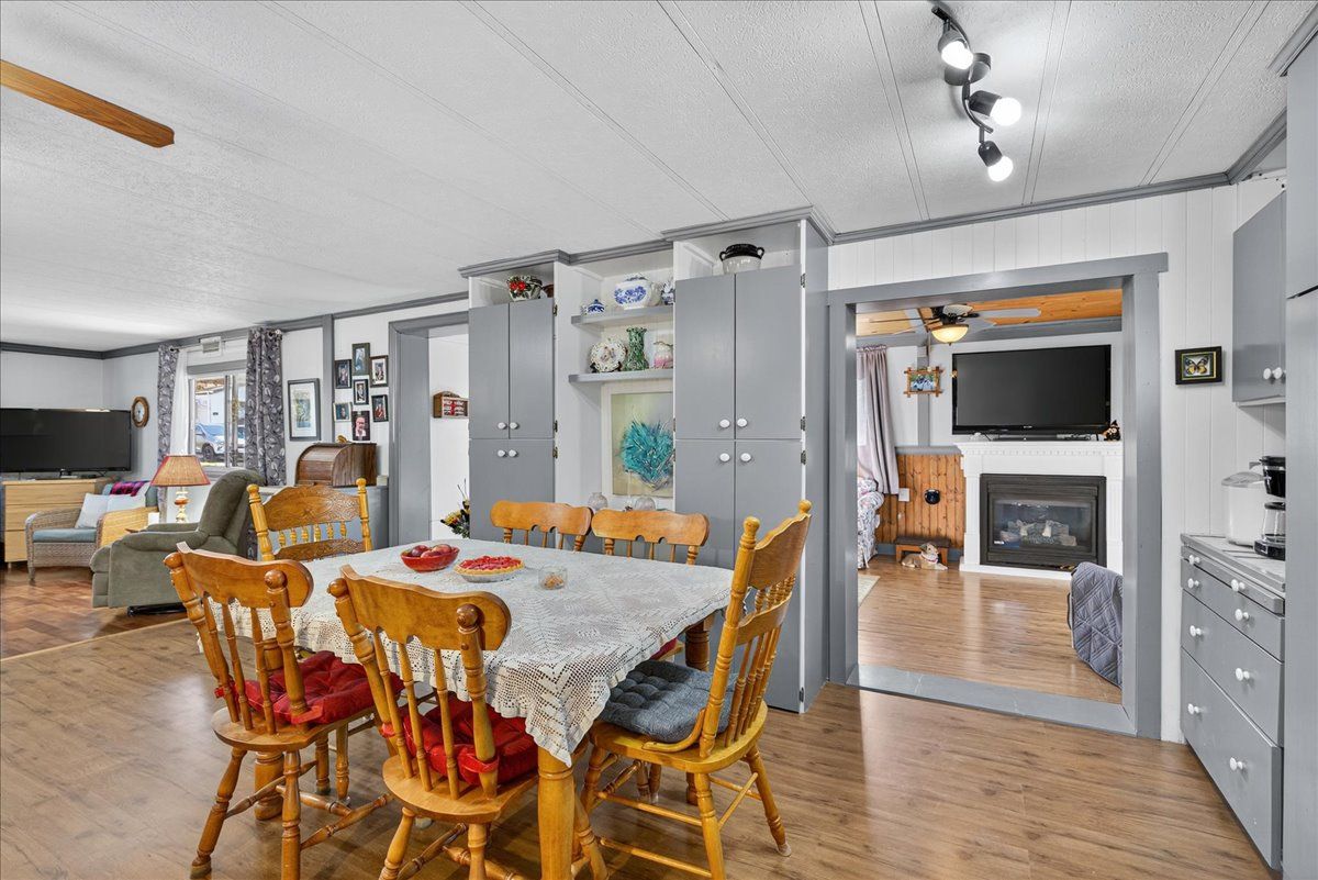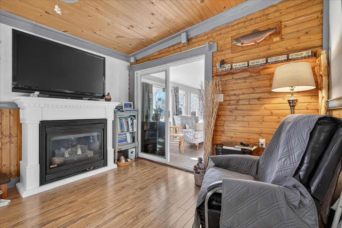 Welcome to this charming bungalow-style modular home offering true one-level living with no stairs and no carpet, backing onto peaceful farm fields. Step onto the covered front porch, perfect for morning coffee, then into a bright family room with a gas fireplace and upgraded tile flooring at front door. The spacious eat-in kitchen offers abundant storage and a new dishwasher (2024), flowing into a cozy living room overlooking your private garden. A unique insulated sunroom at the back provides serene views and extra living space you can enjoy year round. The bedroom wing includes a generous guest room, a 4-piece bath, and a primary bedroom with lots of built-in storage and an electric fireplace. Outside, enjoy one of the best yards on the street-fully private with horses often visiting at the fence. Relax on your deck, garden in the back yard, or make use of two hydro-powered sheds. With ample parking, a welcoming community, and minutes to durham for shopping and entertainment, this home offers comfort, tranquility, and convenience all in one. Monthly fee of $690. 00 includes land lease fee + waste water fee. Water is tested daily to ensure quality and cleanliness.