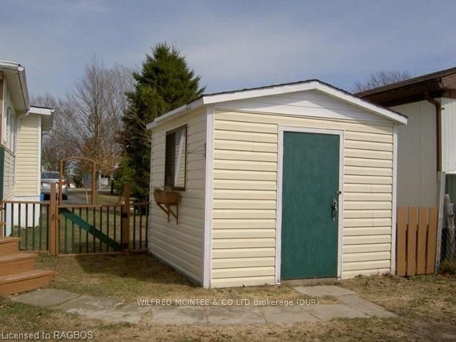 Seniors/retirees or handicaped. Inexpensive living in this year round mobile home park. Well kept mobile home and very clean and is tastefully decorated, is situated on a landscaped 50'x150' leased lot backing onto farmland. This home offers enclosed front porch, approx. 1200sq. Ft. Of living area with open concept kitchen/living room, 2 bedrooms, and a 3rd bedroom/den/office or dining room. Lots of closet space and storage plus 3 season enclosed rear porch with walkout to the deck overlooking partially fenced yard , with lovely perennial gardens. Includes all 5 appliances. Natural gas furnace installed in 2015. Ramp at front leads from paved driveway into enclosed front porch of mobile. Small garden shed in rear yard. Located only minutes from shopping, parks, recreational facilities, golf courses and hospital. Buyers must be approved by durham mobile home park owners. Selling as-is.
