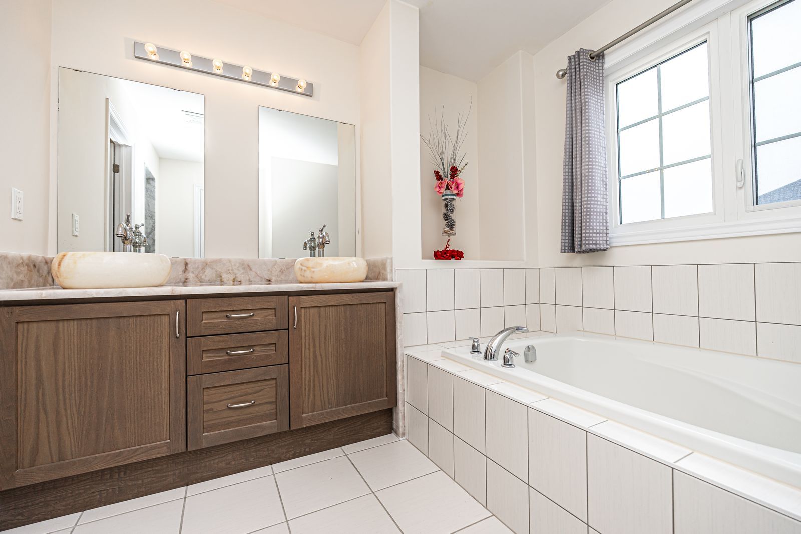 Impressive 2-storey with 2,752 sq ft, quality finishes, walkable location & room to grow! Situated in orillia's desirable west ridge neighbourhood, this exceptional 2-storey built by dreamland homes showcases quality craftsmanship, modern design, and thoughtful details. Set on a corner lot, the all-brick exterior features stylish stone accents, double entry doors, a covered front porch, a decorative walkway, and a double garage with inside entry. Offering 2,752 square feet of bright, open-concept living, the interior is filled with natural light, elegant finishes, and a refined sense of style. The formal dining room provides a beautiful space for entertaining, while the den offers flexibility as a home office or playroom. The showstopping kitchen impresses with a massive waterfall island that seats ten, quartz counters, a farmhouse sink, stainless steel appliances, and rich wood cabinetry, flowing seamlessly into the living room where a floor-to-ceiling feature wall, warm wood accents, and a gas fireplace create a stunning focal point. Upstairs, the spacious layout continues with four generous bedrooms, including a primary suite with two walk-in closets and a spa-inspired five-piece ensuite featuring a water closet, dual vanity with vessel sinks, and a soaker tub. The second bedroom features its own four-piece ensuite and walk-in closet, while the remaining two bedrooms share a well-appointed four-piece bathroom with direct access from each room. The upper-level laundry room adds practicality with cabinetry, a sink, and a folding counter. An unfinished basement offers the opportunity to design additional living space to suit your family's needs. The fenced yard provides room to relax outdoors, while this sought-after location is surrounded by schools, parks, and trails, and is within walking distance to lakehead university, costco, walmart, zehrs, home depot, food basics, tim hortons, starbucks, a movie theatre & more.