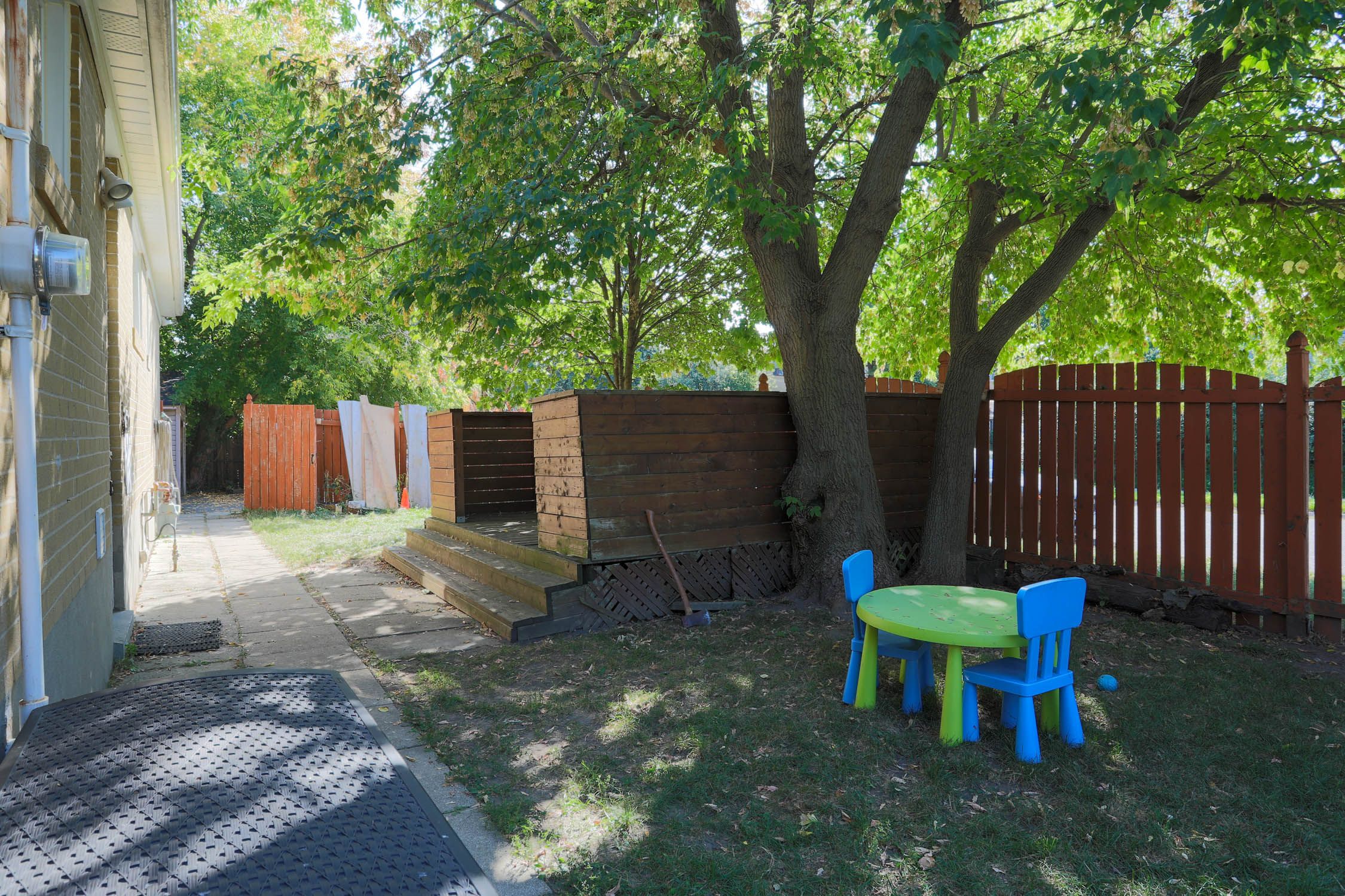• Large fenced backyard with a deck for relaxing and entertaining.