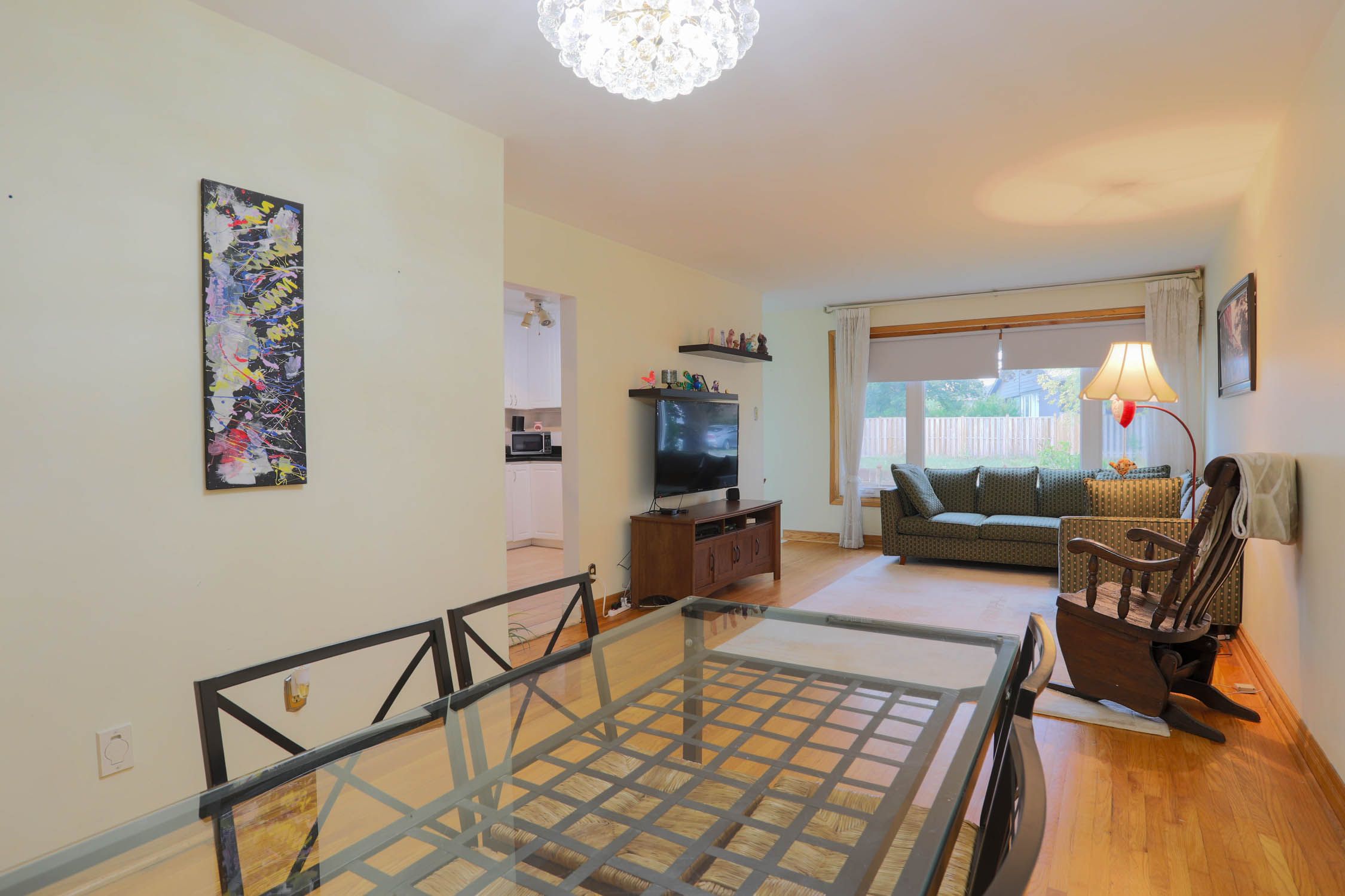 • Spacious open concept living and dining area filled with natural light.