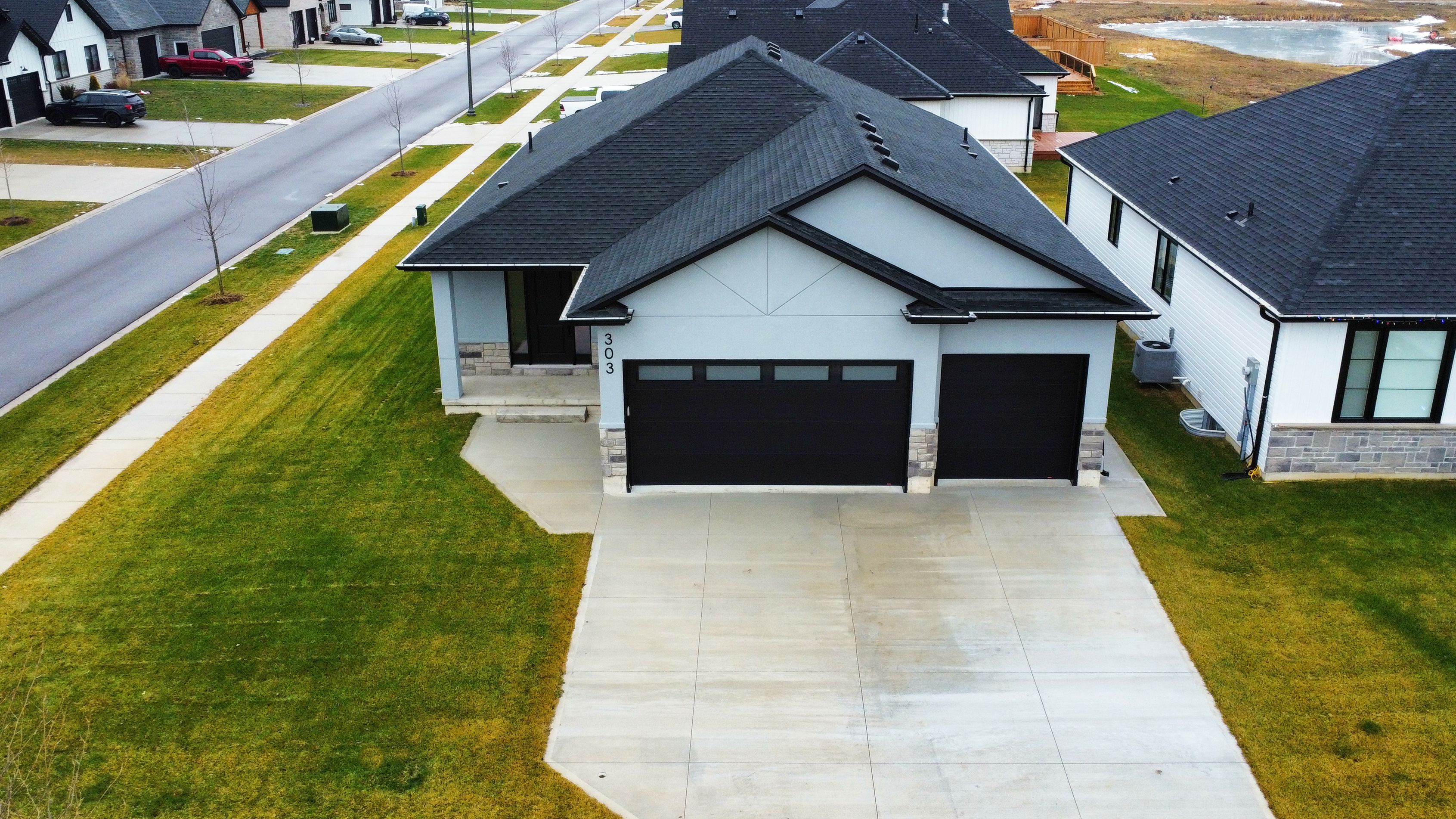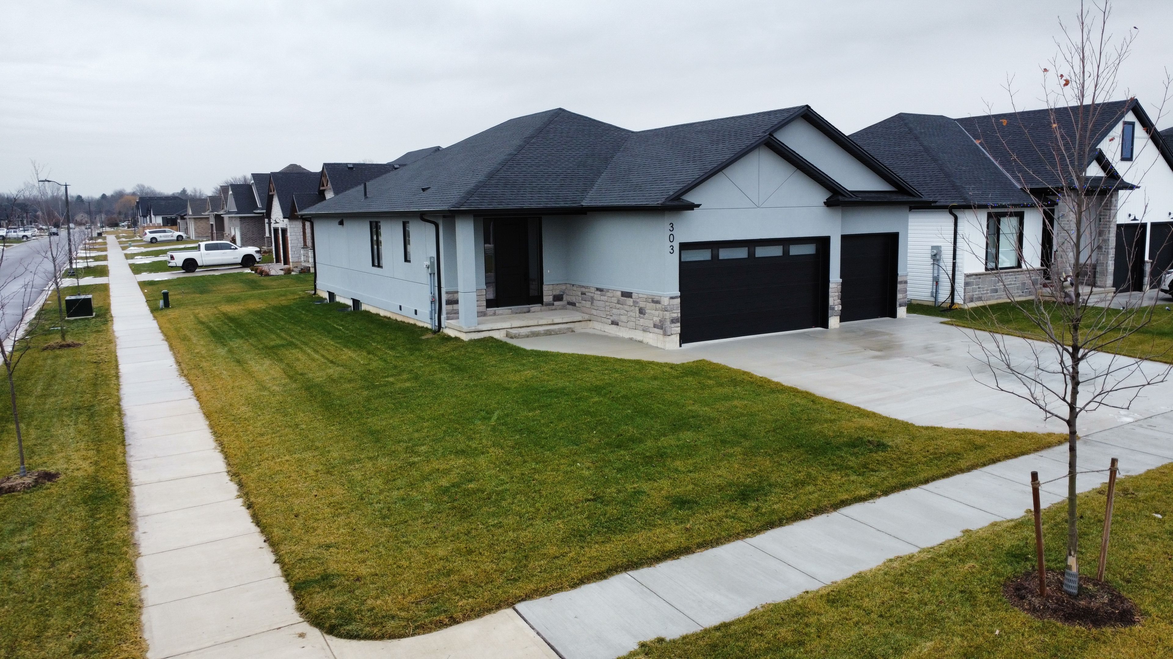 Welcome to 303 nancy street - a stunning 3+2 bedroom, 3,225 sq. Ft. Bungalow tucked away in the quiet lila north neighbourhood of dutton. This bright, open-concept home features 9 foot ceilings, 8 foot doors, large windows, pot lights galore, and numerous upgrades. The gourmet kitchen is sure to please the chef of the family, offering quartz countertops, floor to ceiling soft close cabinetry, a bonus pantry, ample counter and cupboard space, a large island with breakfast bar seating for four, and a stylish backsplash. The spacious primary bedroom includes a walk-in closet and a luxurious ensuite with his/her sinks, a freestanding tub, and a walk-in glass shower. Custom millwork is showcased throughout the home, including a fireplace feature wall and coffered ceiling in the living room, plus feature walls in each main floor bedroom. Two additional generously sized bedrooms, a 4-piece bathroom, 2-piece powder room, and a laundry room with a custom mudroom area complete the main floor. Engineered hardwood and ceramic tile run throughout - no carpet here! Fully finished basement in law suite with a separate entrance from the garage! Ideal for multigenerational living, visiting family, work space, rental income, man cave or extra space for the kids. The lower level includes a full kitchen, large open rec room, two spacious bedrooms, and a separate laundry room. The space is bright and welcoming with it's tall ceilings, tons of potlights, and plenty of storage. Upgraded owned on-demand water heater. 3-car insulated garage designed so the third bay can be separated for the in-law suite. Low-maintenance concrete driveway. The large corner lot offers excellent flexibility and easy access for a future pool. Located just minutes from local amenities including groceries, restaurants, and the dutton community centre, this home is only 3 minutes from hwy 401 and 25 minutes to london.