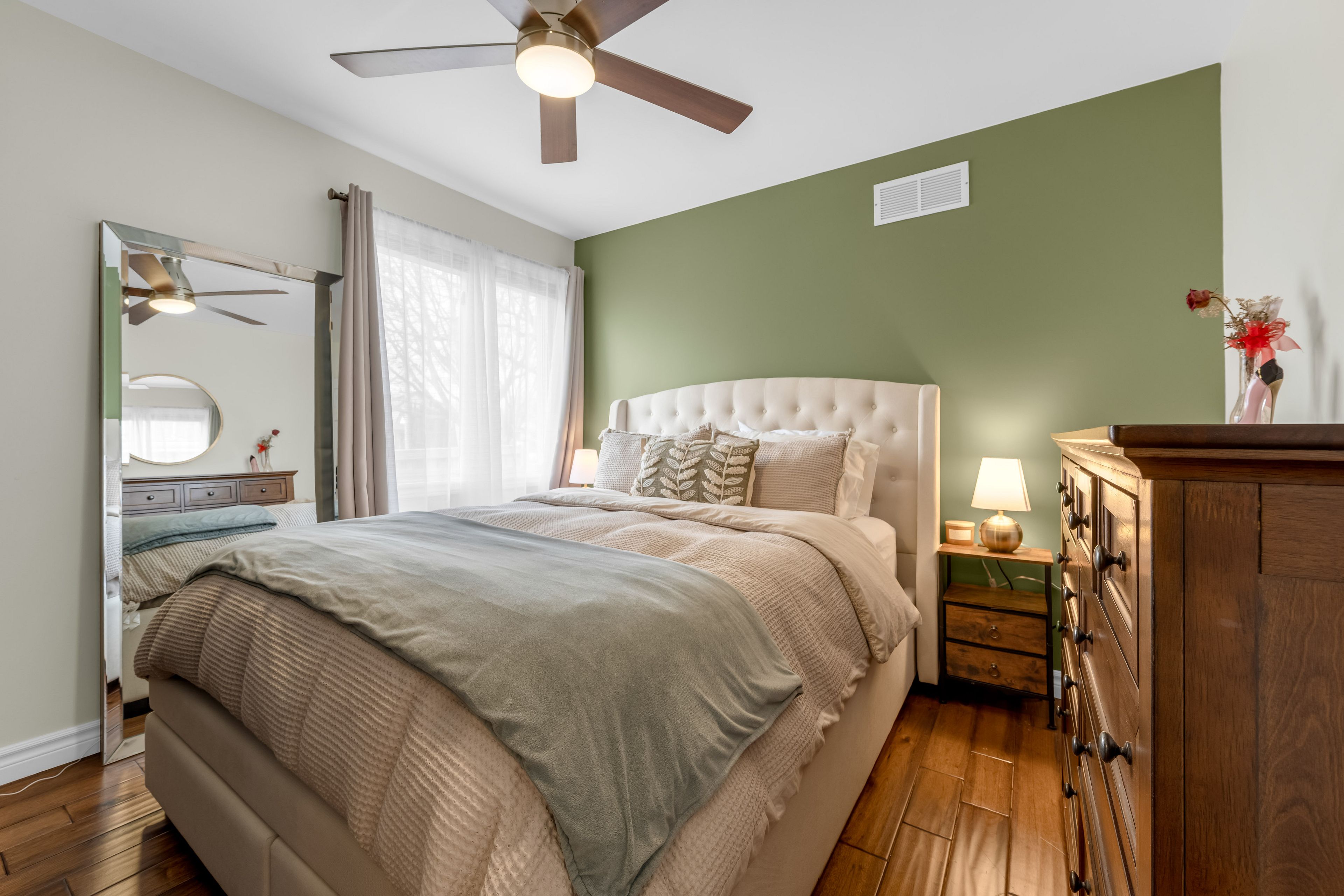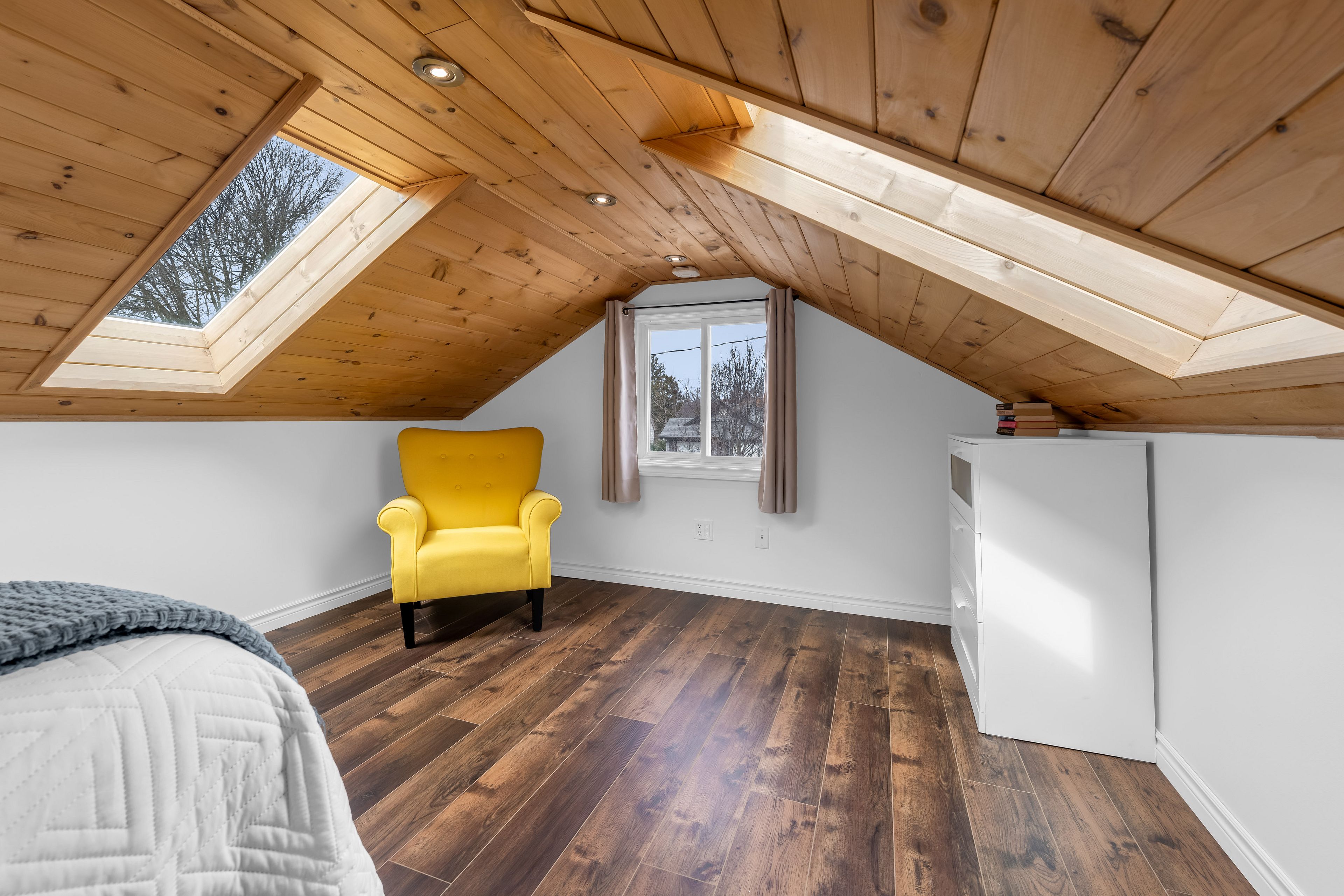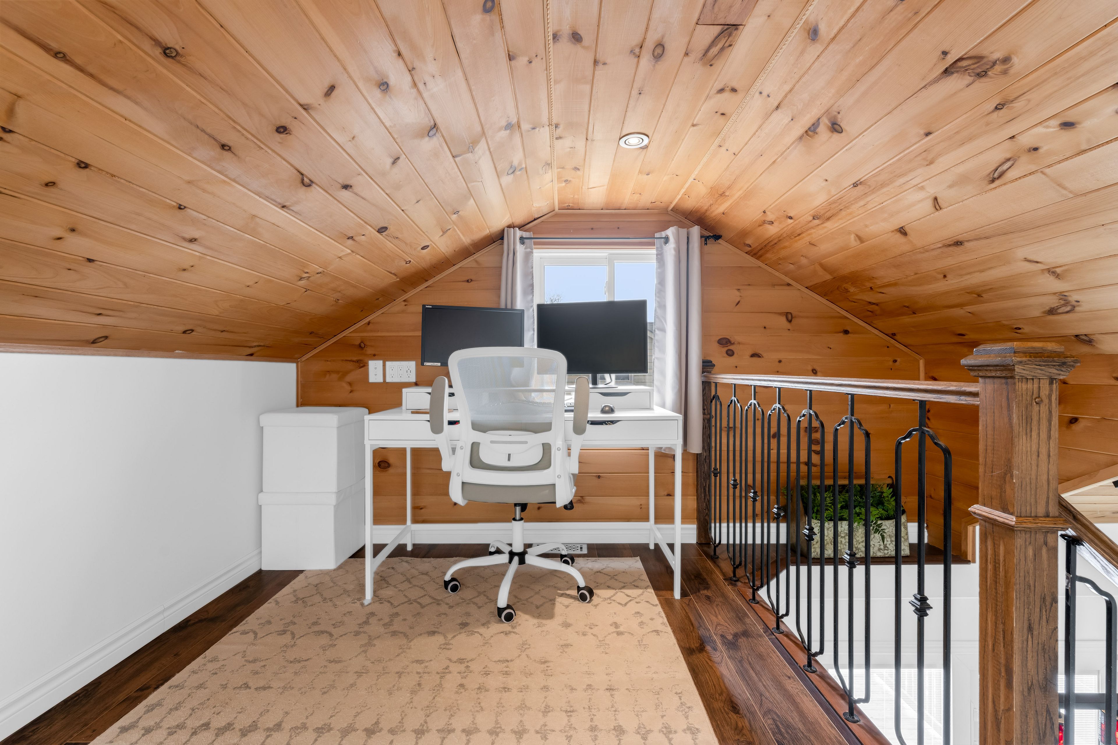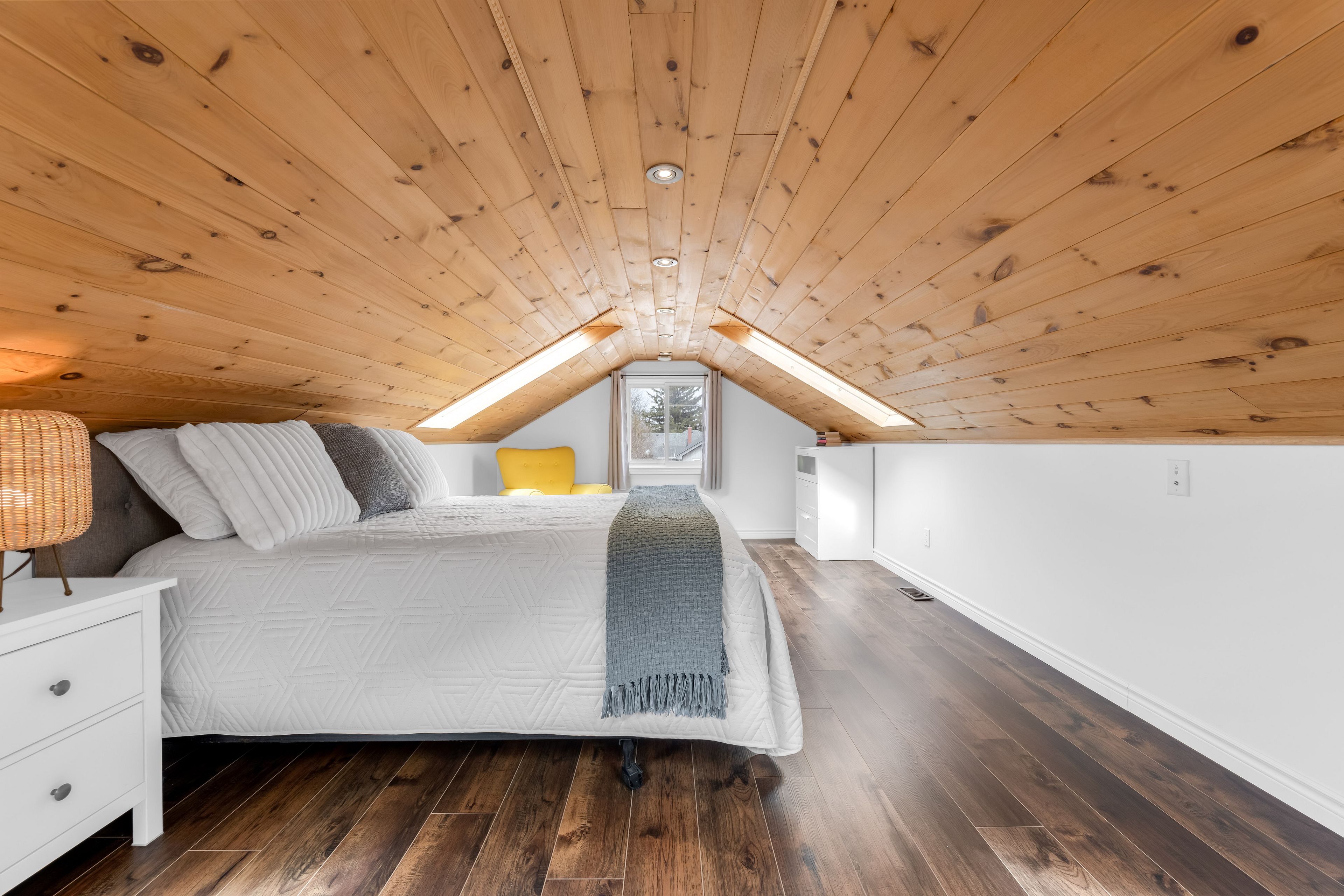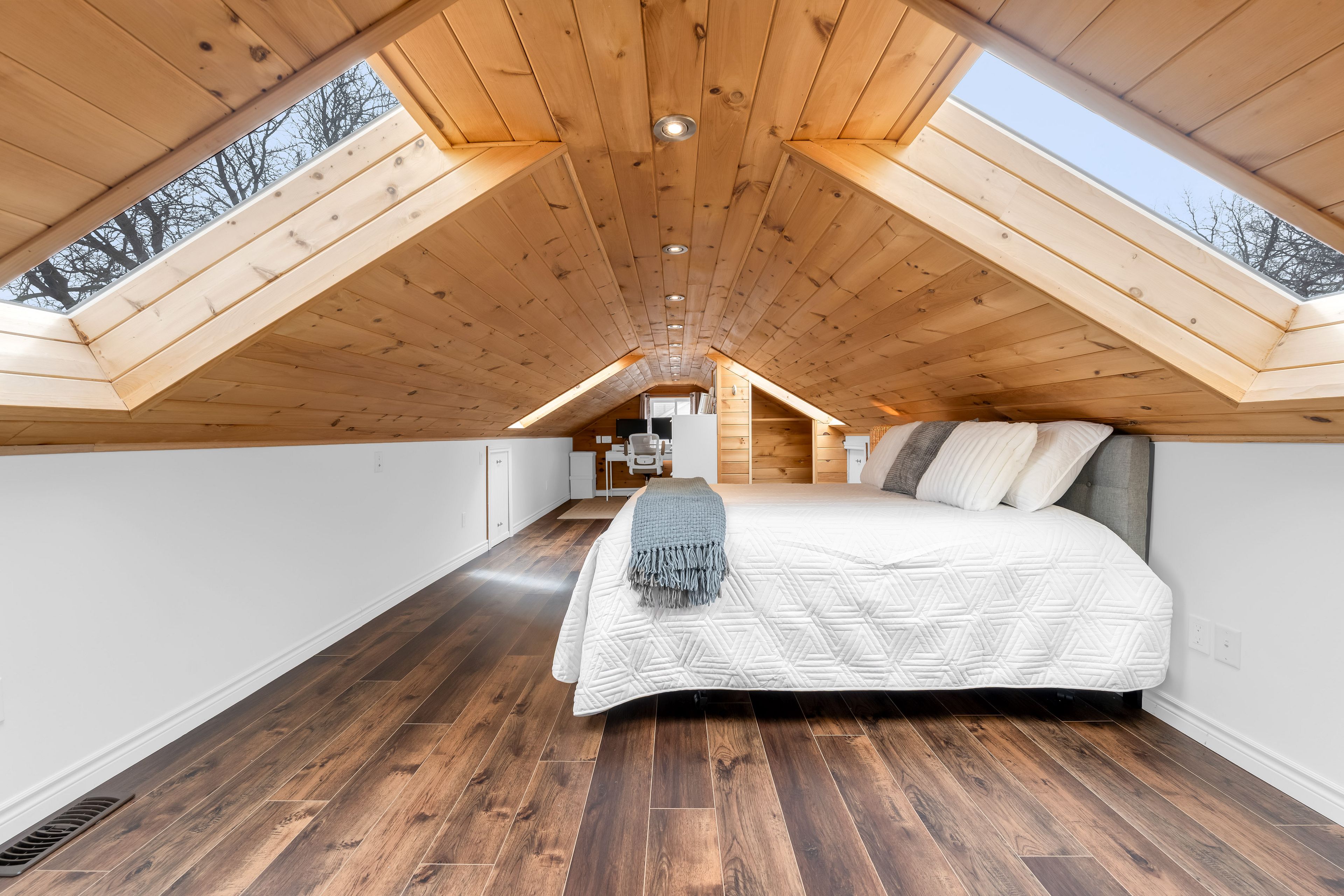 • Spacious upper-level retreat with skylights, an office nook, and ample light.