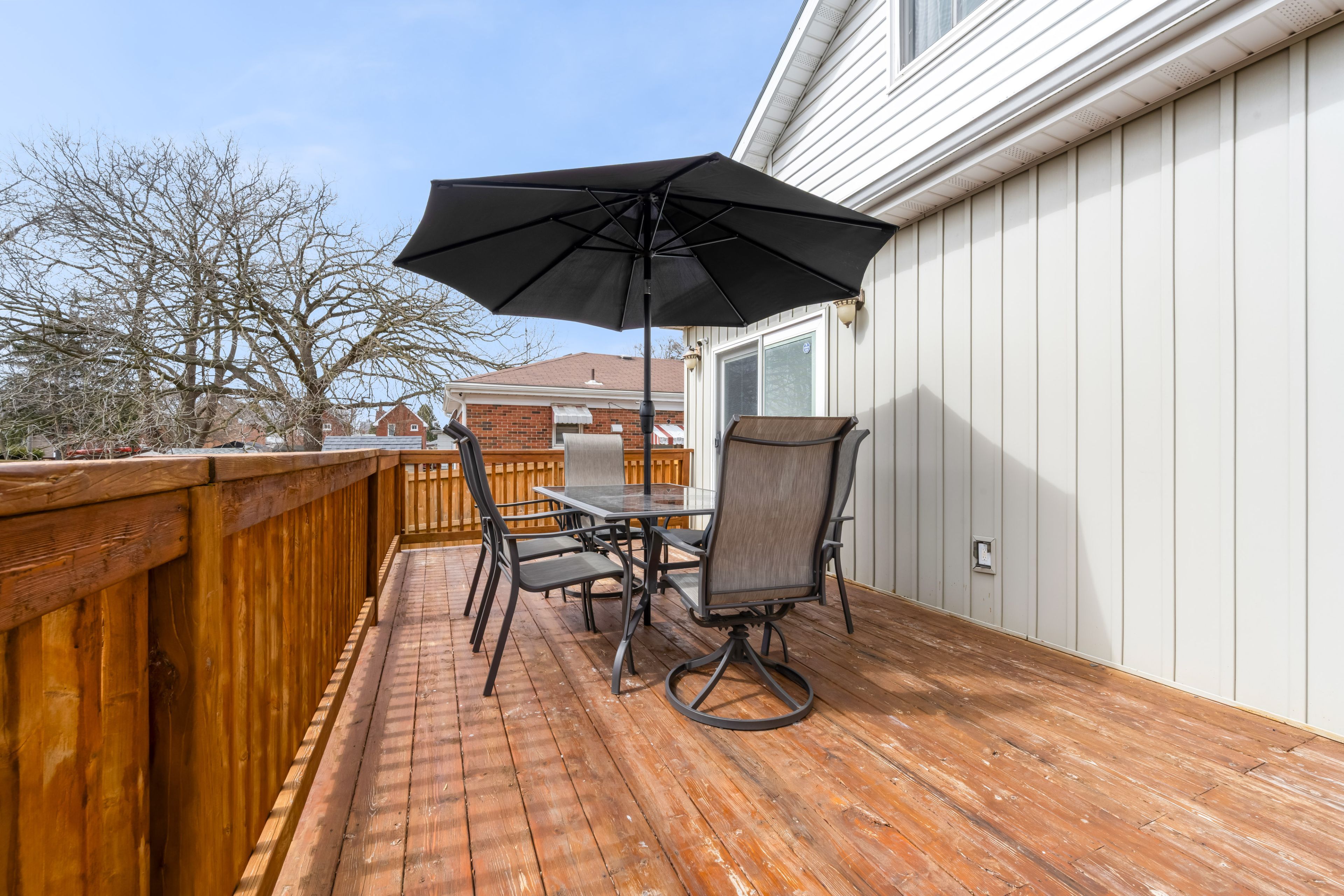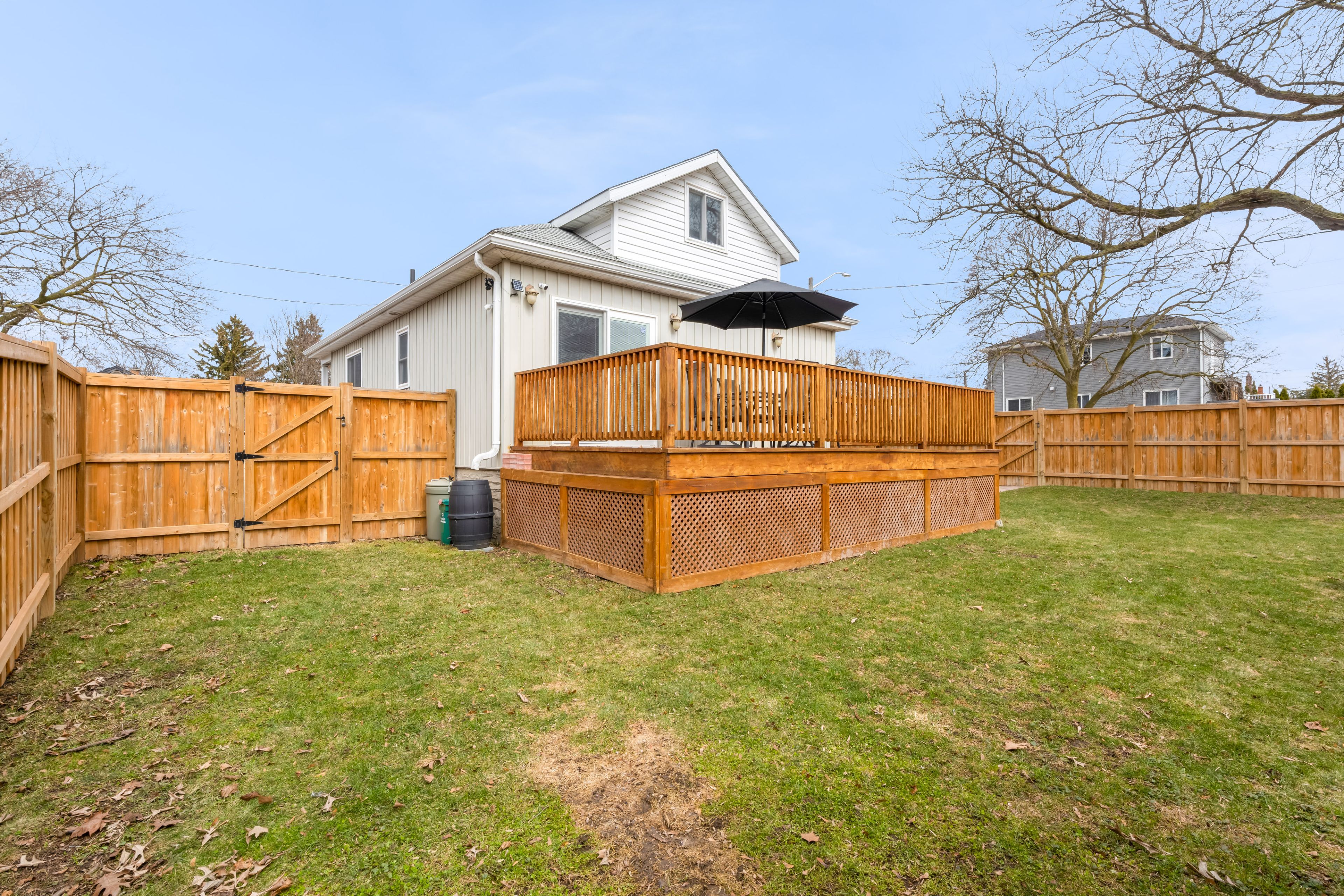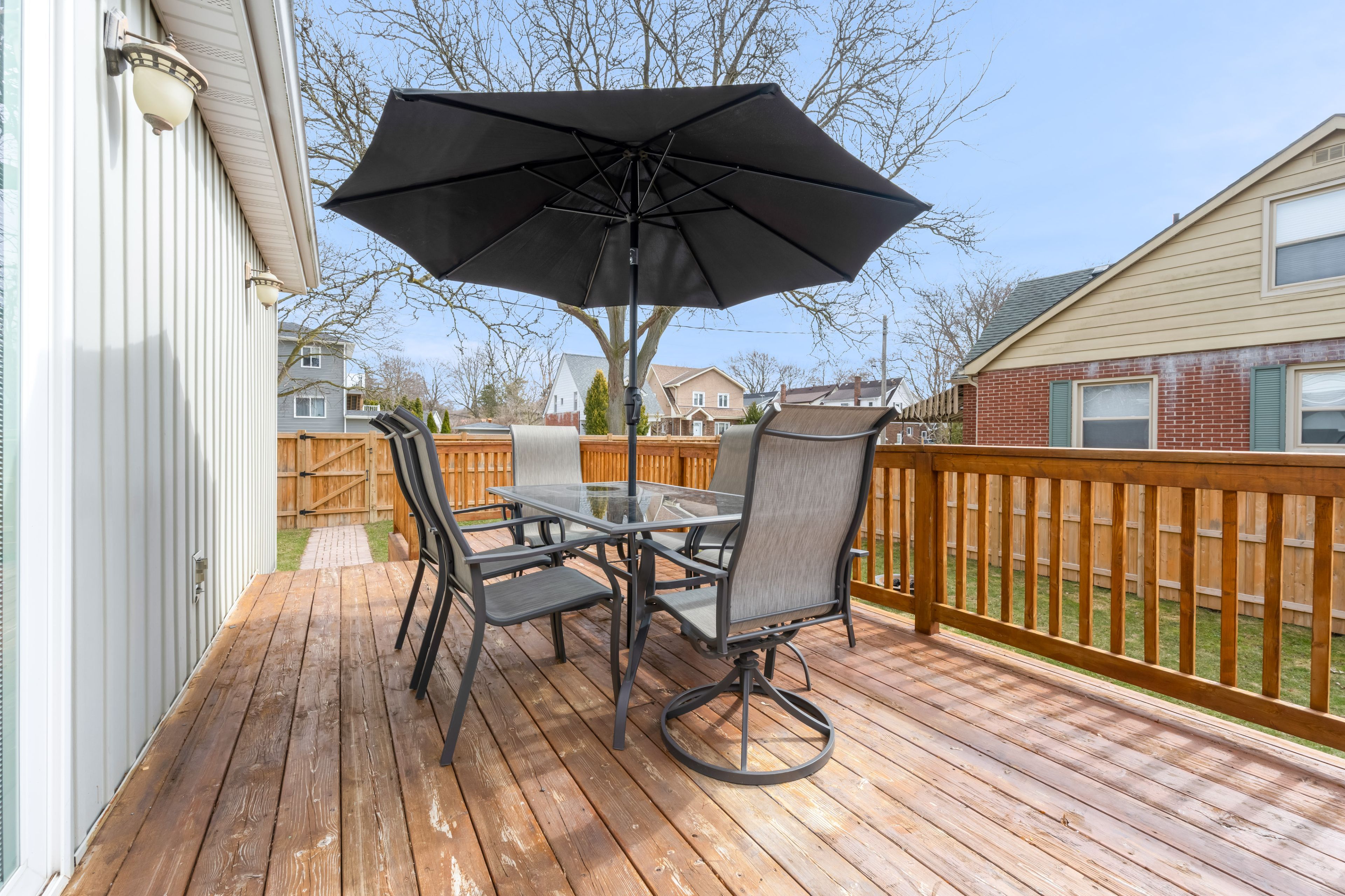 • Private backyard with a large deck, perfect for entertaining or relaxing.