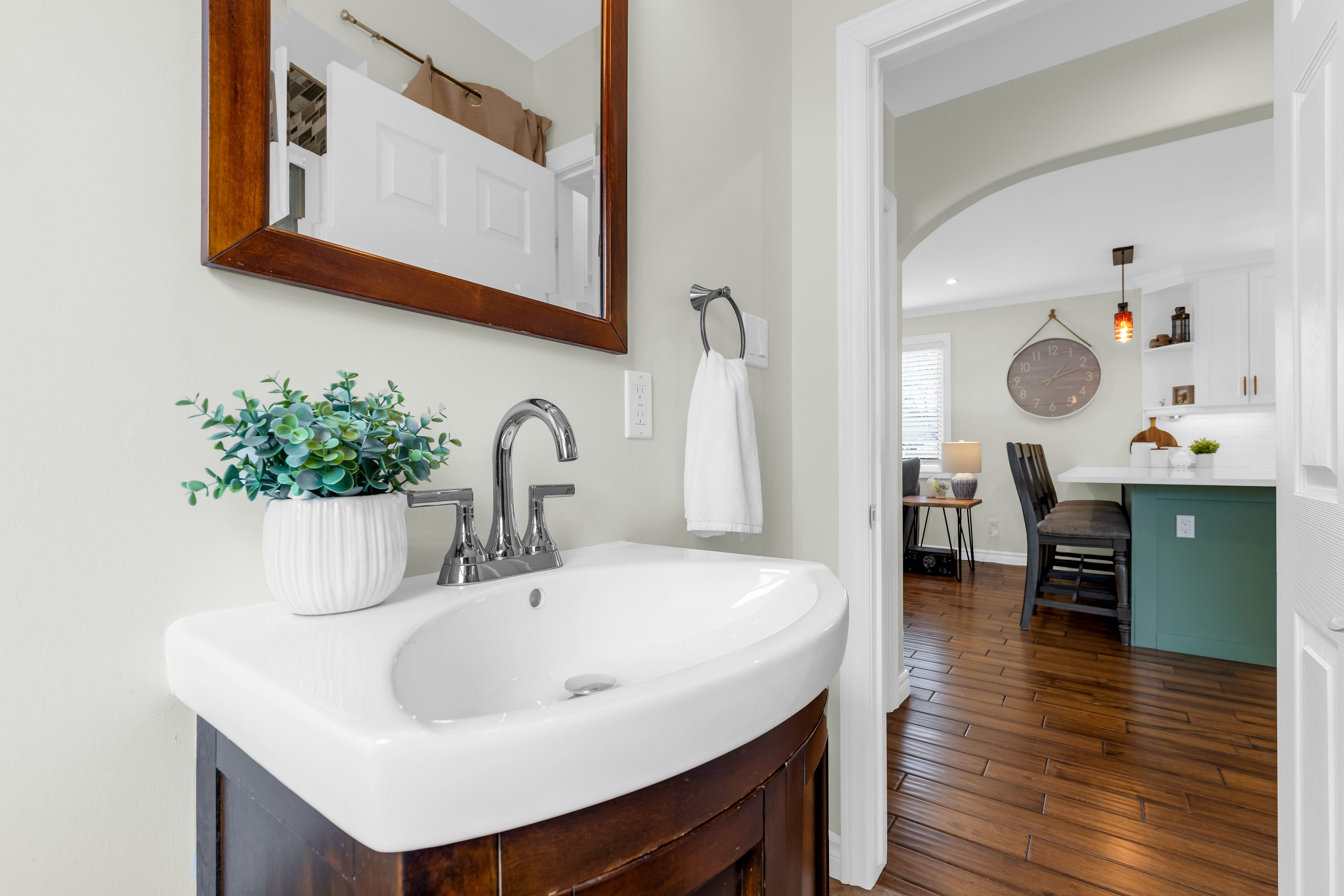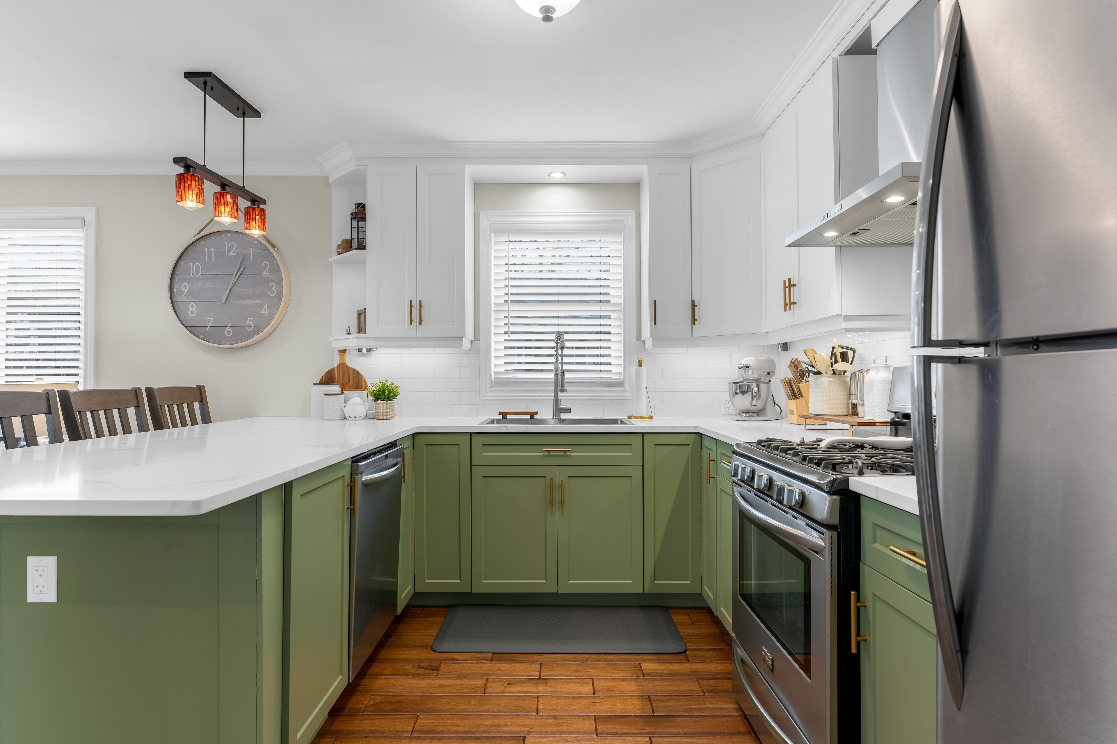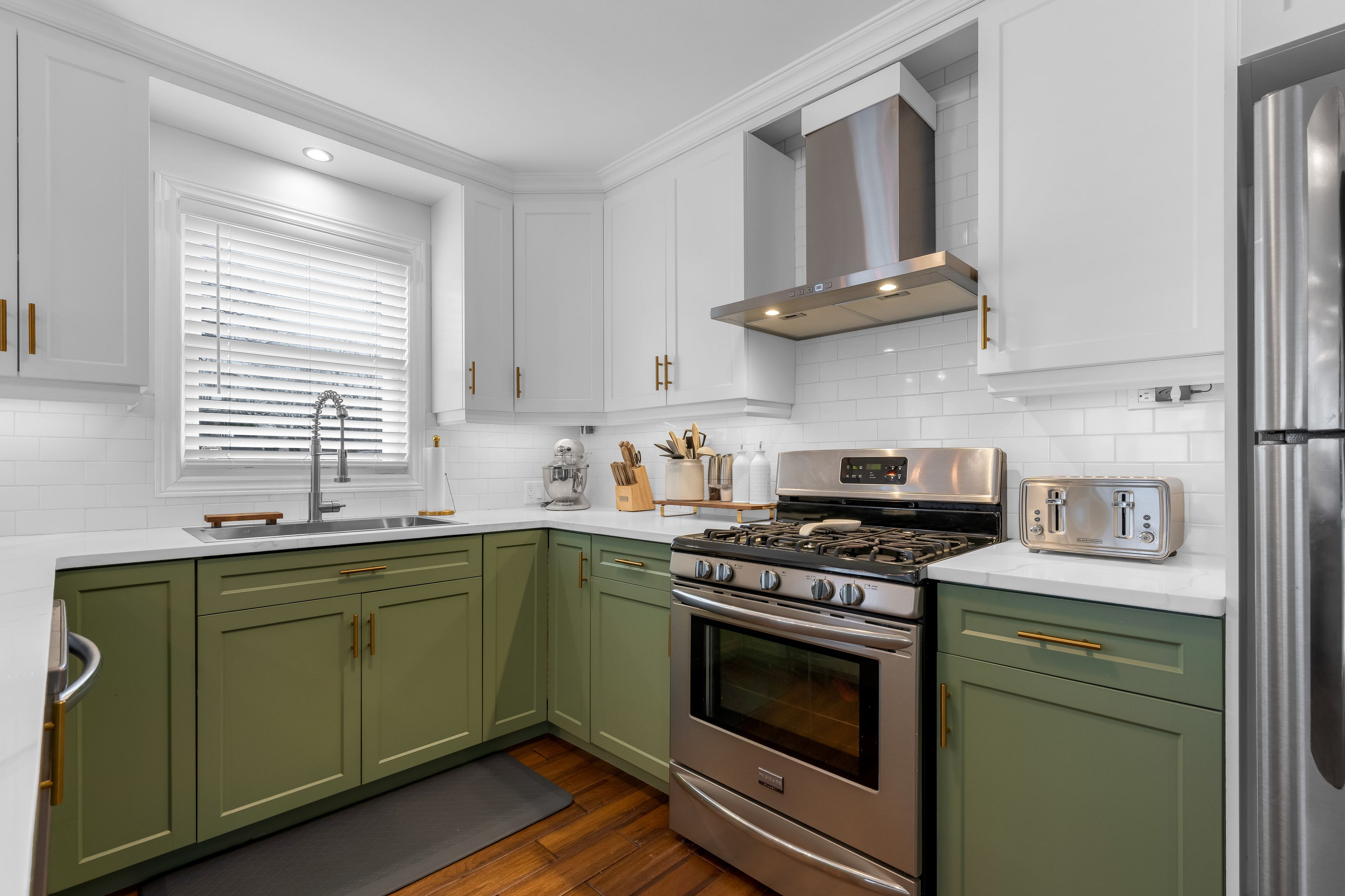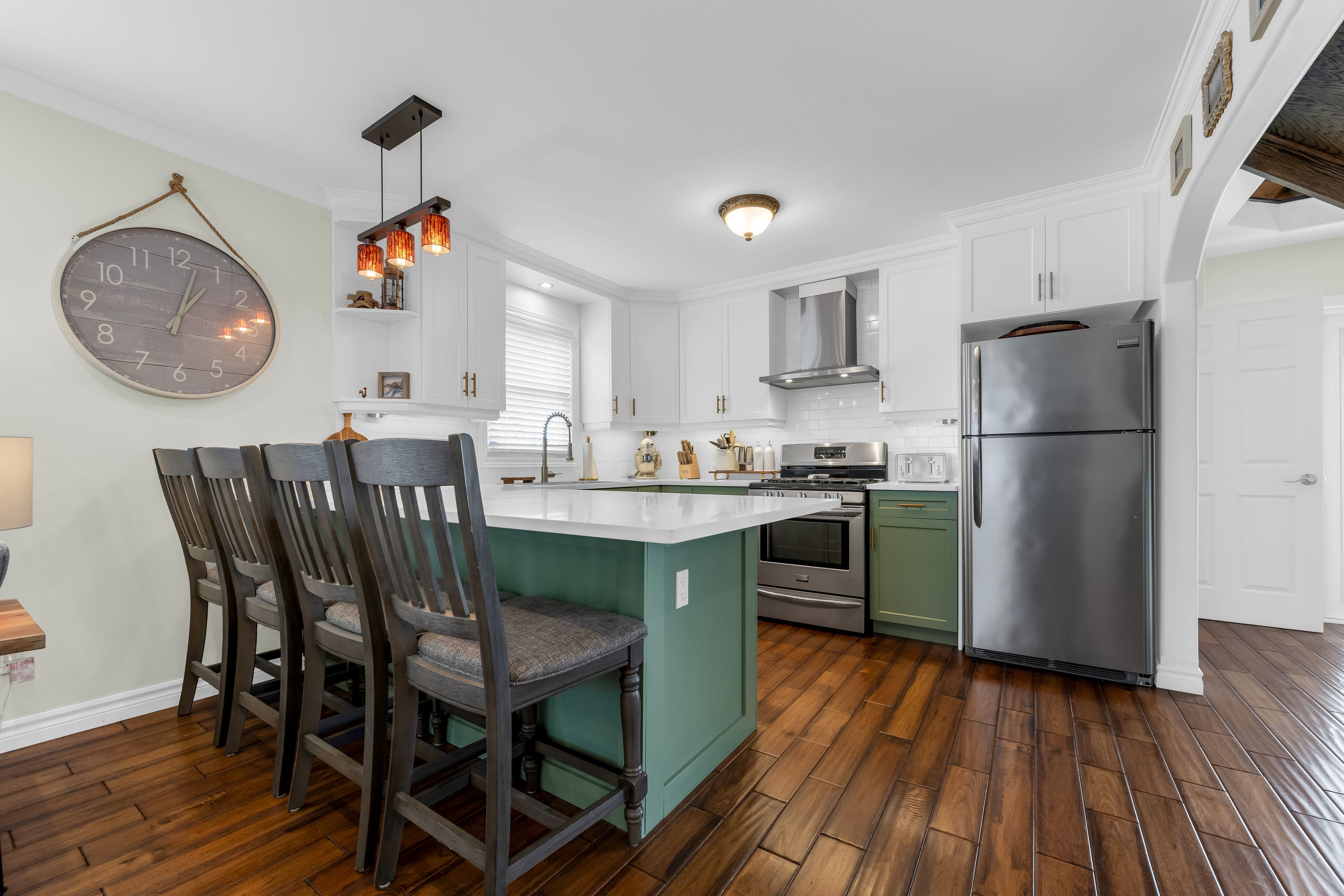 • Updated kitchen features quartz countertops and a convenient coffee station.