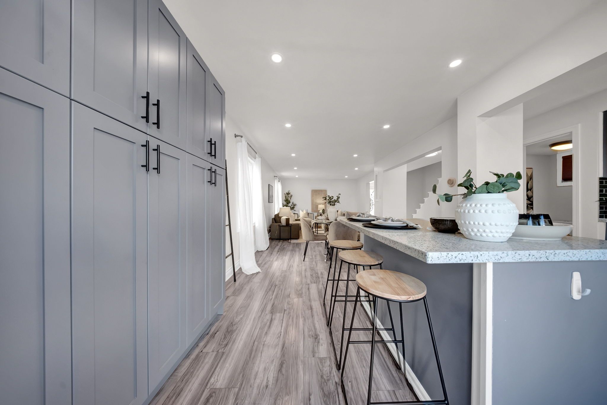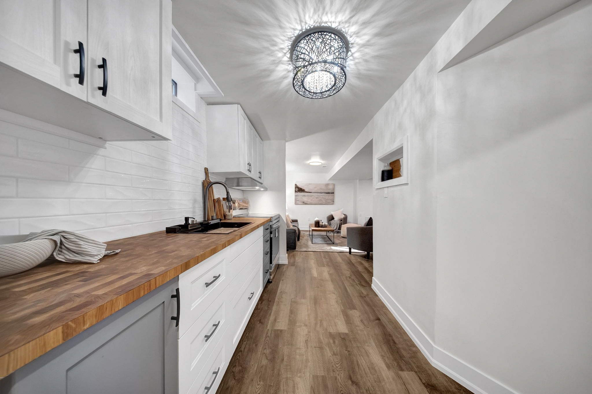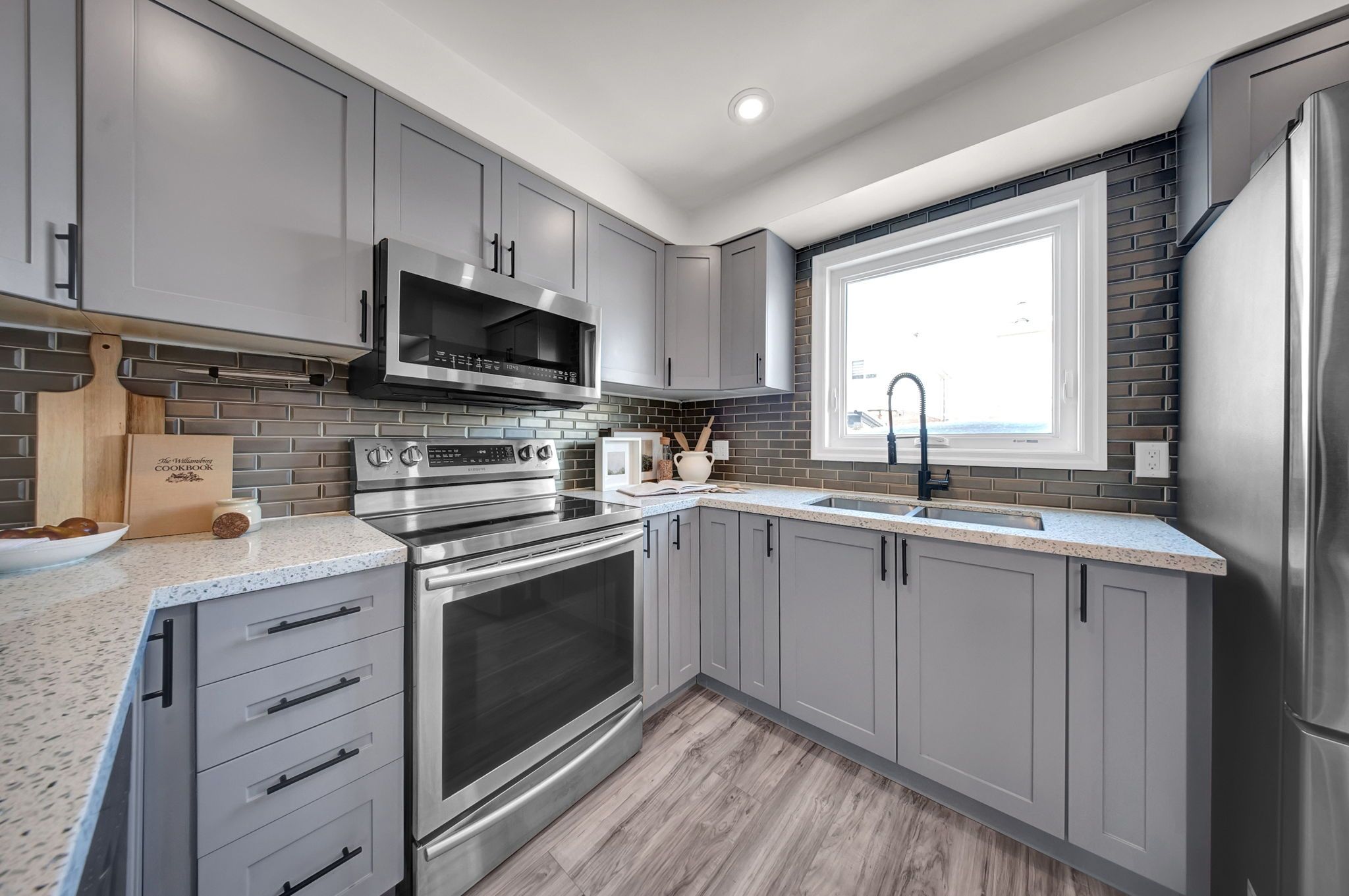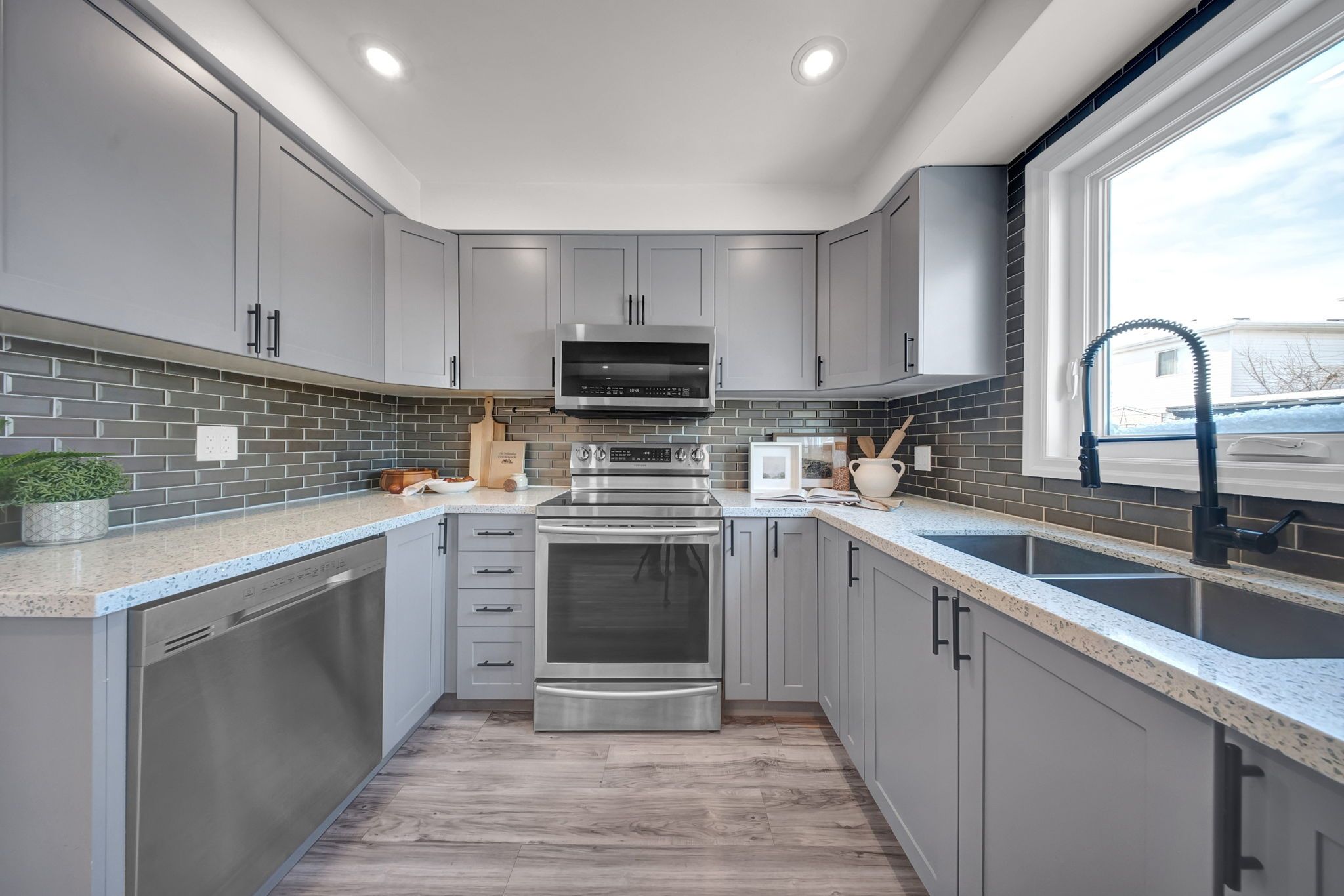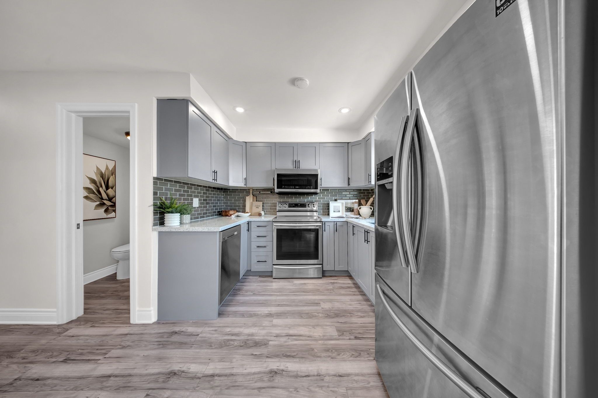 • Updated home with a chef-inspired kitchen featuring quartz counters and stainless steel appliances.