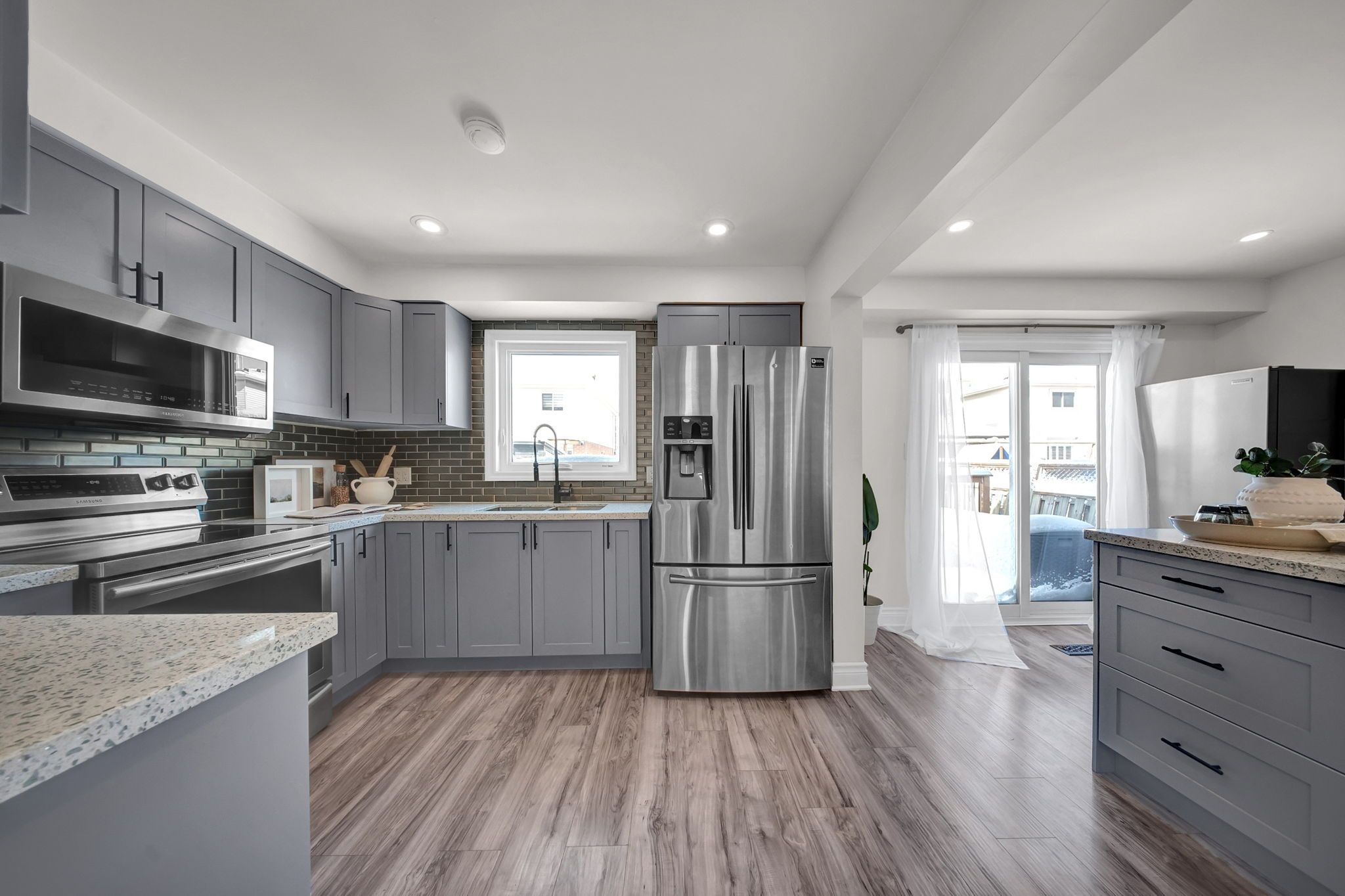 Situated on a quiet court location close to transit, the go train, schools, oshawa centre, walmart superstore and walking distance to all amenities. This completely updated home does not disappoint. Welcoming you from the start is the new 40" custom steel door. Chef inspired large renovated kitchen complete with quartz counters, stainless steel appliances and rolling breakfast bar. Bright natural light fills the open concept main floor with smoothed ceilings and pot lights. Walkout to private fully fenced yard with large deck and gazebo. Huge great room with newer hard surface flooring and fresh paint thru out. Spacious single car garage with with brand new garage door and lots of storage options. The layout is thoughtfully designed to maximize space and functionality, ensuring a welcoming atmosphere for family and friends. 3 spacious bedrooms, master with 3pcensuite & w/i closet. Separate side entrance to completely updated fully finished basement with new kitchen and new appliances offers in-law or rental potential. Great for extended families or a mortgage helper. Don't miss this opportunity to create lasting memories in a wonderful community! 200 amp breaker panel, shingles 2011, windows 2014, egress windows in basement 2024, furnace and a/c 2012, central vac canister in garage, rough in for bidet toilet in basement washroom. Seller and list brokerage do not warrant retrofit status of basement.