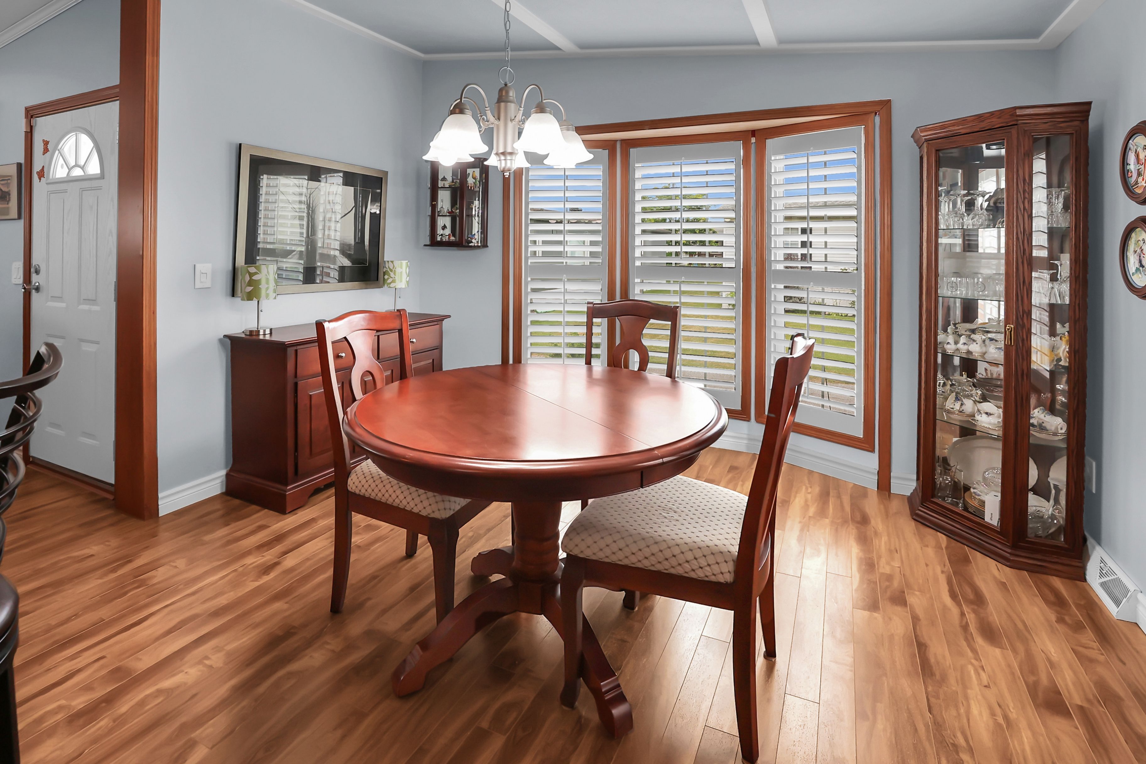 • Bright open concept layout with vaulted ceilings and California shutters.