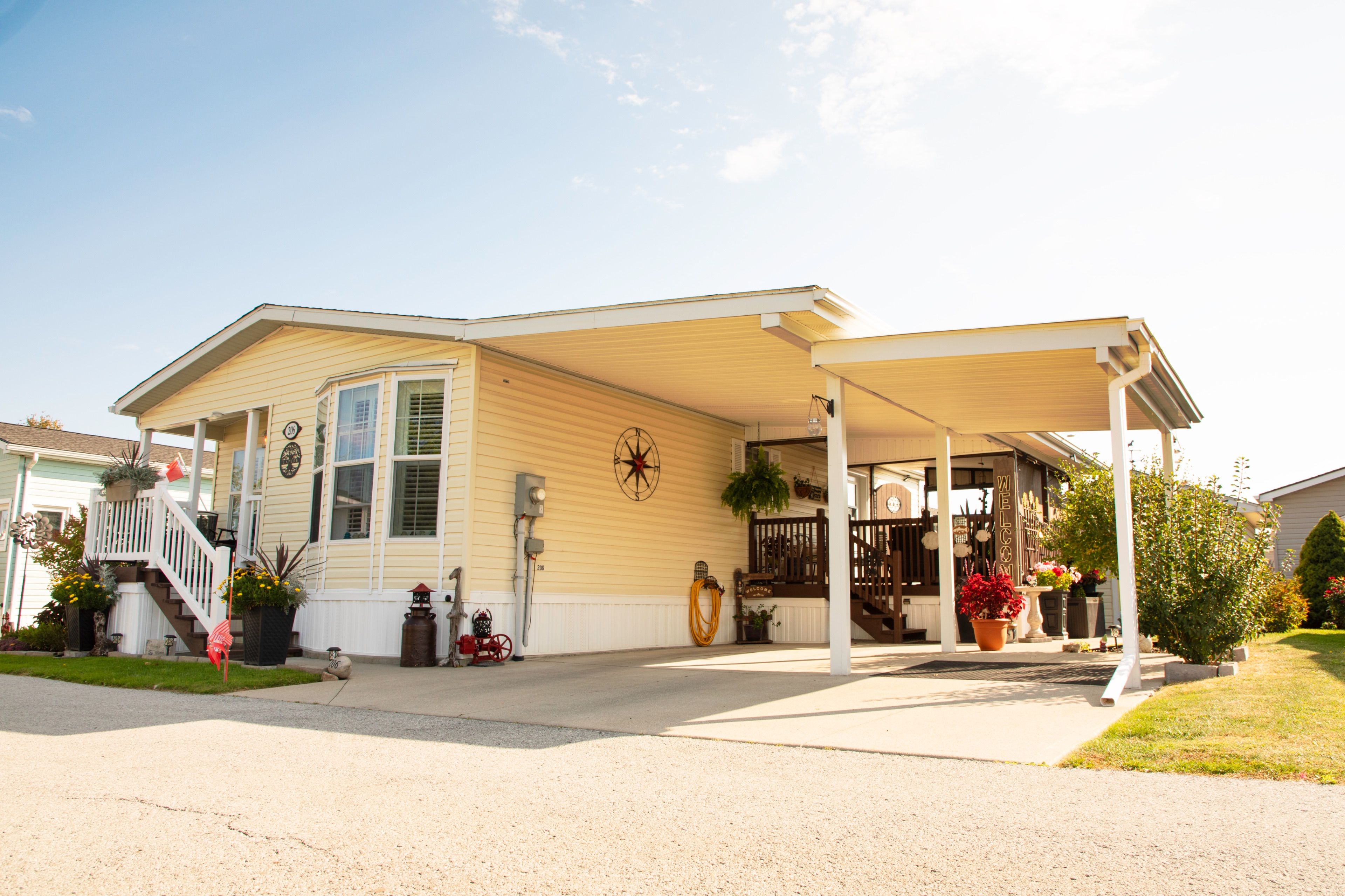 Welcome to 20603022 townline rd (trillium trail) - a beautiful updated 2-bedroom, 2-bath bungalow in the sought-after parkbridge black creek adult lifestyle community. This move-in ready home offers a concrete double driveway, carport, covered deck with back entrance, and a large shed on a concrete slab. The drive way was originally configured to accommodate two vehicles, including a pickup truck: the current owners later added an extended carport to house a golf cart, which can easily be removed if additional paring space is desired. Inside you'll find newer floors, california shutters, and a bright open layout for easy living. The primary suite features a walk-in closet and ensuite, while the guest bedroom enjoys it own 4-piece bath. Recent upgrades include furnace (2022) owned electric hot water tank (6 yrs) roof (2022) and shed rood (4 yrs). Living here means more than just a home - it's a lifestyle. Enjoy a secure gated community with indoor and outdoor pools, sauna, library, tennis courts, community hall and over 20 social activities designed for active retirement living. Monthly fees: land lease $825. 00 + taxes $222. 58 = $1,047. 68.