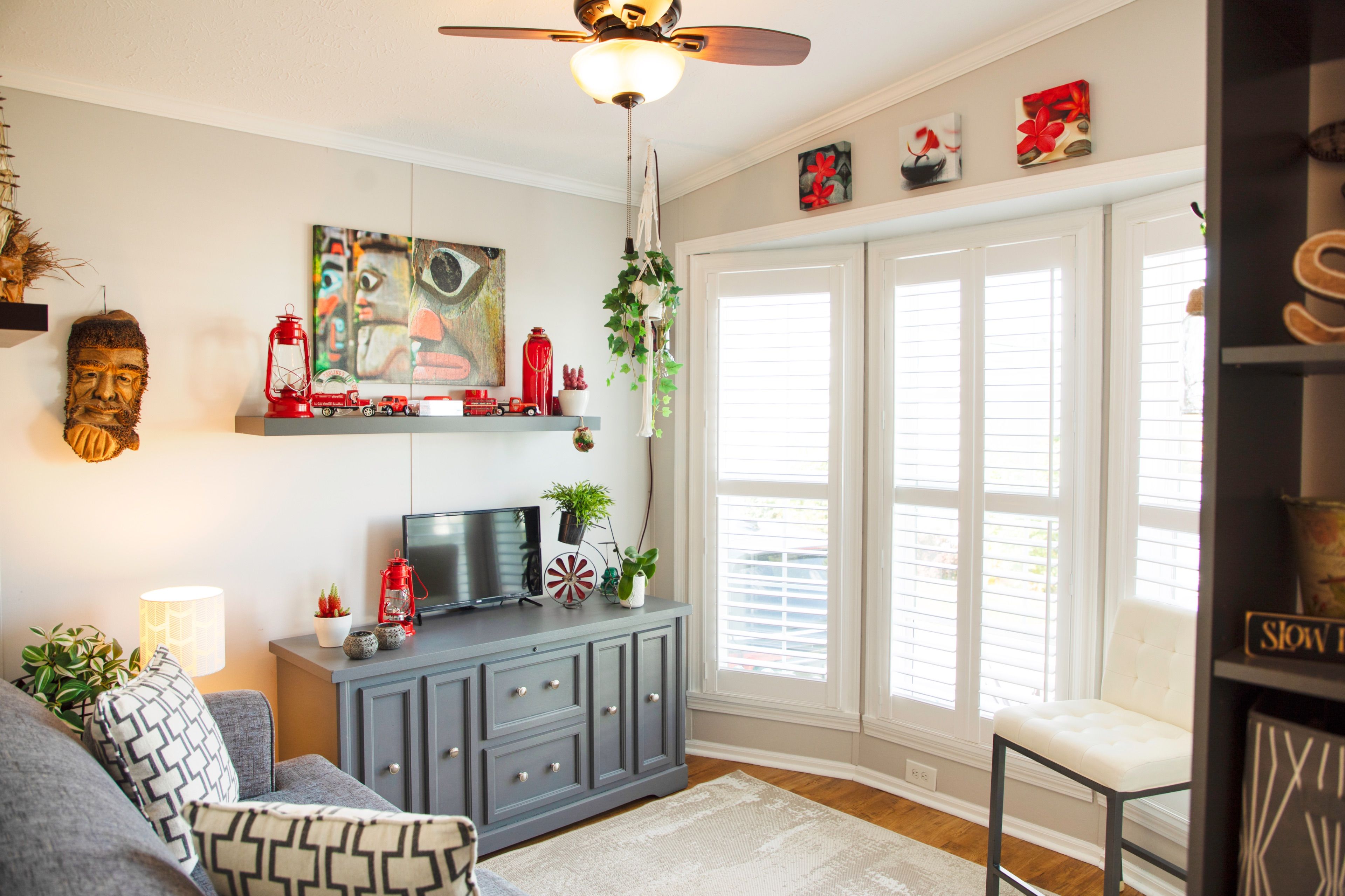 • Bright open layout with newer floors and California shutters.