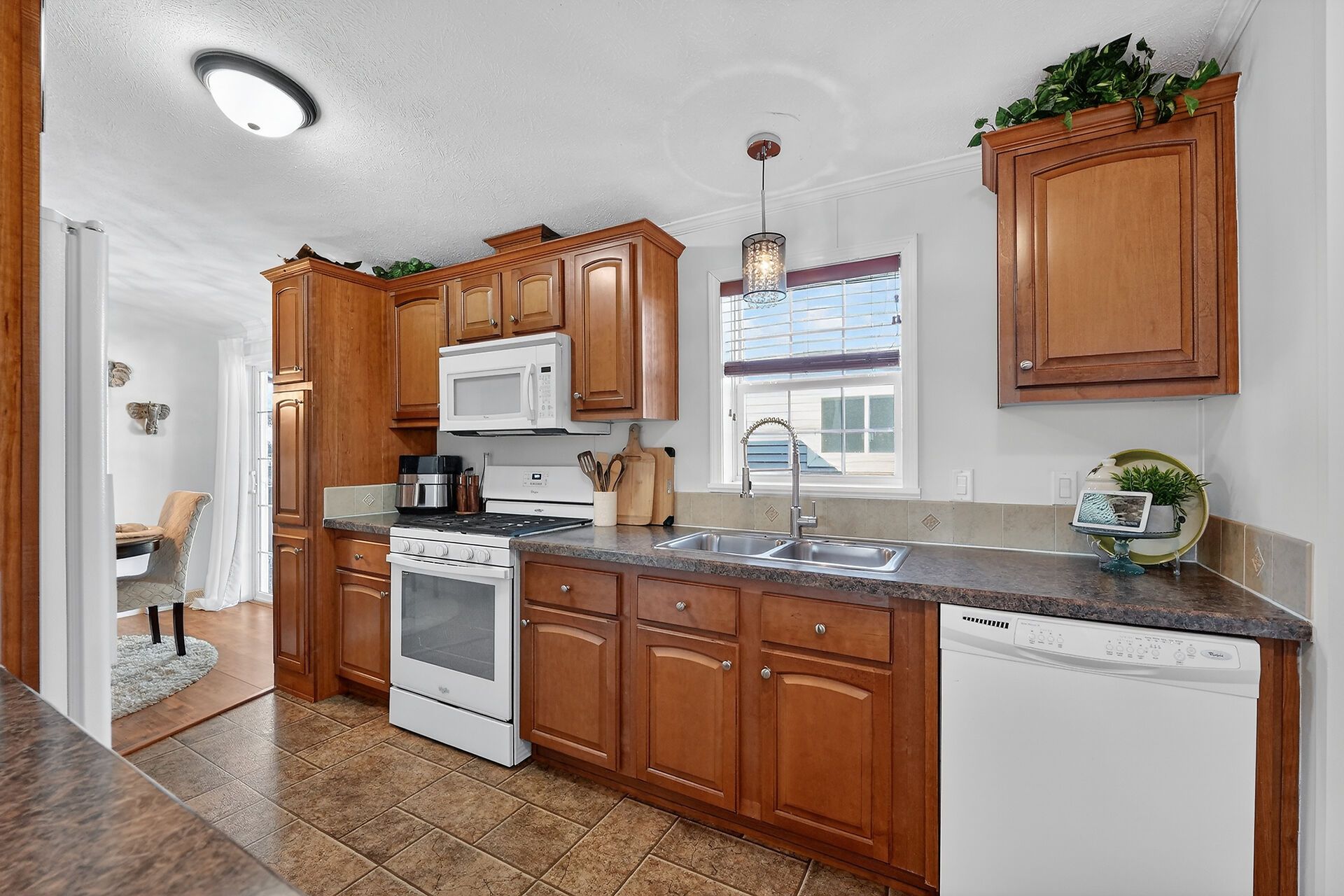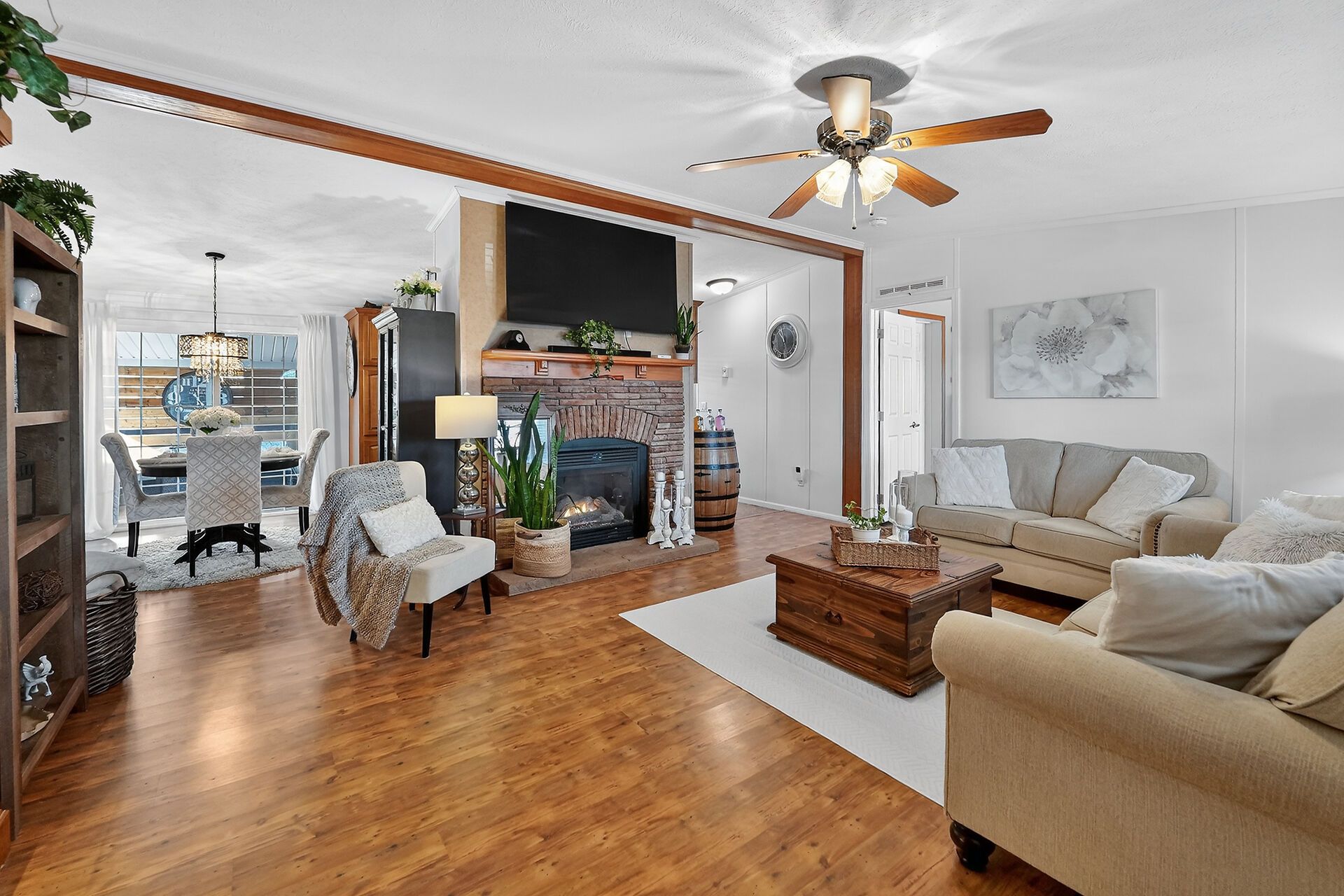 • Spacious open living area with a cozy gas fireplace for relaxation.