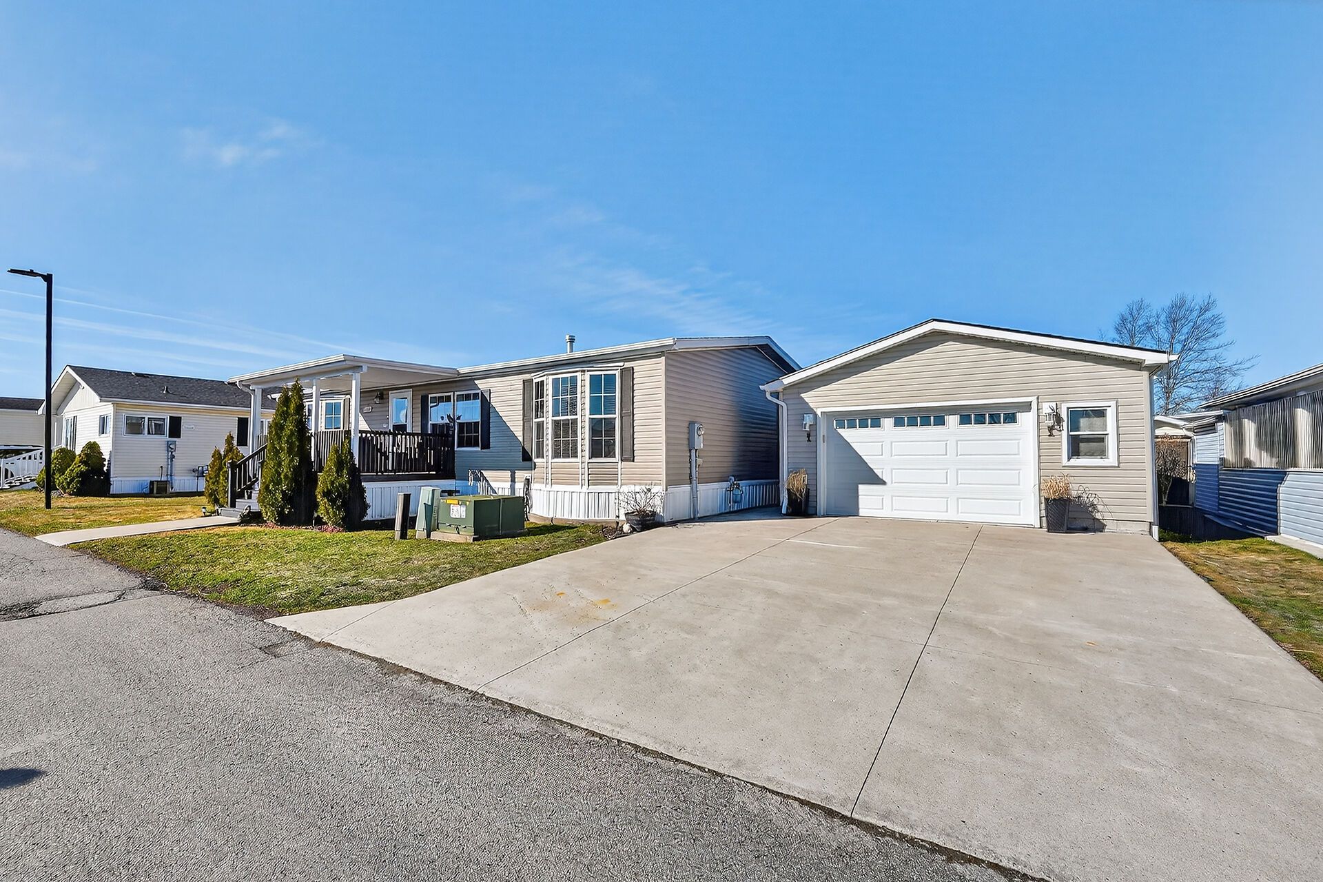 Relax and enjoy easy living at 211-3033 townline road... Set within stevensville's vibrant black creek community, an adult lifestyle gated community where comfort, convenience, and connection are part of everyday living. From the moment you arrive, you'll appreciate the home's inviting curb appeal, featuring a detached garage and poured concrete driveway and walkways that add both convenience and functionality. A spacious front porch offers the perfect place to relax and enjoy the peaceful surroundings. Step inside to a beautifully maintained 3-bedroom, 2-bathroom home showcasing a bright, open living space centered around a cozy gas fireplace. Continue outside to the generously sized rear deck, offering a private and beautifully finished space perfect for relaxing with a morning coffee or unwinding with friends on warm summer evenings. Whether hosting family, entertaining guests, or simply enjoying a quiet evening at home, this property provides an exceptional setting. A wonderful bonus included with the home is a golf cart (approx. $6,500 value) - the perfect way to explore and enjoy everything the community has to offer. Residents enjoy outstanding amenities including indoor and outdoor pools, a clubhouse, sauna, tennis and pickleball courts, shuffleboard, fitness classes, and an active social calendar. Monthly fees are $1,104. 06 (land lease $850, estimated taxes $254. 06). If you're seeking a relaxed lifestyle without sacrificing comfort or community, 211-3033 townline road offers the perfect opportunity - a place where neighbours quickly become friends.