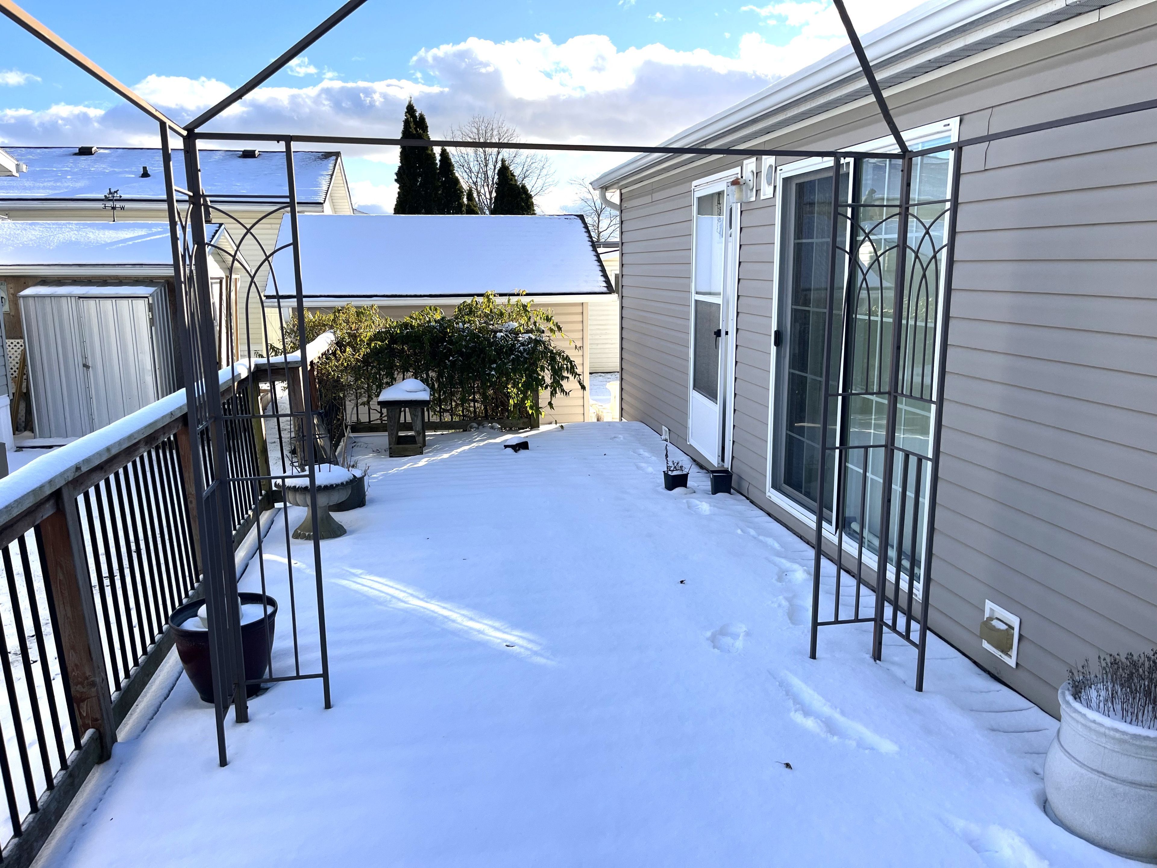 Located in parkbridge's black creek adult lifestyle community in stevensville, on. This gated neighbourhood is known for its peaceful natural surroundings-mature trees, a tranquil pond and creek, and sweeping countryside views-yet remains only minutes from the qew, the u. S. Border, and lake erie's shoreline. At the centre of it all is the impressive 12,000 sq ft recreation centre, offering heated indoor and outdoor pools, a hot tub, sauna, library, craft and games rooms, kitchen facilities, plus indoor and outdoor shuffleboard courts. Outdoor enthusiasts will appreciate the tennis courts, scenic walking and biking trails, and an active social calendar with options such as yoga, bingo, aerobics, and line dancing. This 1,092 sq ft bungalow features an open-concept layout ideal for comfortable living. The bright eat-in oak kitchen includes tile flooring and an island, flowing into a spacious living/dining area finished with vinyl plank flooring. Sliding doors lead to a generous back deck. The home offers two bedrooms and two full bathrooms, including a 3-piece bath with shower and 5-piece ensuite with double sinks and a walk-in closet. Additional highlights include front and rear decks, a full-size storage shed, and a double driveway. Located just straight down oriole to buffin from the main entrance. This is a land-leased community with an estimated monthly site fee of $949. 14 (including taxes); water is billed quarterly at approximately $80. Recent updates include a new roof (2023) and a microwave and dishwasher installed in november 2024.