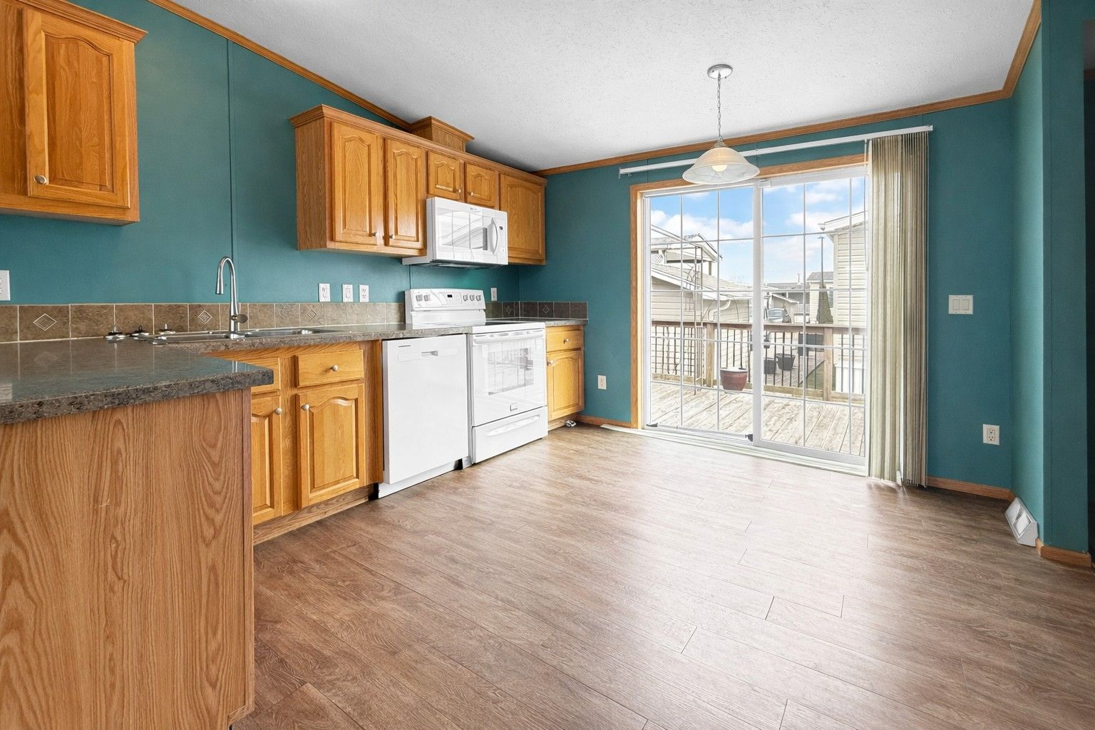 • Bright eat-in oak kitchen flows into a spacious living/dining area.