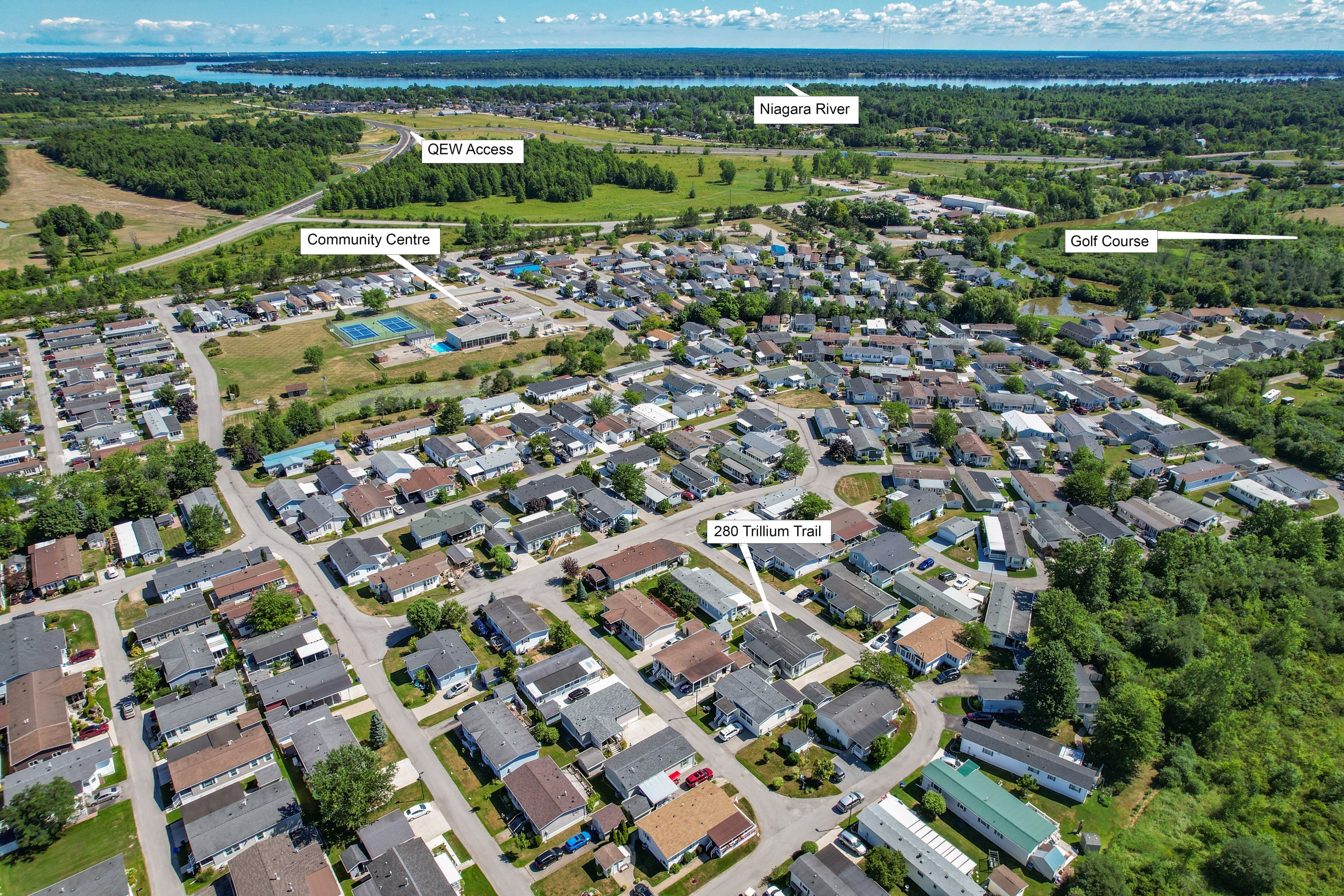 Carefree living in every season ... Welcome to 280-3033 townline road (trillium trail), nestled in the heart of stevensville's vibrant black creek adult lifestyle gated community, where comfort, convenience, and connection come together. This charming and well-maintained 3-bedroom, 2-bath, 1322 sq ft home offers an ideal blend of space and functionality, perfect for those looking to enjoy both a relaxed and active lifestyle. Step inside and be greeted by a spacious living room anchored by a cozy gas fireplace, ideal for gathering with friends or enjoying quiet evenings in. The adjacent dining area and well-appointed kitchen with gas stove and built-in microwave make meal prep and entertaining a breeze. Off the kitchen, you'll find a convenient laundry room with stackable washer/dryer and access to the covered rear deck - perfect for enjoying morning coffee or peaceful afternoons outdoors. Dining area also has access through sliding doors to the beautiful 29' x 9' deck with steps down to the garden shed with extra storage. The primary suite is a true retreat with a walk-in closet and a private 3-piece ensuite with walk-in shower. A generous second bedroom and a third bedroom (currently used as an office) offer flexibility for guests or hobbies. Additional features include a large linen closet, furnace (2019), owned hwt (2016), and a covered front porch. But what truly sets this home apart is the lifestyle it affords. As part of this welcoming community, you'll enjoy full access to top-tier amenities: indoor/outdoor pools, a sauna, clubhouse, shuffleboard, tennis/pickleball courts, fitness classes, and a dynamic social calendar. Monthly fees: $1109. 85 ($850. 00 land lease + $259. 85 estimated taxes). Ready to downsize without compromise? This is the one! Click on multimedia for the full virtual tour, drone footage & more!