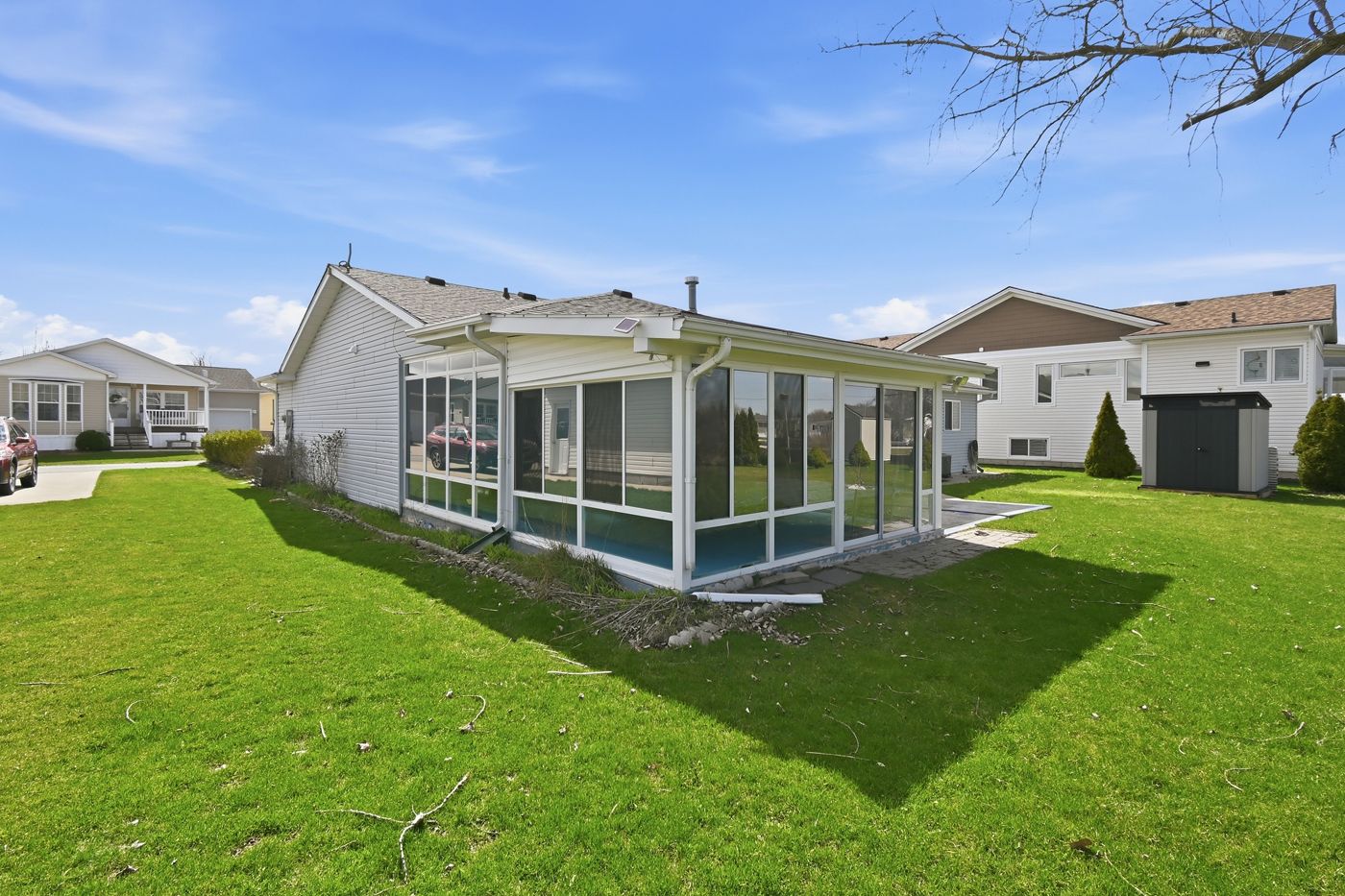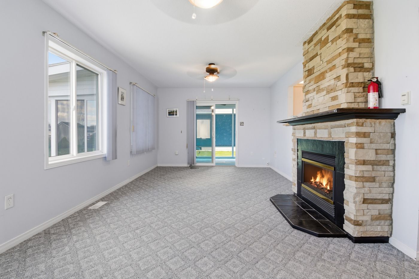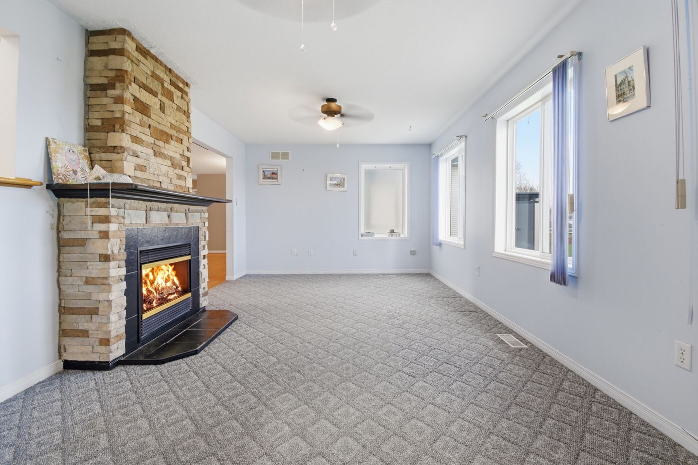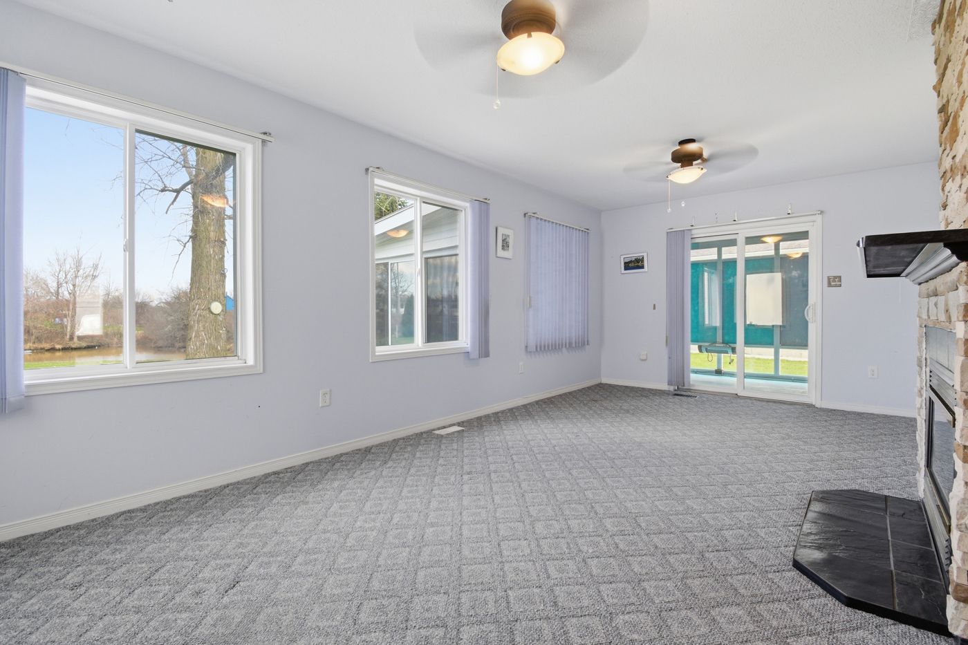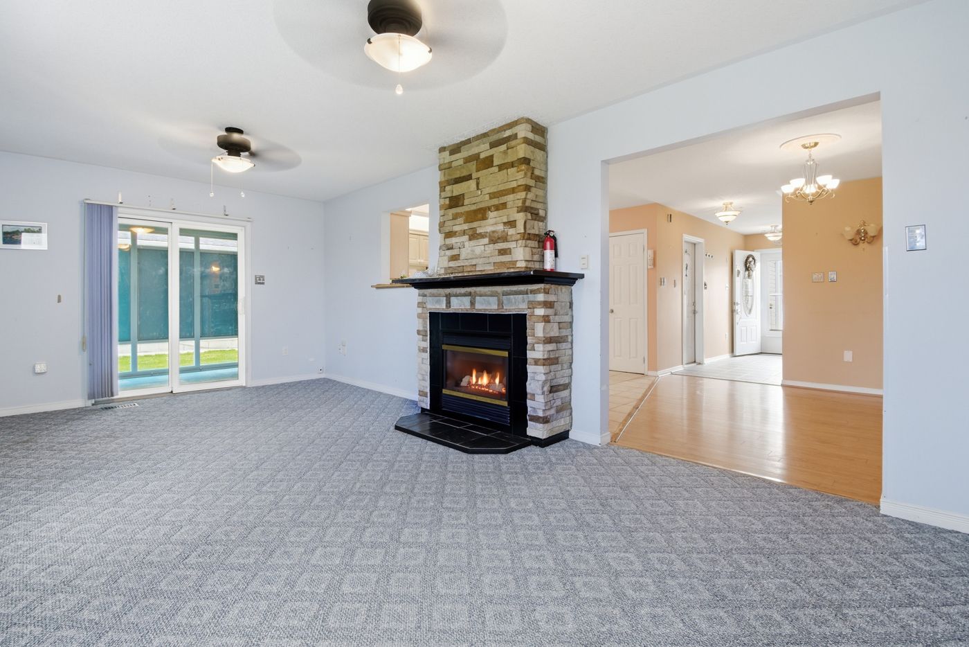 Rare opportunity! Looking to enjoy a waterfront property within a carefree community? Welcome home to 512 - 3033 townline road in the sought after black creek adult lifestyle community! This spacious 2 bedroom, 2 bathroom bungalow offers 1600 sqft of bright, open concept living space and backs directly onto scenic black creek - perfect for enjoying fishing, kayaking, and peddleboats right from your back yard! The home features a spacious kitchen with a skylight, dining and living area ideal for entertaining, along with a separate family room complete with a gas fireplace and sliding doors leading to a sun room overlooking the water! Both bedrooms are generously sized with walk-in closets; the primary suite includes a full 3-pc ensuite, while the second bedroom enjoys convenient ensuite privileges. Additional highlights include a double stamped concrete driveway, double car garage, new storage shed, and a concrete patio for outdoor entertainment! Residents of this vibrant community enjoy access to exceptional amenities, including indoor and outdoor pools, sauna, clubhouse, shuffleboard, tennis and pickleball courts, fitness classes and a full calendar of social activities! Estimated monthly fees $1135. 20 (land lease - $850, monthly taxes - $285. 20)
