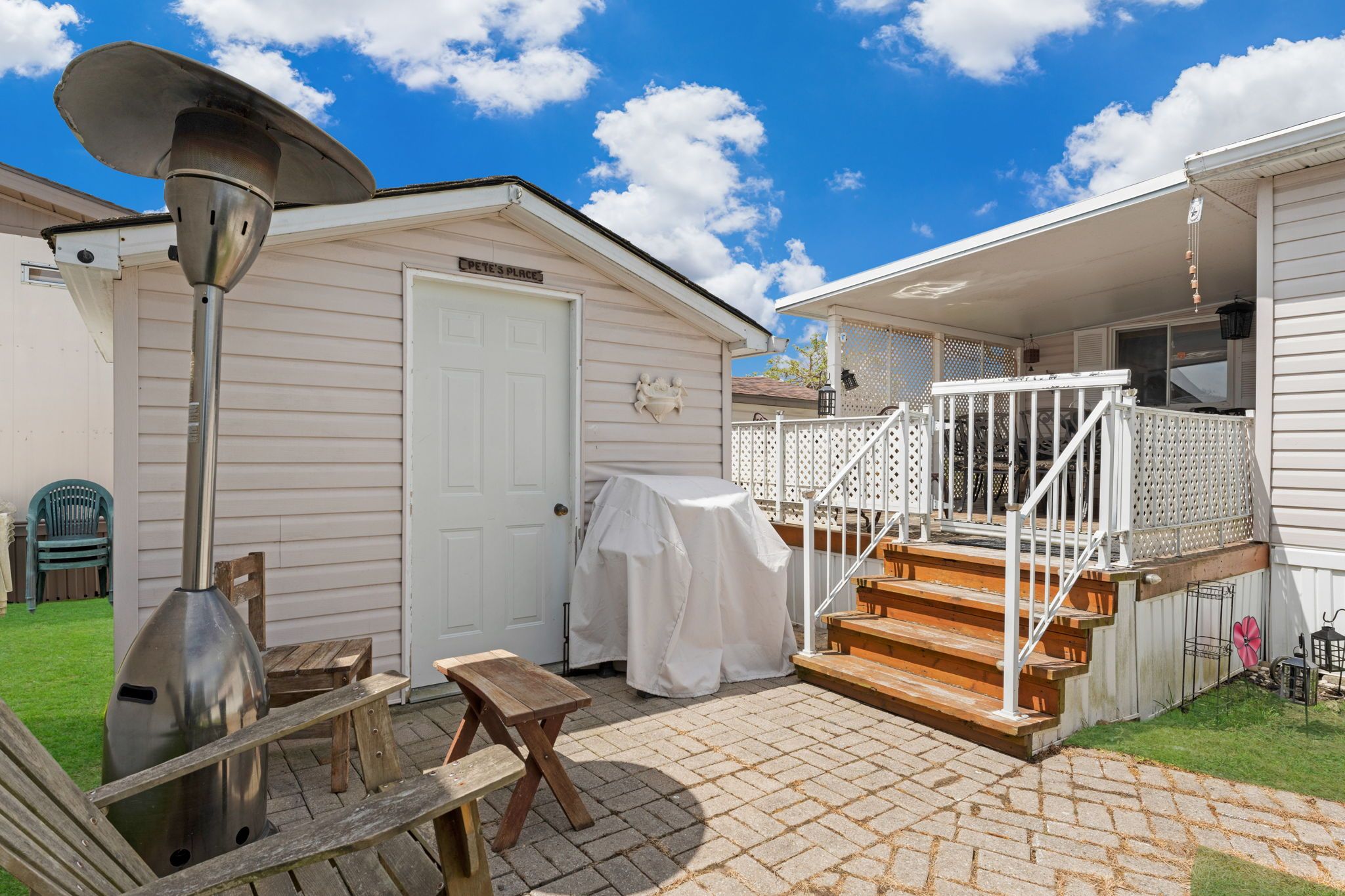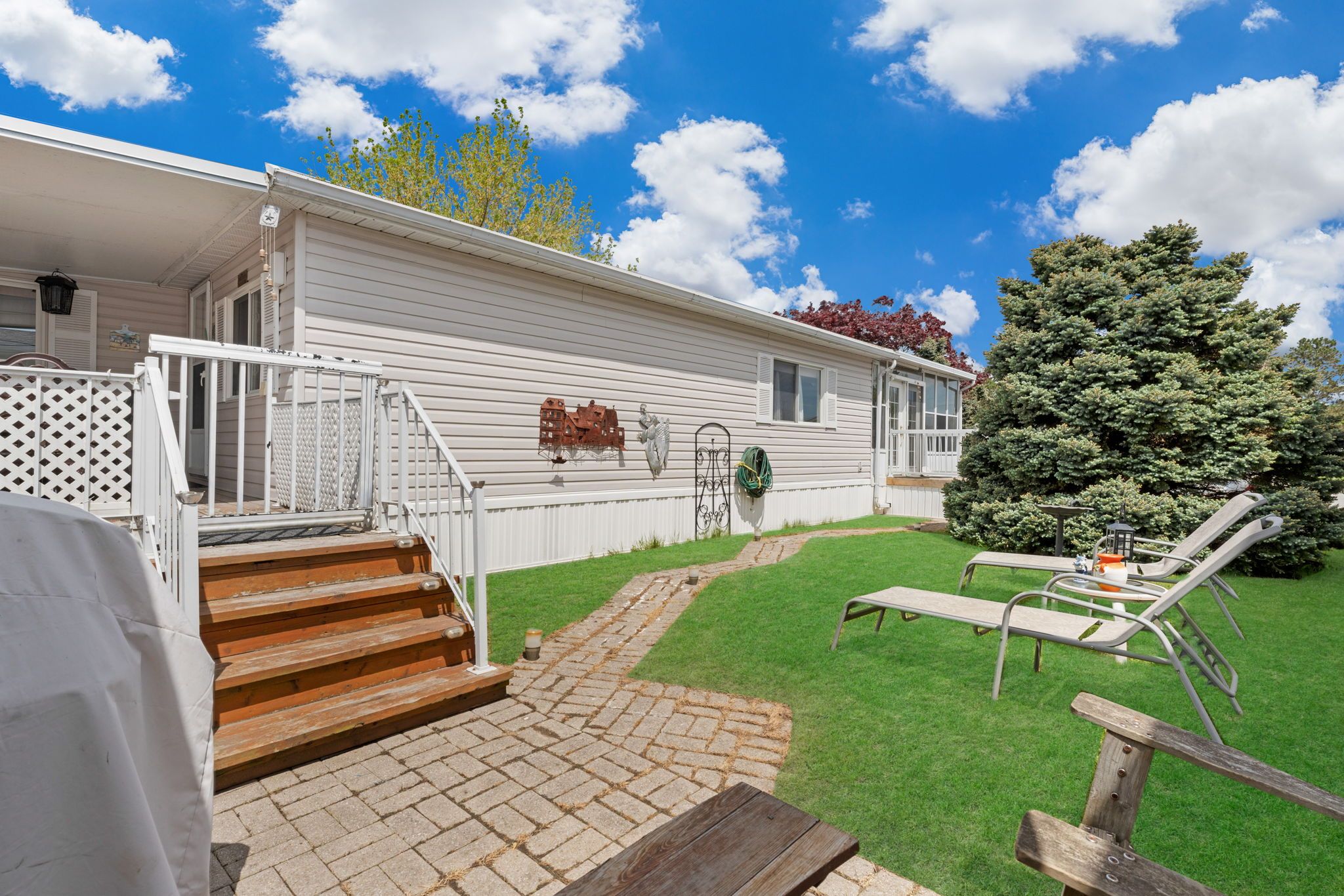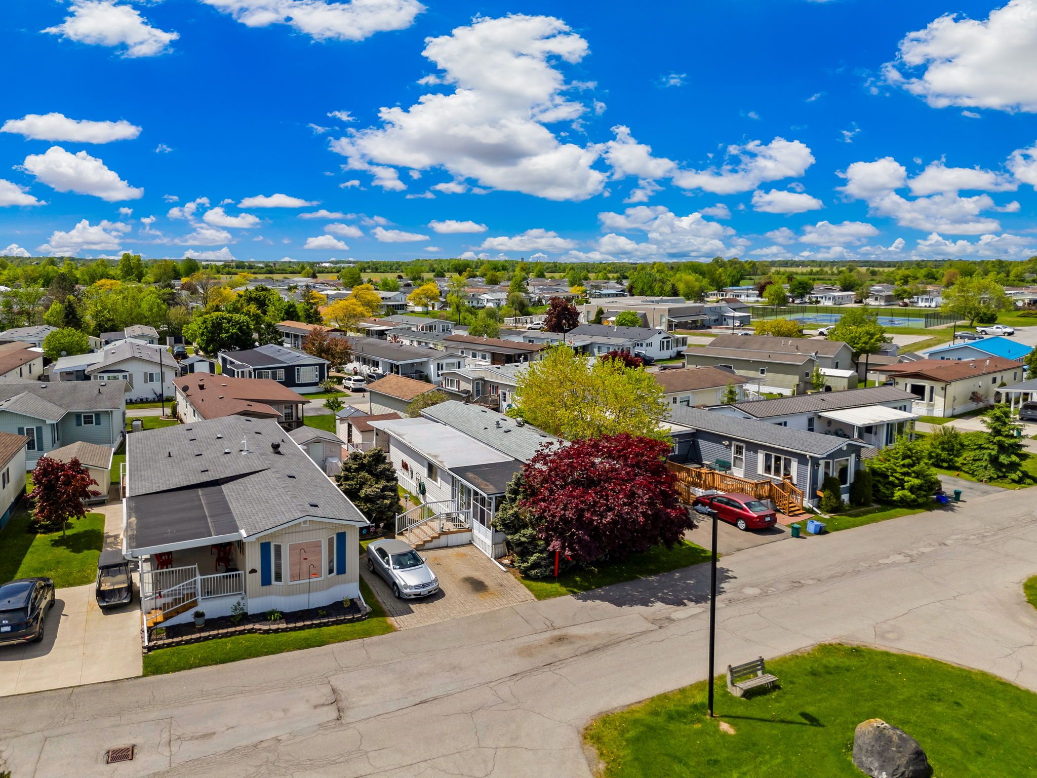 Fall in love with this bright, open-concept and beautifully maintained 1,220 sq ft bungalow located in the sought-after black creek adult community in scenic stevensville. Designed for comfort and easy entertaining, the home also offers a spacious 180 sq ft sunroom and a partially covered 17' x 11' deck/terrace overlooking a manicured side yard - perfect for morning coffee or gatherings with family and friends. Inside, a formal dining room provides an inviting hosting space, while the light-filled kitchen and family room feature soaring cathedral ceilings and a cozy gas fireplace that adds warmth and charm. The conveniently placed laundry area sits just off the kitchen for everyday functionality. The hallway leads to generous storage and utility space, a versatile den, a bright office/bedroom with walk-out to the deck, a spacious primary bedroom, and a large 5-piece bathroom complete with a relaxing jetted tub. A double paving stone driveway offers two private parking spaces, and a powered 10' x 10' shed provides extra room for tools, hobbies, or seasonal storage. Enjoy an active and social lifestyle only steps away with access to the community centre, indoor and outdoor pools, indoor whirlpool spa, tennis courts, shuffleboard, saunas, library, gym equipment, golf and walking trails. Activities include yoga, aerobics, line dancing, tai-chi and more. Conveniently located just a short drive to niagara falls, crystal beach, niagara safari and nature parks. Experience enjoyable, peaceful & carefree living! Book your private showing today! Estimated monthly fee of $789. 37 that covers land-lease and taxes.