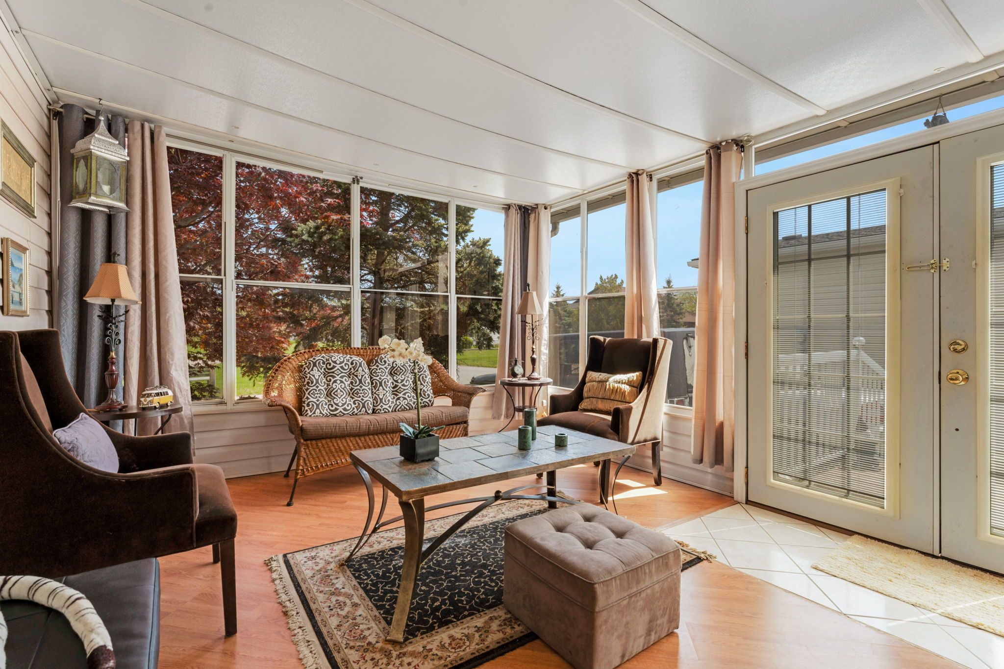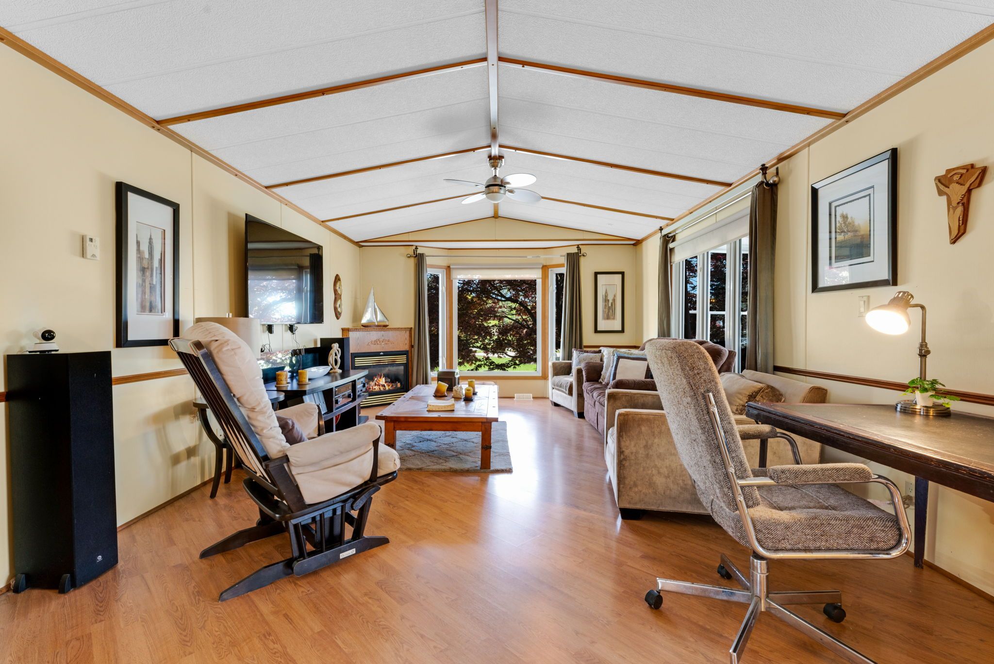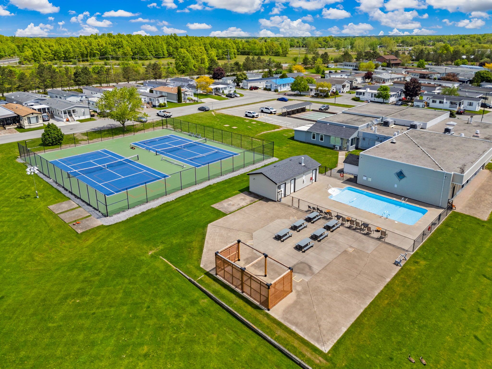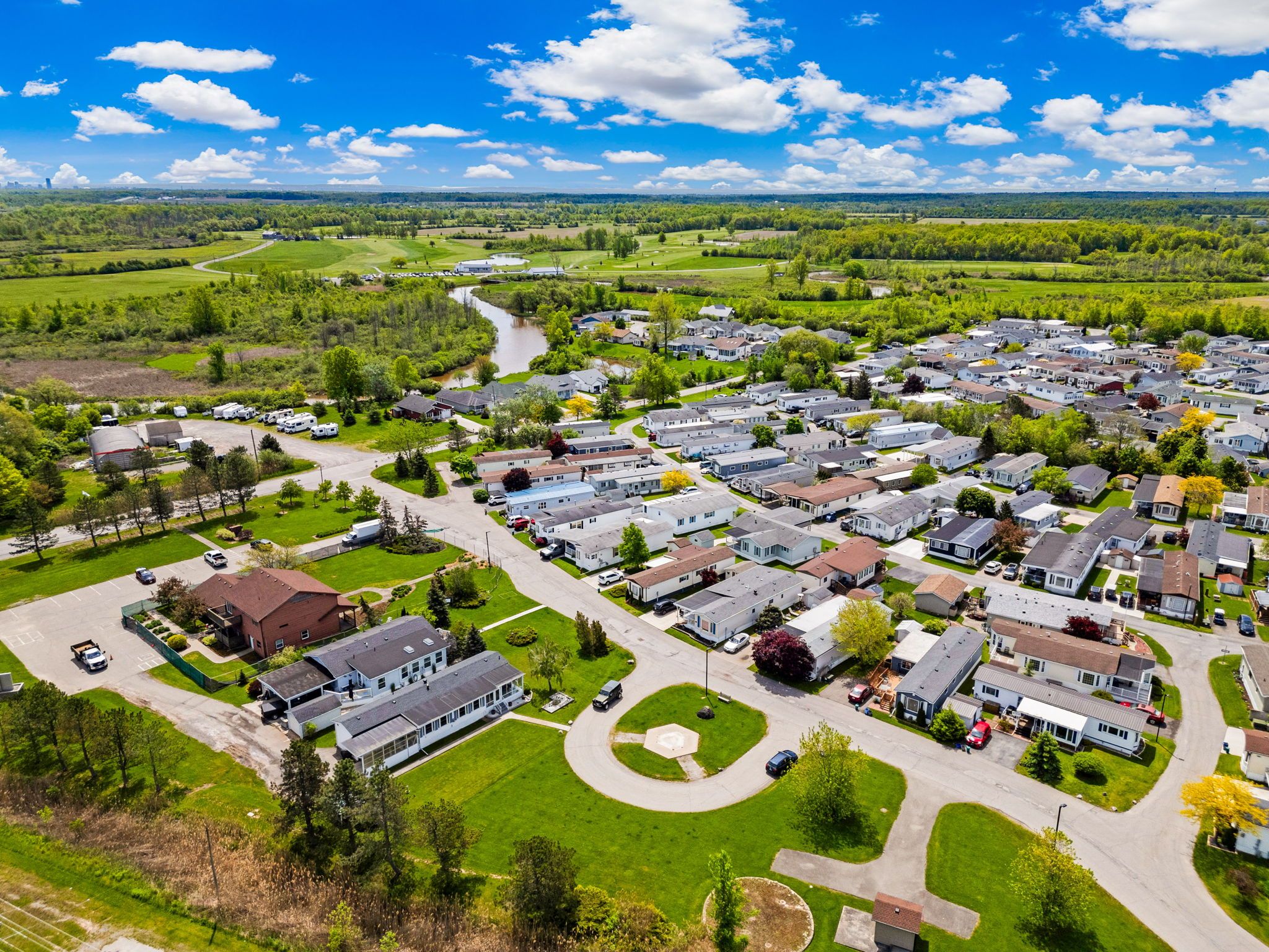 Fall in love with this bright, open-concept and beautifully maintained 1,220 sq ft bungalow located in the sought-after black creek adult community in scenic stevensville. Designed for comfort and easy entertaining, the home also offers a spacious 180 sq ft sunroom and a partially covered 17' x 11' deck/terrace overlooking a manicured side yard - perfect for morning coffee or gatherings with family and friends. Inside, a formal dining room provides an inviting hosting space, while the light-filled kitchen and family room feature soaring cathedral ceilings and a cozy gas fireplace that adds warmth and charm. The conveniently placed laundry area sits just off the kitchen for everyday functionality. The hallway leads to generous storage and utility space, a versatile den, a bright office/bedroom with walk-out to the deck, a spacious primary bedroom, and a large 5-piece bathroom complete with a relaxing jetted tub. A double paving stone driveway offers two private parking spaces, and a powered 10' x 10' shed provides extra room for tools, hobbies, or seasonal storage. Enjoy an active and social lifestyle only steps away with access to the community centre, indoor and outdoor pools, indoor whirlpool spa, tennis courts, shuffleboard, saunas, library, gym equipment, golf and walking trails. Activities include yoga, aerobics, line dancing, tai-chi and more. Conveniently located just a short drive to niagara falls, crystal beach, niagara safari and nature parks. Experience enjoyable, peaceful & carefree living! Book your private showing today! Estimated monthly fee of $789. 37 that covers land-lease and taxes.