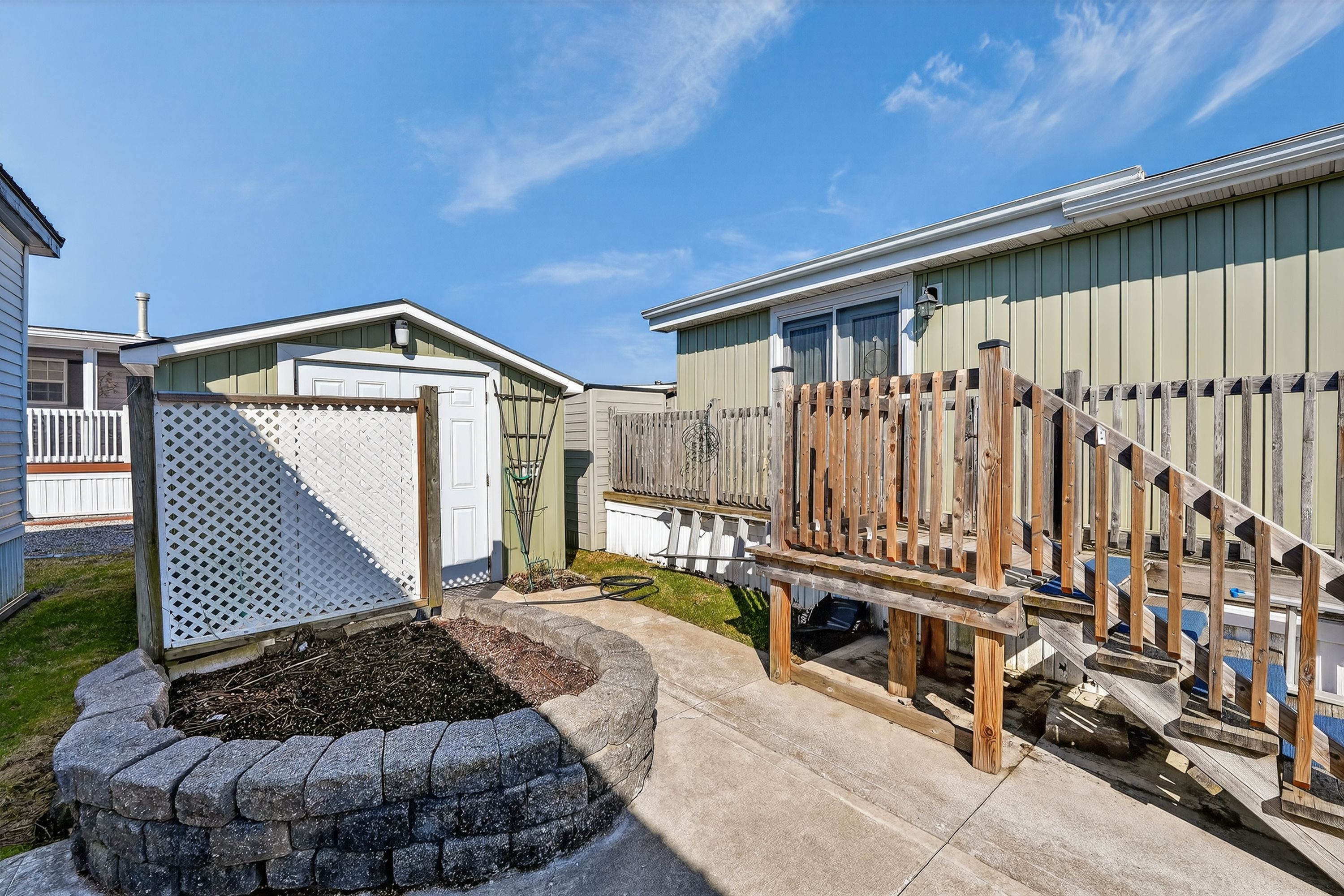 Easy living, great lifestyle ... Set within the sought-after black creek adult lifestyle community in stevensville, 92-3033 townline rd (92 oriole lane) is all about comfortable, low-maintenance living in a welcoming setting. A side wheelchair ramp leads to the large, covered deck, perfectly positioned to overlook the open field across the street along with the clubhouse. It's a peaceful spot to enjoy your morning coffee or connect with neighbours. The side concrete driveway provides parking for three vehicles, and there's a handy shed out back for additional storage. Inside, the kitchen is the heart of the home, featuring a centre island, generous counter space, ample cabinetry, a coat closet, and a pantry for added functionality. The open concept living and dining area flows directly from the kitchen, creating an easy everyday layout. The living room includes a corner fireplace and french doors that lead back out to the covered deck. Down the hall, find a convenient two-pc bathroom and a 3-pc bathroom with a big walk-in shower and a spacious linen closet, which still contains some laundry rough-in. The second bedroom offers a large double closet, while the primary bedroom features a wall-to-wall closet for practical storage. At the rear of the home is a spacious laundry/mudroom with french doors to the side deck walkway and an additional rear door to the yard. This flexible space is ideal for hobbies, storage, or simply keeping things organized. Just a short walk to the clubhouse, this home places you steps from exceptional amenities including indoor and outdoor pools, sauna, shuffleboard, tennis/pickleball courts, fitness classes, and a full calendar of social events. Monthly fees are $971. 49 ($850 land lease + $121. 49 estimated taxes). If you're ready for relaxed living in a close-knit community that blends activity and tranquility, this could be the right next step. Click on multimedia for virtual tour, drone photos, floor plans & more.