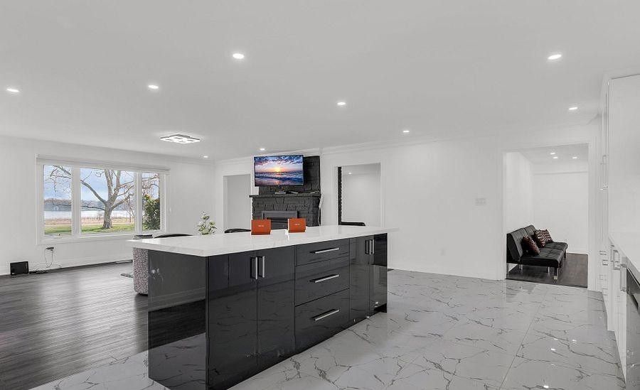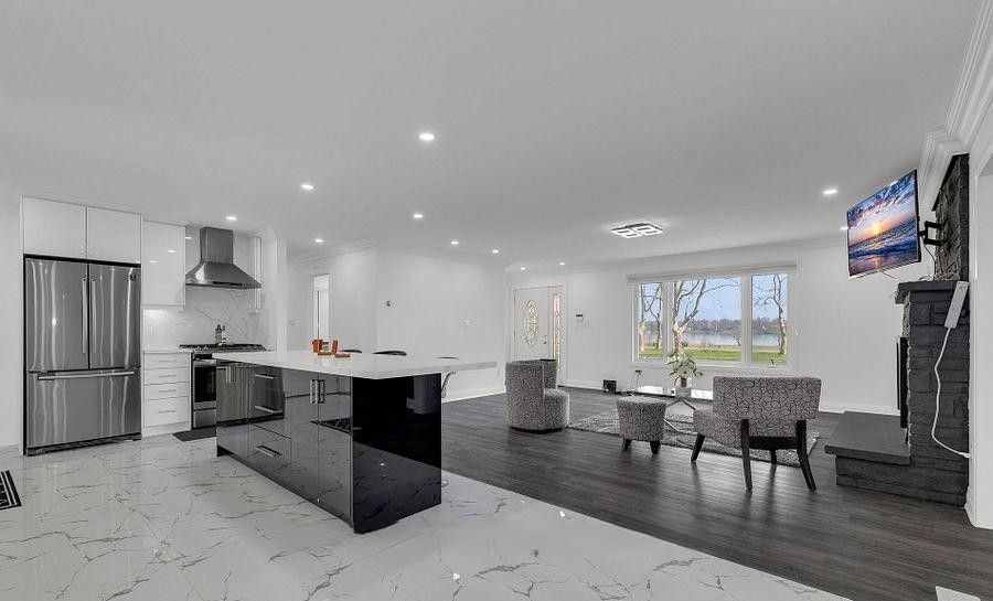 This elegant all-brick bungalow offers approximately 2,664 sq ft of refined living space, set on an expansive 100 x 300 ft waterfront lot with breathtaking views of the niagara river. The home features a beautifully renovated modern kitchen with high-quality finishes, seamlessly flowing into an open-concept kitchen and dining area-perfect for everyday living and entertaining. A bright and inviting sunroom with a gas fireplace provides direct access to the backyard, while the spacious family room also showcases a fireplace and stunning river views. The property includes three generously sized bedrooms, each with its own private ensuite, ensuring comfort and privacy. A large driveway offers ample parking, making this home ideal for buyers seeking luxury waterfront living, tranquility, and an exceptional space for entertaining.