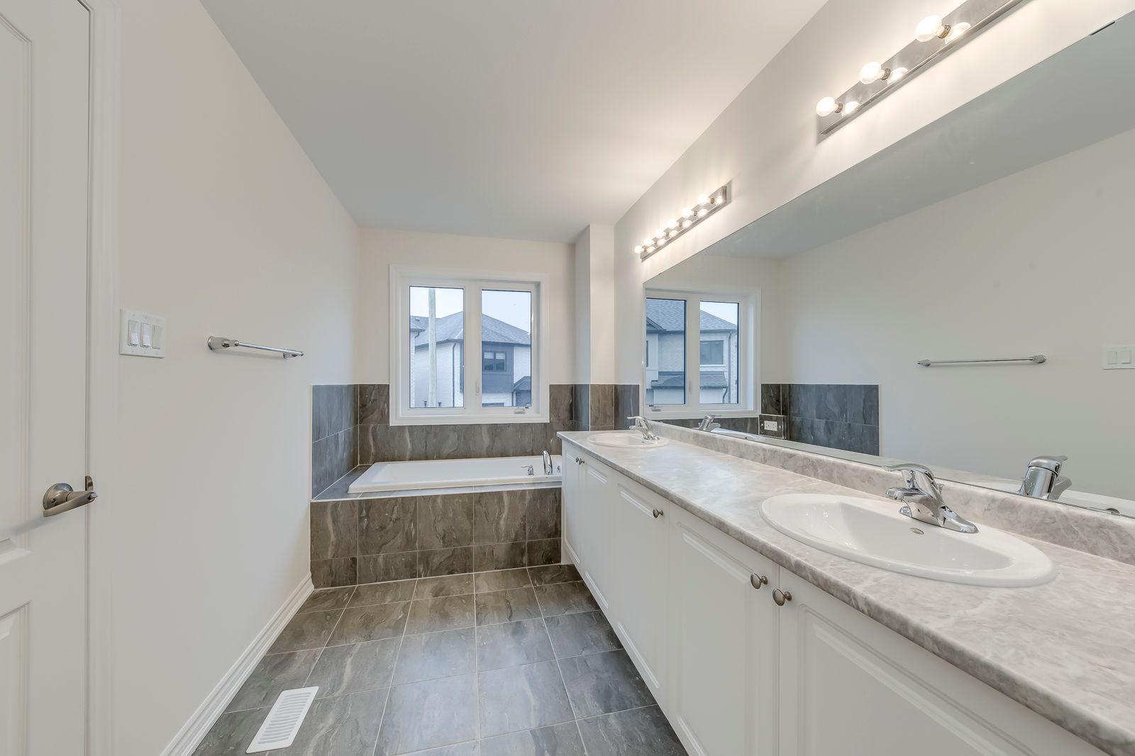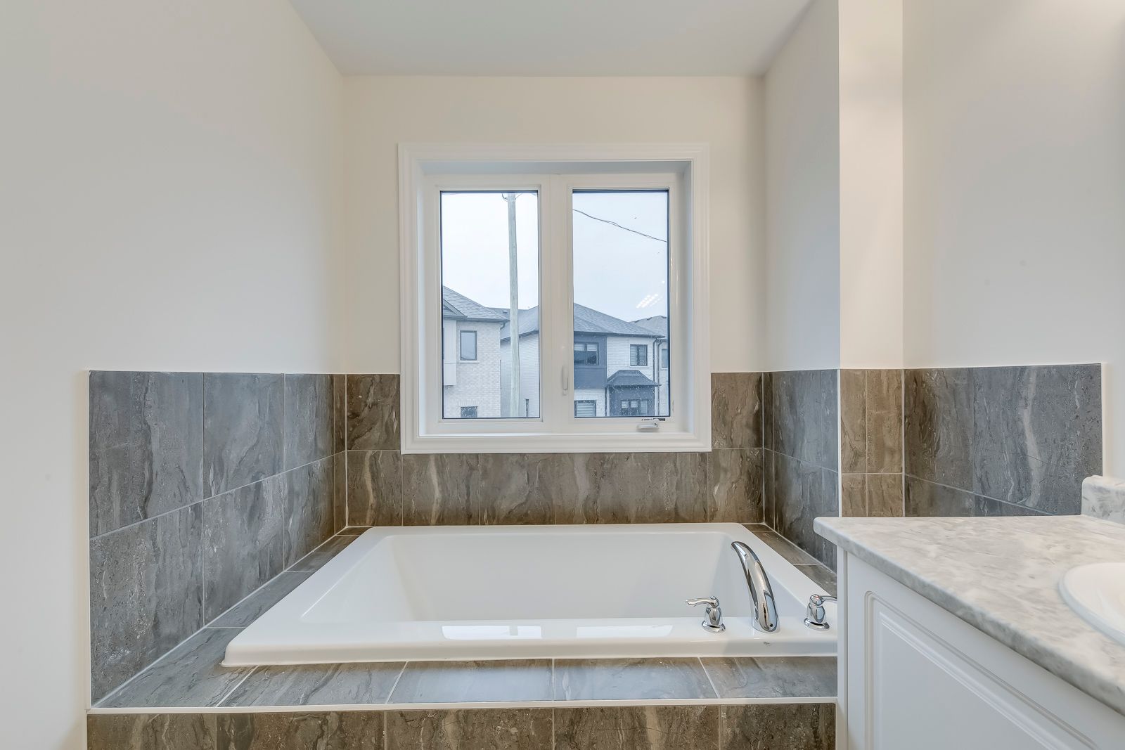 Brand new sundial homes 3 bedroom + den 3. 5 bathroom 2-storey detached home facing a pond in the sought-after pickering neighborhood. The main floor offers an office, dining room, great room with electric fireplace, kitchen and breakfast area. Second floor features a primary bedroom with 5-piece ensuite and walk-in closet, along with two additional bedrooms, two 4-piece bathrooms and a den. Notable features include 9" ceilings on the main floor and garage electric vehicle charging station rough-in! Excellent location minutes to hwy 401, 407, 412, pickering go station, parks, trails and many more amenities!