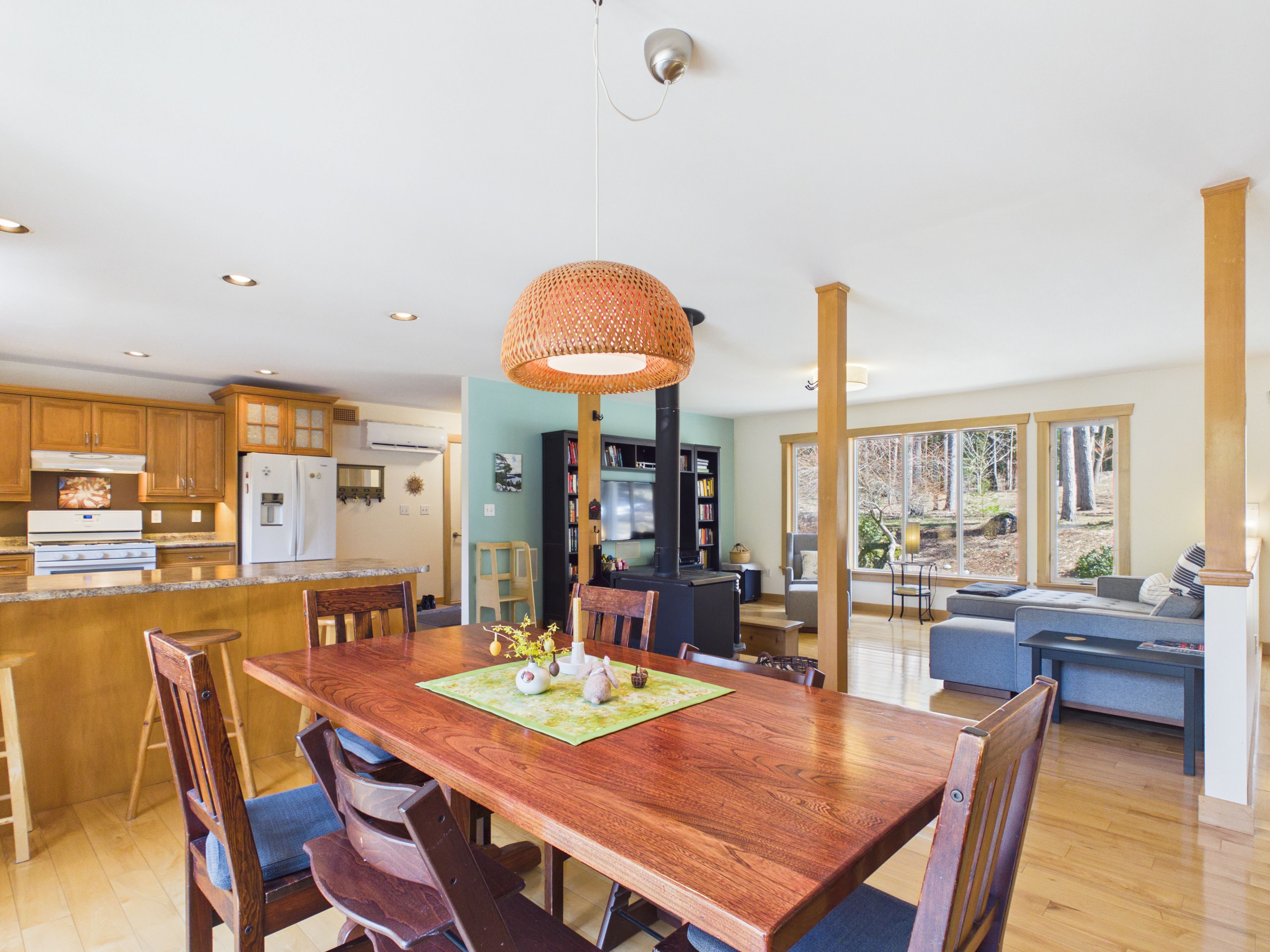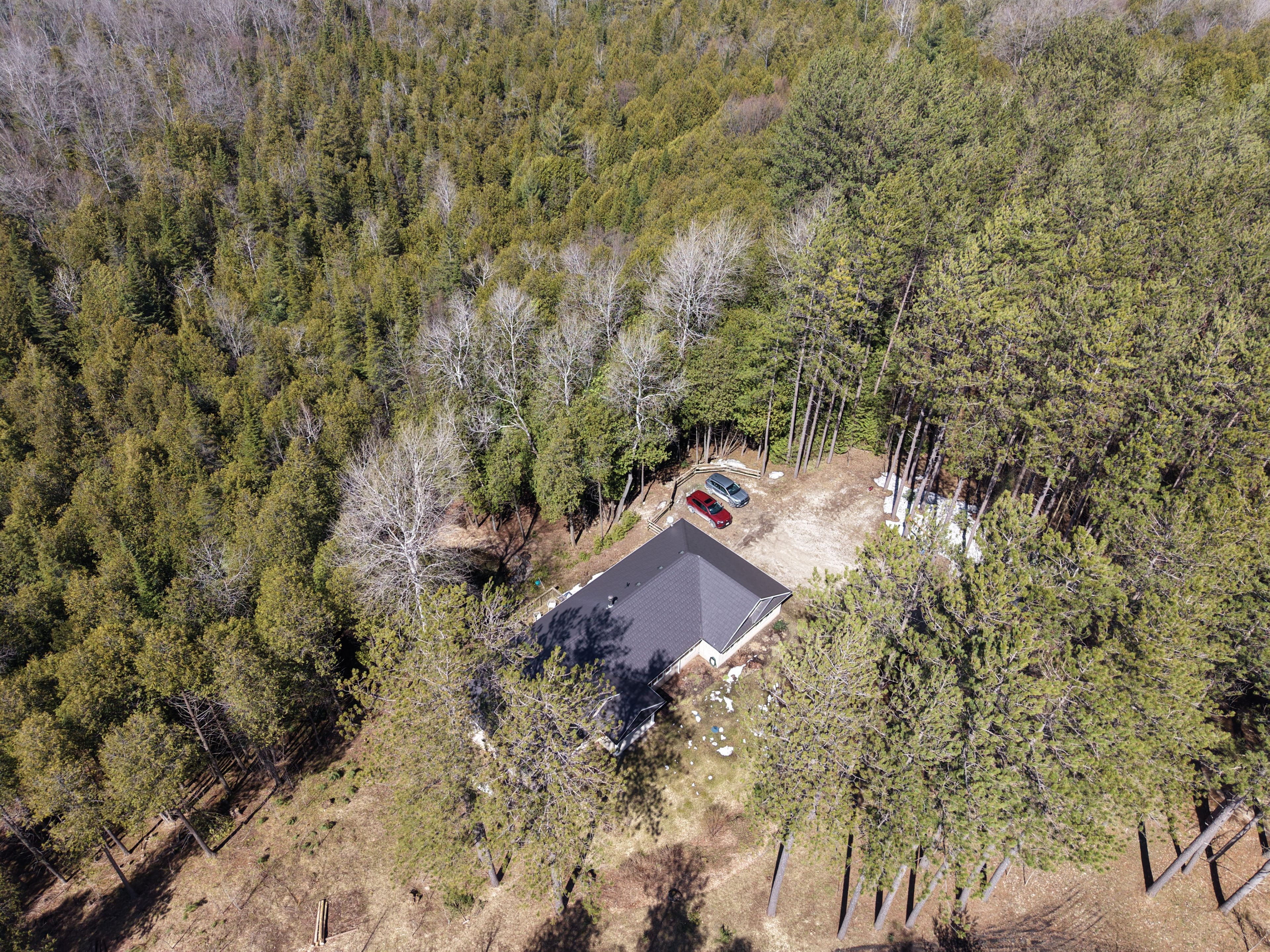 Very private 9-acre setting enveloped by mature trees, showcasing a well-crafted bungalow built in 2003 offering nearly 3000 sq. Ft. Of living space on two levels. Open-concept kitchen, dining, and living area filled with natural light, where the warmth of the wood-burning stove makes the space feel instantly inviting. Large windows and patio doors leading to a sundeck overlooking the pond and surrounding nature-no window coverings needed when you have a view like this! The main floor also features a laundry room and 2 pc. Powder room, a spacious primary bedroom with patio doors, lots of closet space and a 4 pc. Ensuite as well as a generous second bedroom. The finished lower level includes two more restful bedrooms, a full bath, and a welcoming rec room with propane stove, and walkout to the yard. In-floor heat in the basement, upper bedrooms, and powder room offer a steady stream of warmth. The double attached garage provides loft storage to keep things neat and tidy. Steel roof new in 2016, propane boiler, 2012 (serviced this year), updated windows, and new garden shed (2026). Across the road enjoy the privacy and trails of the managed forest. All just minutes to durham, on.