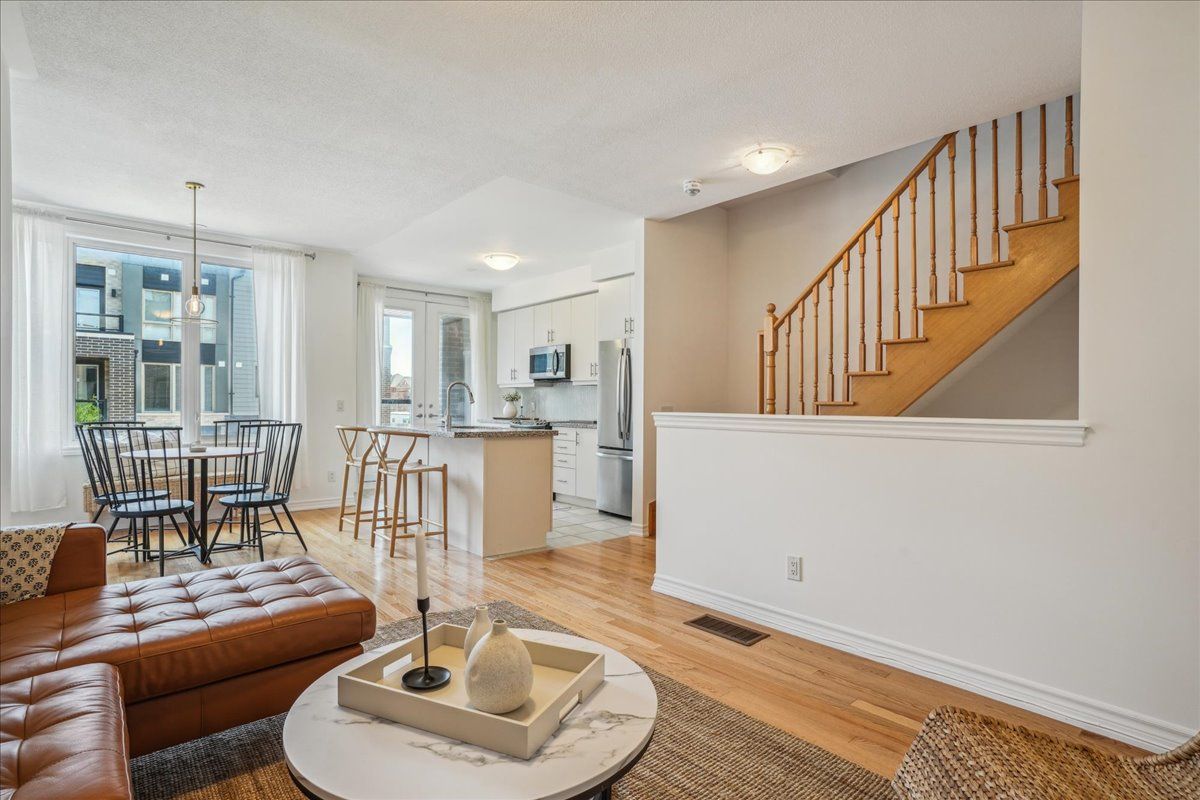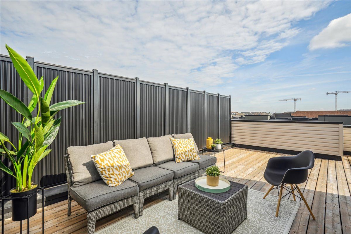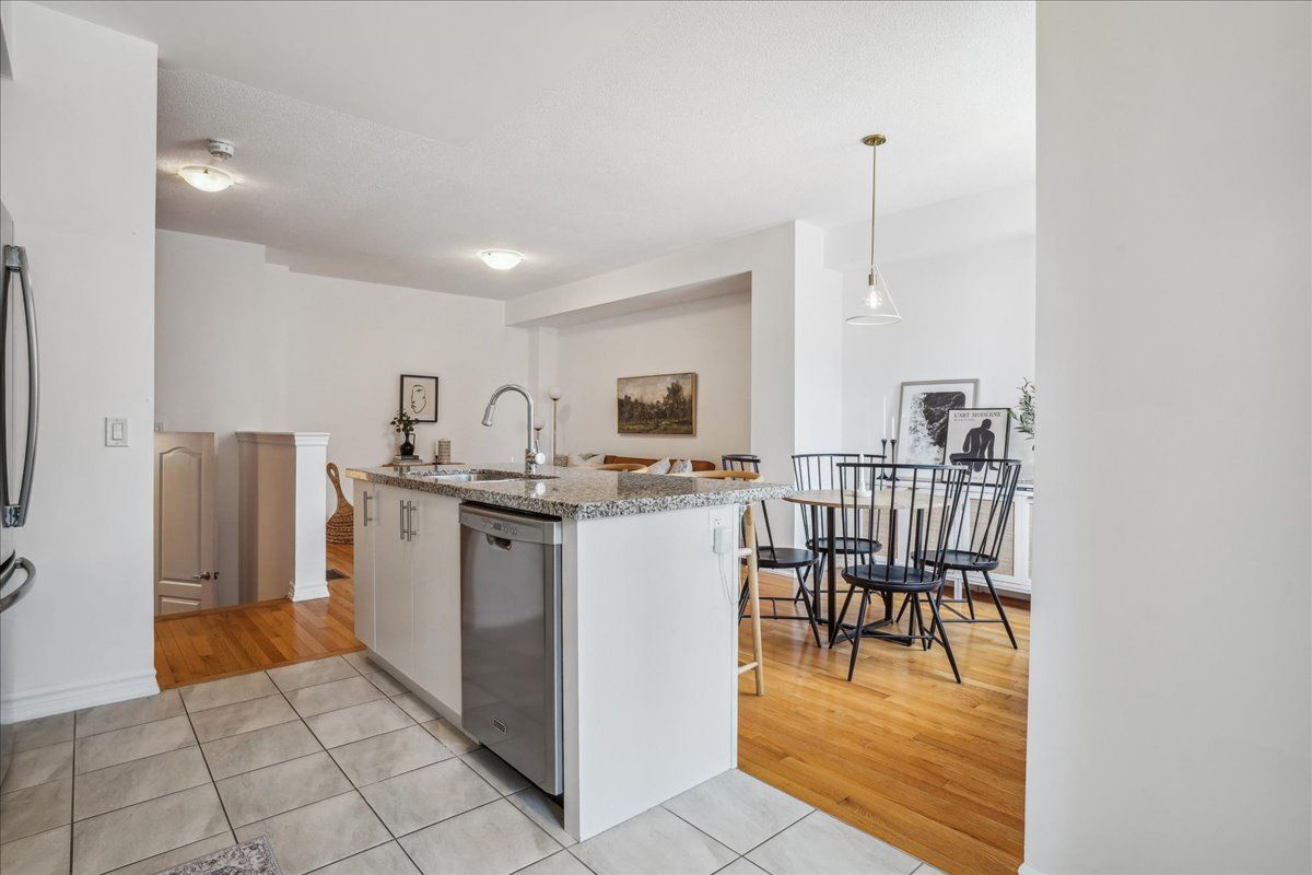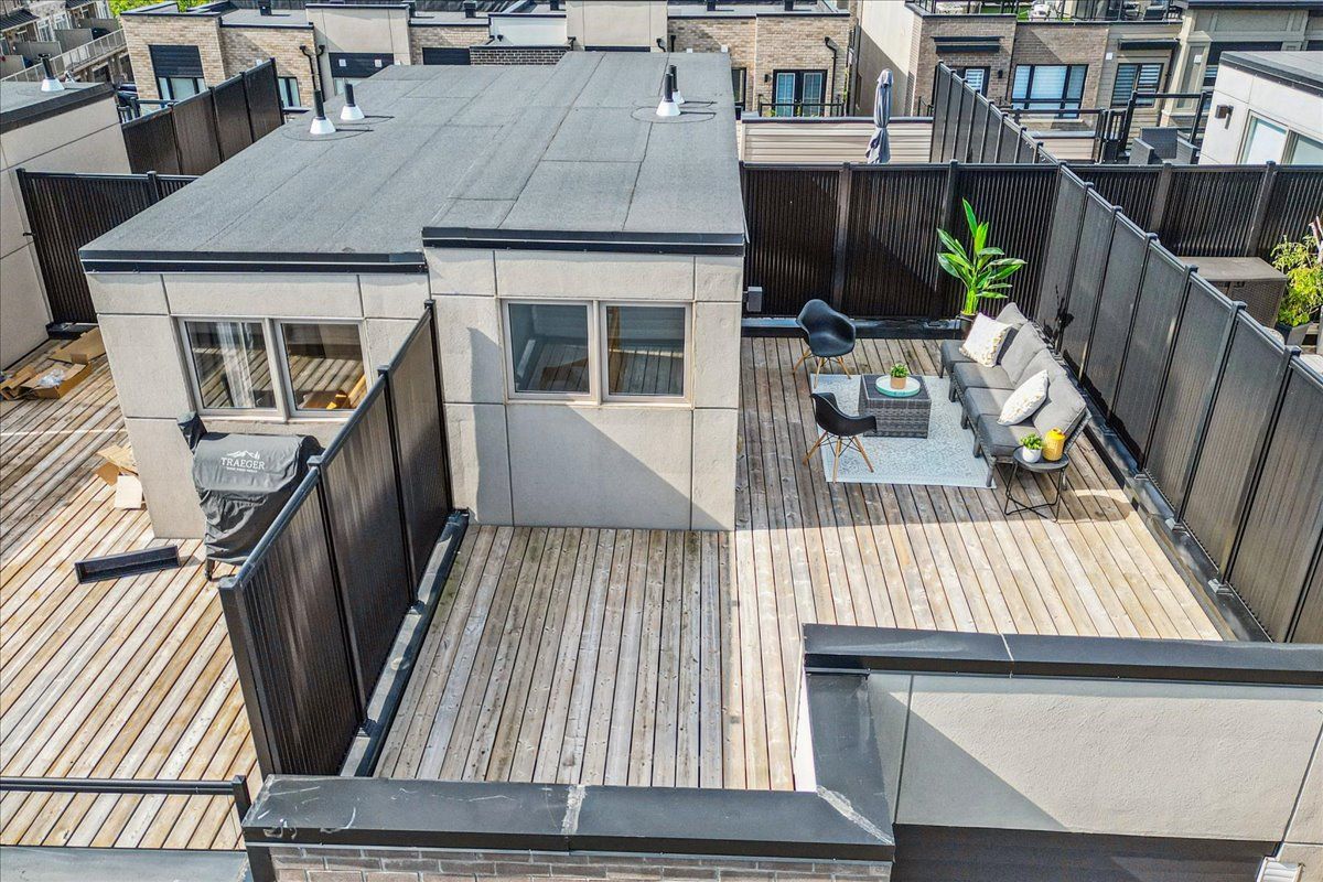 Welcome home to this beautifully maintained, move-in ready and recently painted 2-bedroom townhouse, perfectly situated in one of oakville's most amenity-rich neighbourhoods. This home offers approximately 1,490 sq ft of thoughtfully designed living space with 2+1 bathrooms and an exceptional rooftop terrace for true scenic enjoyment. The main level features an inviting open-concept layout with oak hardwood flooring, oversized windows, and walk-out access to one of three private balconies. The bright, neutral kitchen is beautifully finished with granite countertops, a breakfast bar, updated backsplash, and stainless steel appliances, seamlessly overlooking the dining and family rooms-perfect for entertaining. An elegant oak staircase leads to the upper level, where the spacious primary bedroom boasts large windows and a 4-piece ensuite. The generously sized second bedroom (nearly 9 x 13 ft) offers a light, airy feel with access to its own private balcony, along with an additional 4-piece bathroom on this level. The third floor reveals a stunning, oversized rooftop terrace-ideal for hosting friends and family or simply relaxing while taking in the scenic views. Conveniently located close to shopping, restaurants, schools, parks, and major highways (403/407 & qew), this is urban oakville living at its best.