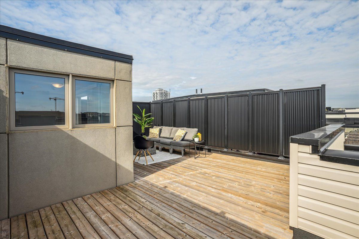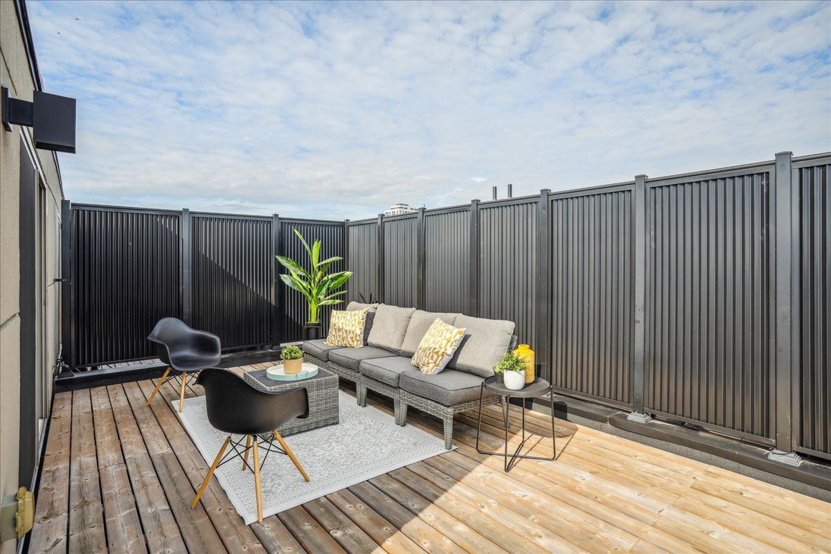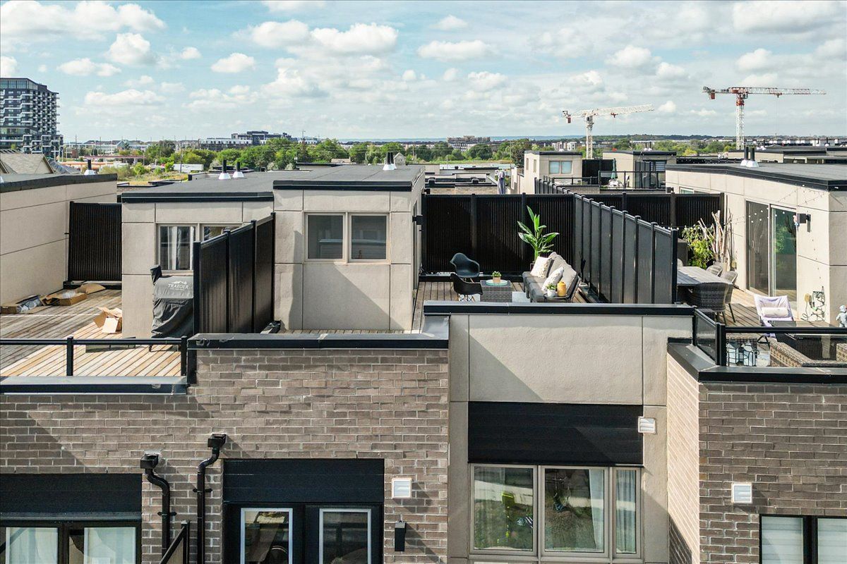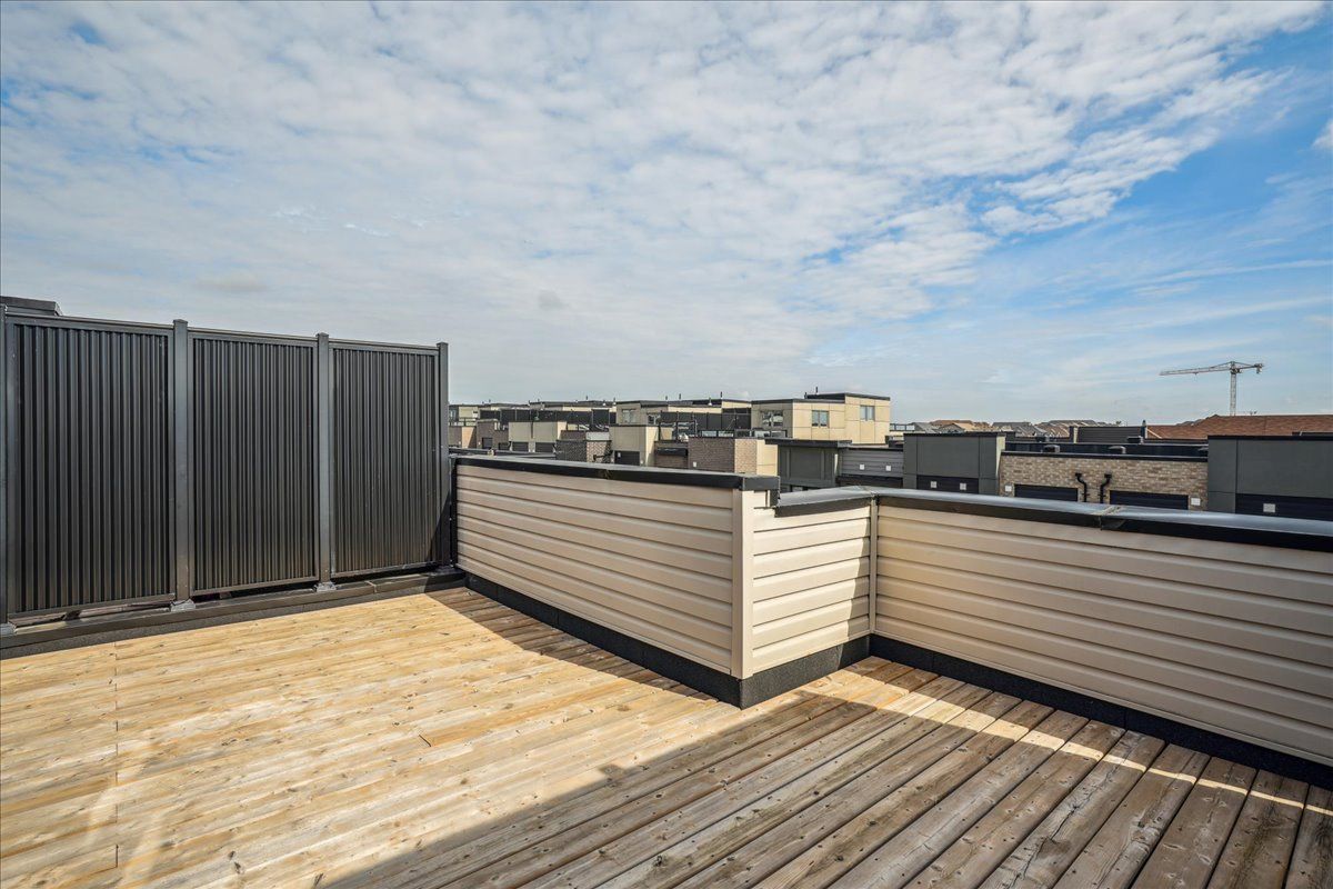 Welcome home to this beautifully maintained, move-in ready and recently painted 2-bedroom townhouse, perfectly situated in one of oakville's most amenity-rich neighbourhoods. This home offers approximately 1,490 sq ft of thoughtfully designed living space with 2+1 bathrooms and an exceptional rooftop terrace for true scenic enjoyment. The main level features an inviting open-concept layout with oak hardwood flooring, oversized windows, and walk-out access to one of three private balconies. The bright, neutral kitchen is beautifully finished with granite countertops, a breakfast bar, updated backsplash, and stainless steel appliances, seamlessly overlooking the dining and family rooms-perfect for entertaining. An elegant oak staircase leads to the upper level, where the spacious primary bedroom boasts large windows and a 4-piece ensuite. The generously sized second bedroom (nearly 9 x 13 ft) offers a light, airy feel with access to its own private balcony, along with an additional 4-piece bathroom on this level. The third floor reveals a stunning, oversized rooftop terrace-ideal for hosting friends and family or simply relaxing while taking in the scenic views. Conveniently located close to shopping, restaurants, schools, parks, and major highways (403/407 & qew), this is urban oakville living at its best.