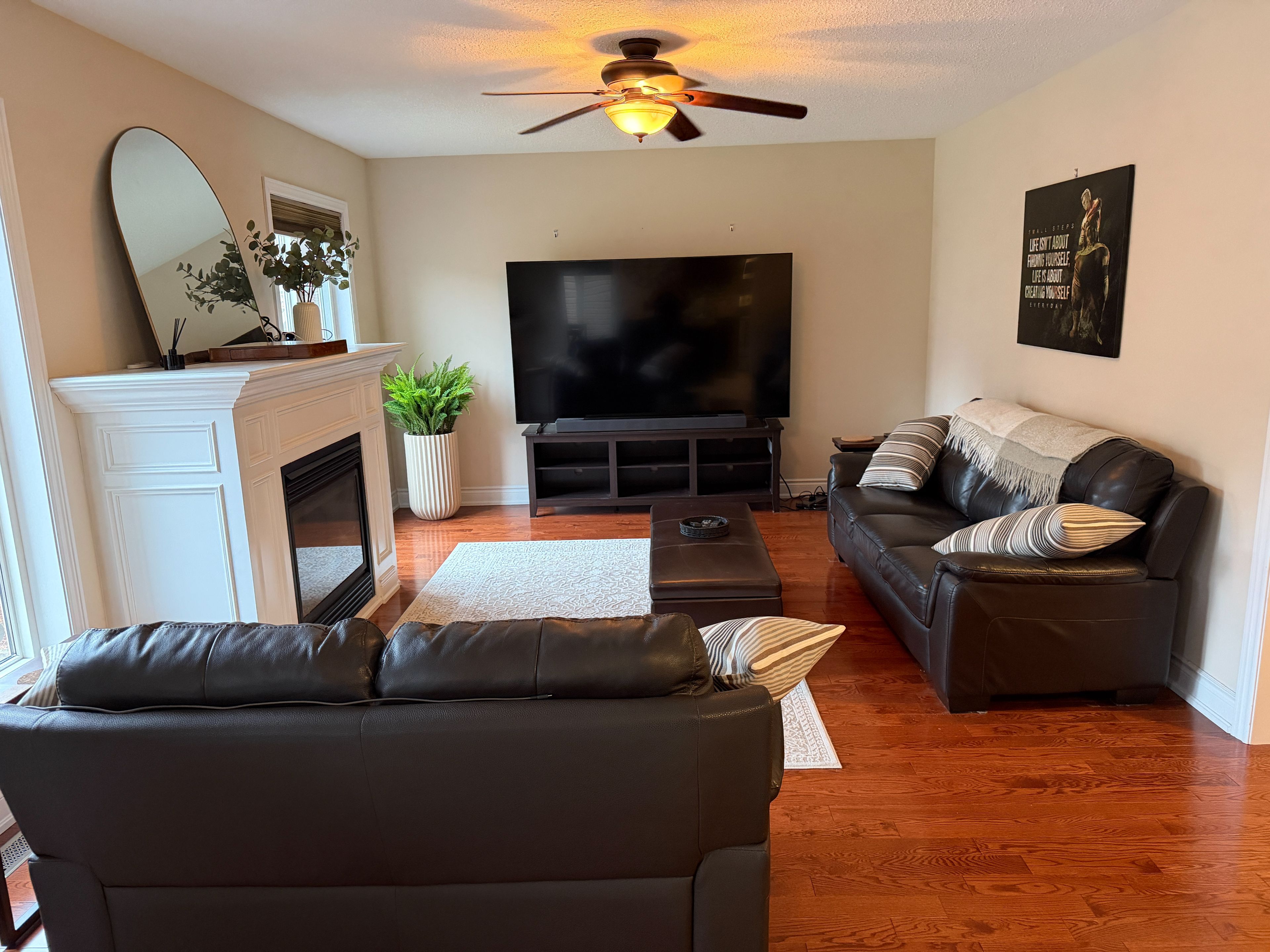 Countless upgrades with this incredible offer in vibrant westridge community in orillia. Experience turnkey living at its finest in this impeccably maintained mancini-built home. Spanning over 1,900 sq. Ft. Of finished living space, this residence offers an airy, open-concept layout bathed in natural light. The heart of the home is a tasteful kitchen featuring granite counter tops and stainless steel appliances, flowing seamlessly into a bright dinette. Step through sliding glass doors to your private oasis: a fully fenced, professionally landscaped backyard complete with a wooden deck and perennial gardens designed for low-maintenance beauty. The main floor is designed for convenience, featuring 2-pc powder room, gorgeous hardwood floors throughout, cozy gas fireplace, and direct access to the double-attached garage via an inside door. Upstairs, the massive primary suite serves as a true retreat with double-door entry, a walk-in closet, and a spa-like 4-piece ensuite with a deep soaker tub. Two additional oversized bedrooms and a pristine guest bath complete the level. The full height basement includes a roughed-in bath, and is ready for your personal touch. This home is minutes from lakeland university, georgian college, cosco, walmart and the best shopping orillia has to offer. A fantastic must-see property. Book your showing today!