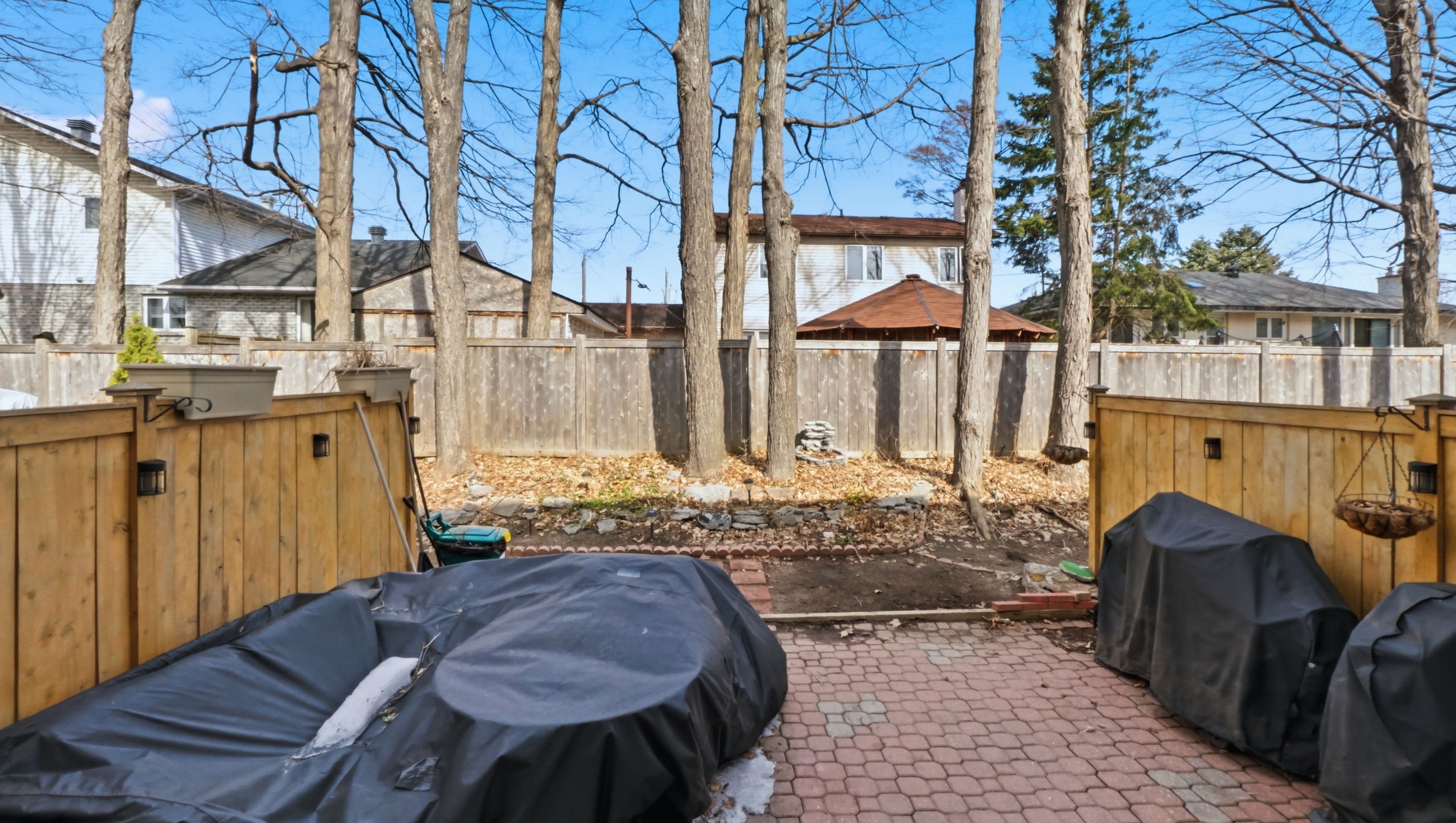 • Private paved backyard and patio, great for BBQs and low maintenance.