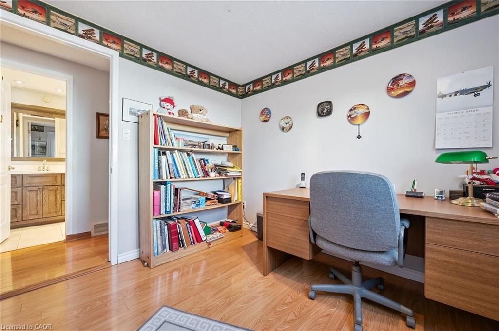 Nestled in desirable lakeshore north and backing onto peaceful parkland, this exceptional 4-level backsplit is truly move-in ready. Offering 3 spacious bedrooms and 2 bathrooms, the home features hardwood flooring on the main floor, large bedrooms, and an updated bathroom with a beautiful walk-in shower. The galley kitchen with gas stove is both functional and efficient, while the inviting family room with gas fireplace creates a warm space for relaxing or entertaining. Recent upgrades include newer windows, newer front door, and a new roof (2025). Upgraded electrical panel with breakers. Additional highlights include an owned water softener and a workshop with laundry, perfect for hobbies or extra storage. A fantastic location close to parks, schools, and amenities.