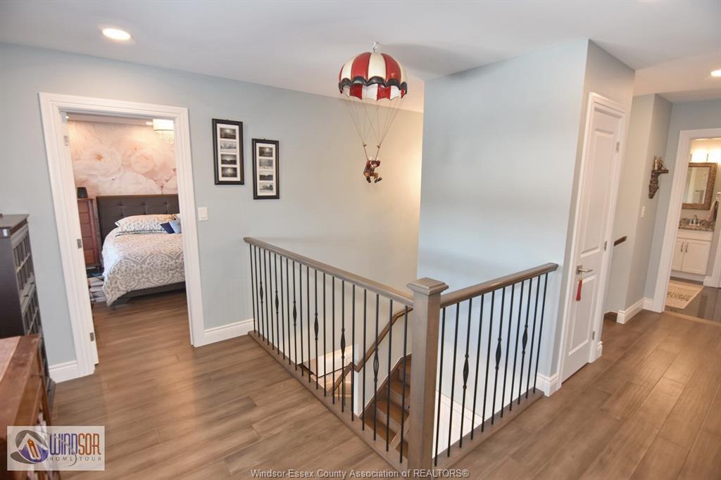 2500 sq ft one of a kind pristine 2 storey. Open concept living area with lots of natural light and fireplace at the end. Dining room open from living room. Plenty of white kitchen cupboards for all your utensils. Huge top of the line built in julia childs type thermador fridge and gas top stove with electric oven. Island sink and prep area with dishwasher. 4 large bedrooms with 2 large baths. 20x28 finished rec room in basement movie type screen. Franklin fireplace in basemnent. Outside has covered porches front and back with awnings. Heated ultraviolet light sport pool with side waterfall for nice ambiance. Salt hot tub and top euroshed for extras. Beautifully landscaped berm at side with many flowers and small trees with steel wrought iron fence behind. Separat thermostats for main and upper floor. Extra cupboards in the kitchen. Heated, lighted pool has a running waterfall at the side.