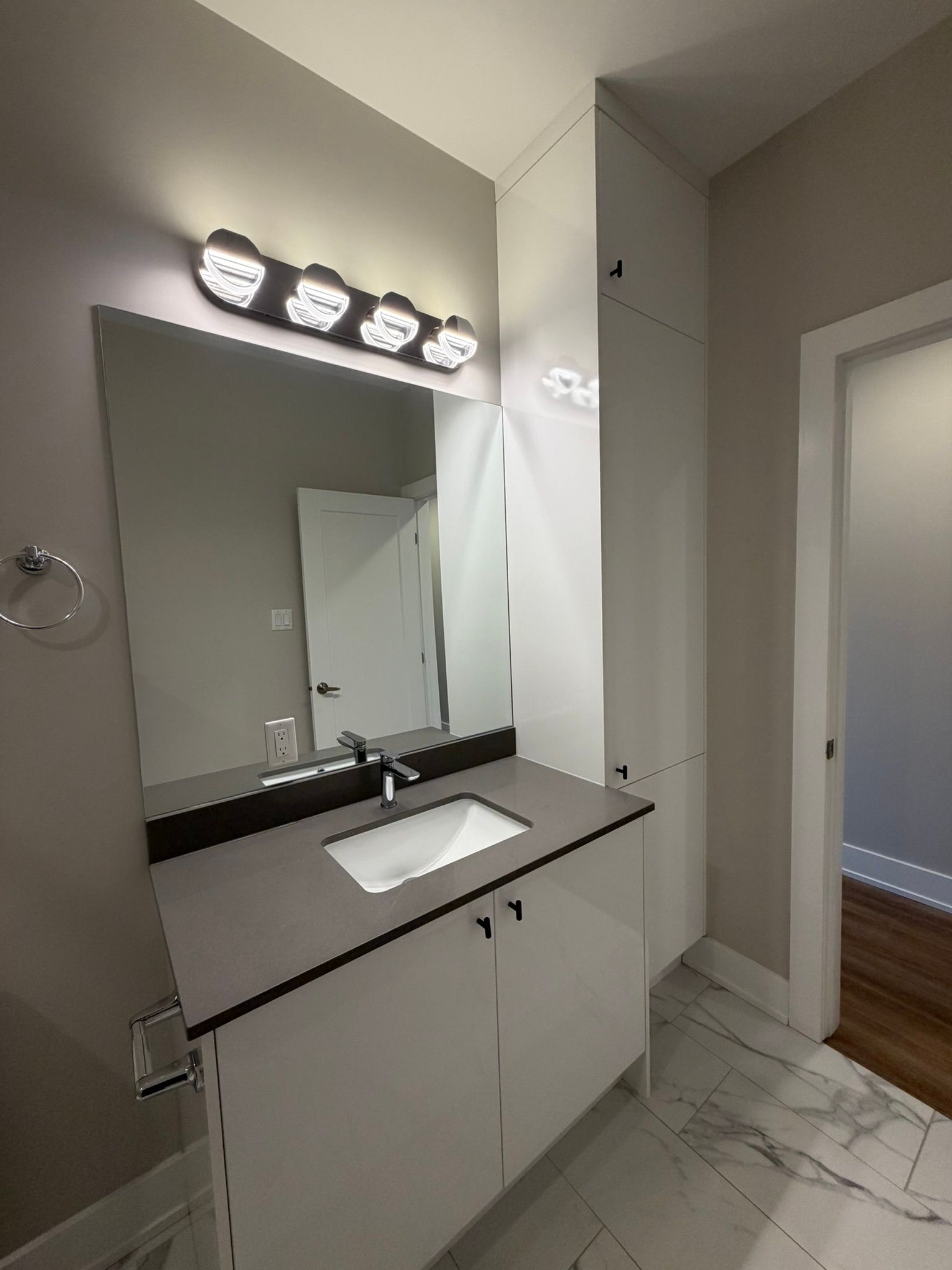• Primary bedroom features large window and modern ensuite bathroom.