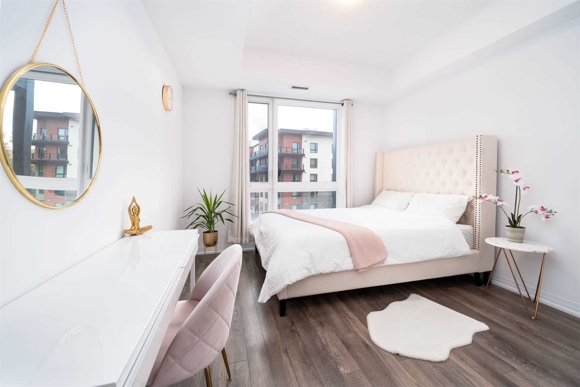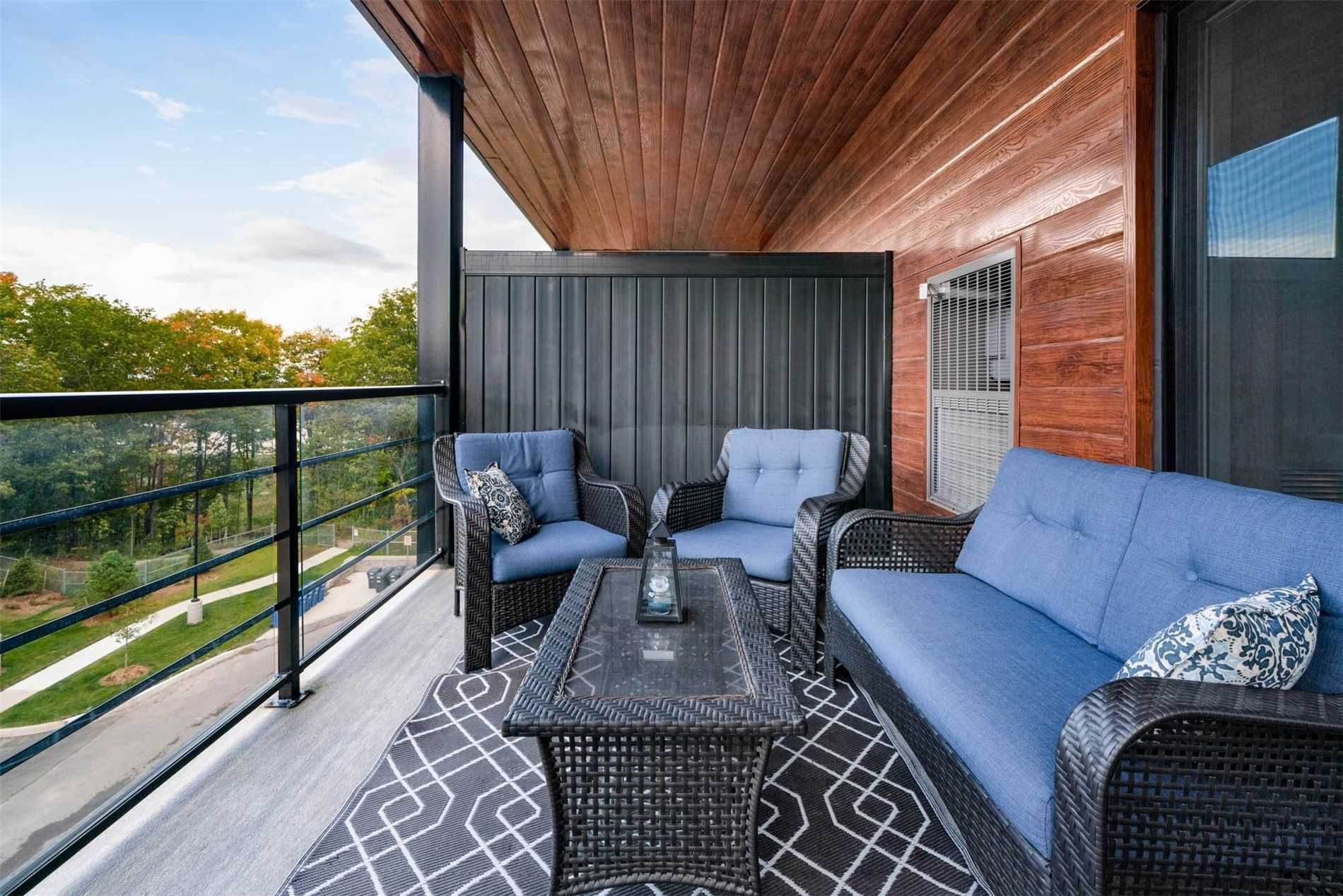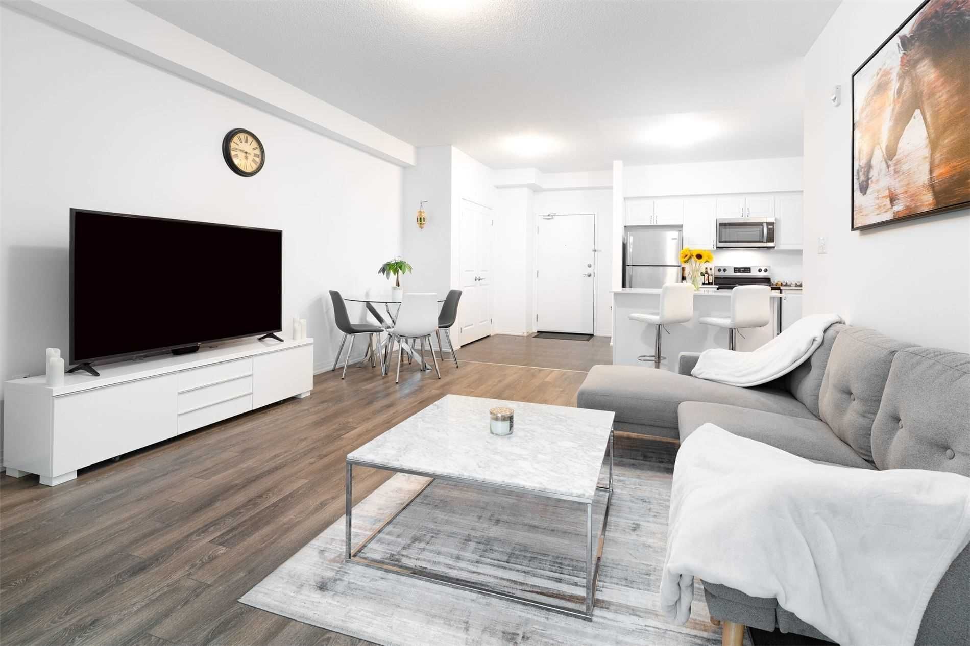 Bright & spacious 1 bedroom 1 washroom & over 800 sq. Ft. Of living space condo. Laminate floors, large open concept kitchen w/center island, quartz counter, backsplash, s/sappliances. Floor to ceiling windows,9 ft ceilings & oversized balcony w/space for patio furniture & bbq (allowed), surrounded by 14 acres of forest & trails. Minutes to highway 400, go station, all amenities, grocery stores, waterfront & so much more. One outdoor parking included.