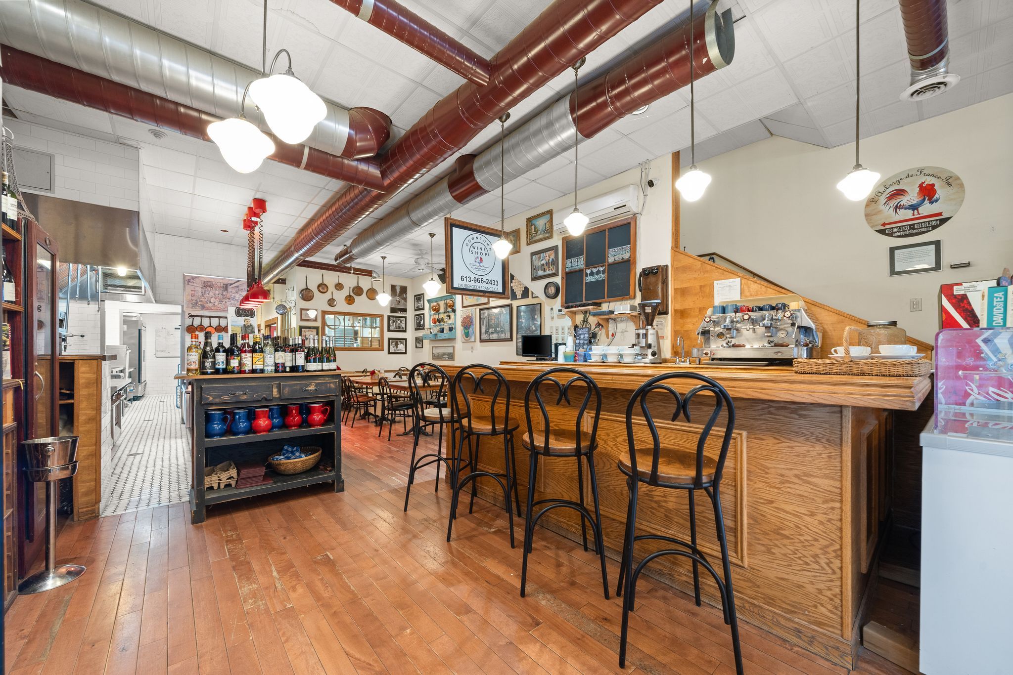 Very rarely does a flawlessly renovated building that contains not one, but two incredible businesses become available for sale. This 6700 square foot building contains not only one of the most well known restaurants in the quinte area, but also a successful short term rental business known as the the inn. The first floor is home to a 34 seat gourmet restaurant known as l'auberge de france that has a thriving dine-in and takeaway business. A bustling front patio in the summertime, which increases the number of seats to 58 , is regularly filled at lunch time and on weekends. Multiple income streams are derived from dine-in, take out, two large freezer cases for make-at-home dinners, and wine sales. In recent years, as the owner has begun to think about retirement, the restaurant's schedule has been reduced to 4 days a week with only lunch service each day. This represents a huge upside opportunity for a chef or restauranteur who wants to open in the evenings for dinner, stay open on additional weekdays, or cater events. One only needs to stop by during any lunch hour or saturday morning to see the huge demand for additional hours that is present here among a large and loyal customer base. The layout of the main kitchen and the lengthy list of equipment included in this sale is a restaurateurs dream that would work well for any style of food or restaurant. An open concept layout lets the dining room and the chef's kitchen blend seamlessly and function at maximum efficiency. The top two floors have been transformed into a two bedroom, two bath, 4000 sq ft one a kind airbnb is so busy it is already booking into 2026. As with the rest of the building, the seller undertook a full renovation down to the studs that has resulted in the creation of a one of a kind space that will provide income for years to come. On the third floor there is an additional space with its own private entrance that could potentially be converted into a second airbnb or an owners suite.