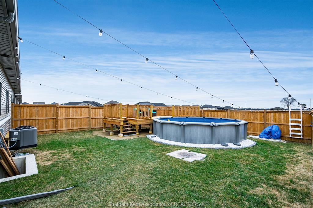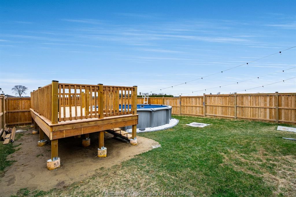 • Fully fenced yard with an above-ground pool and spacious deck for relaxation.