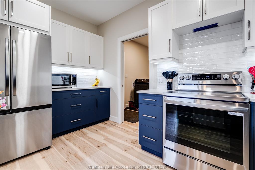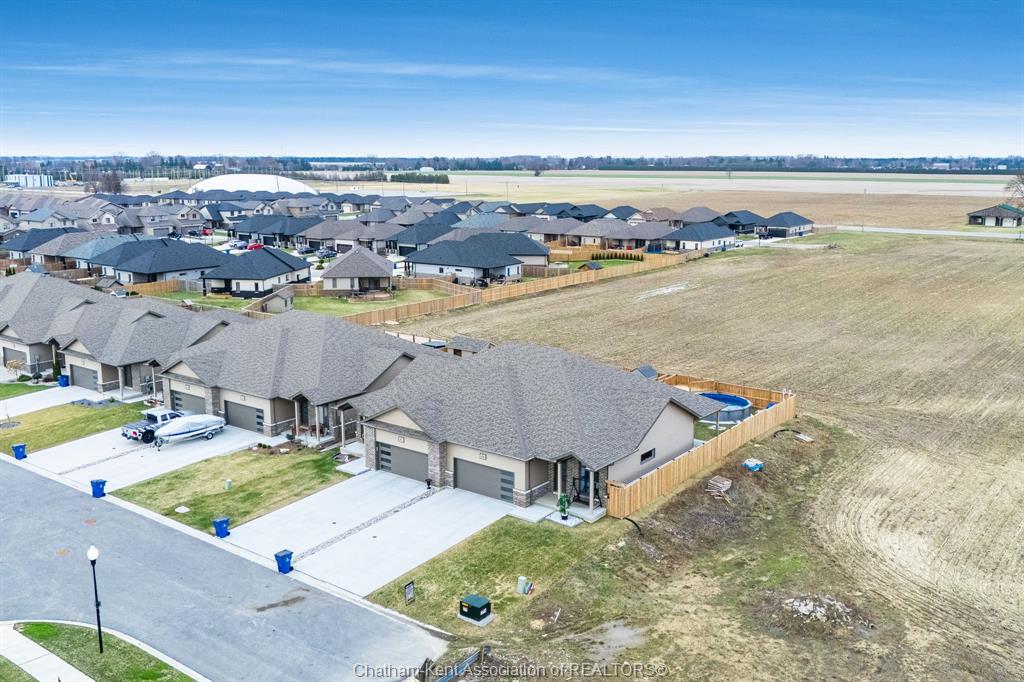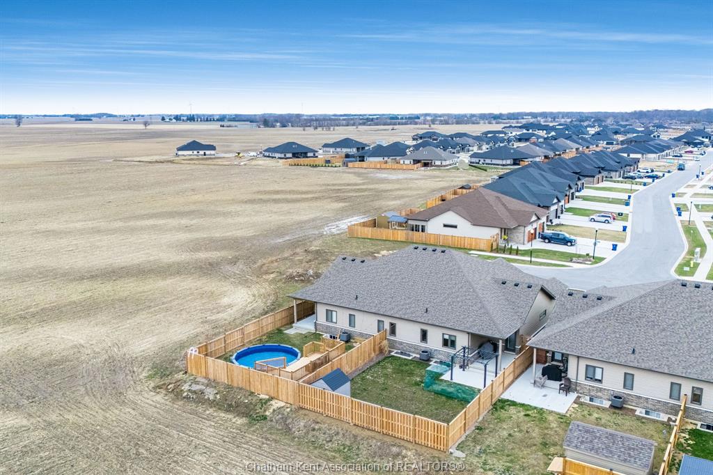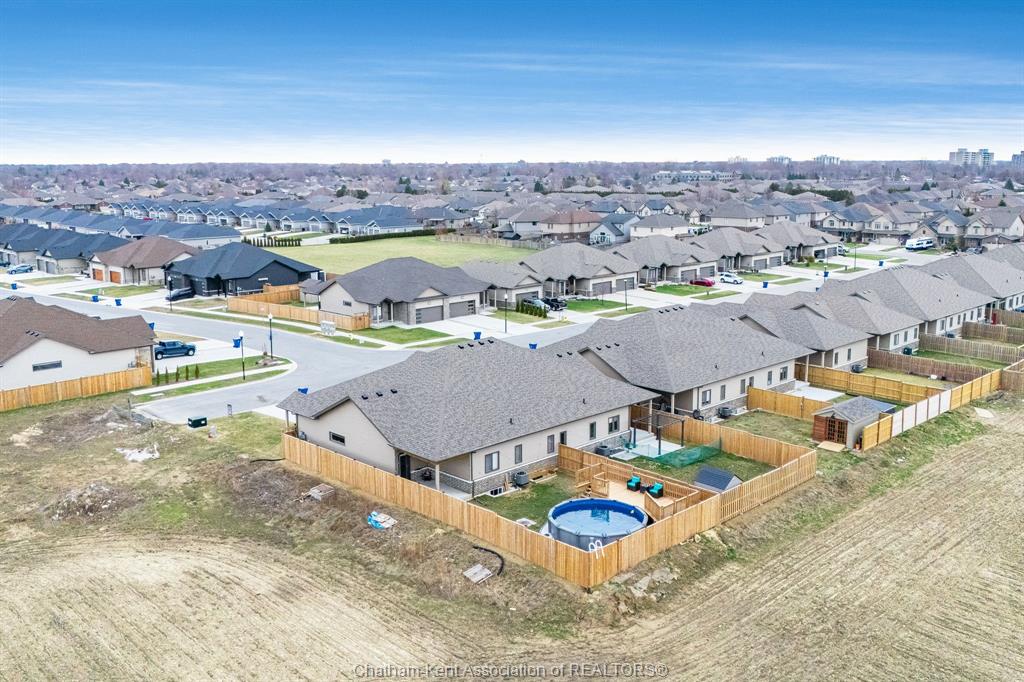 Experience the perfect blend of modern sophistication and effortless living in this 2-year-old semi-detached bungalow, situated in the highly sought-after prestancia neighbourhood on the north side. This "the roxbury" model by mch homes offers a premium lifestyle on a quiet, low-traffic street, perfectly positioned for those seeking quick access to local shopping, walking trails, and the convenience of north-end amenities. Step inside to a bright, open-concept layout featuring 1,463 square feet of carpet-free living space. The chef-inspired kitchen serves as the heart of the home, boasting sleek quartz countertops and an abundance of cabinet storage. The primary suite offers a private retreat with a spacious walk-in closet and a dedicated 4-piece ensuite. Practicality meets style with a large main-floor laundry and mudroom that provides seamless inside entry from the attached double-car garage. The exterior is designed for ultimate relaxation and privacy. As the last unit on the street, you’ll enjoy a serene setting with no rear neighbours. The fully fenced yard (2025) is a true summer destination, featuring an above-ground pool (2025) and an expansive deck. Whether you are hosting on the covered rear porch or looking to double your living space in the vast unfinished basement—already equipped with bathroom and central vac rough-ins—this home is a rare find in today’s market. Don’t miss your chance to own in one of chatham’s premier communities. Contact your realtor® today to book your private showing!