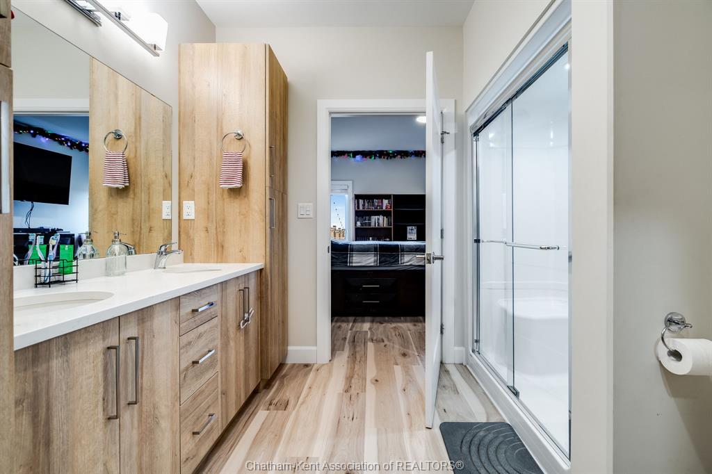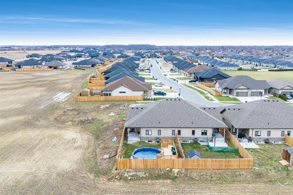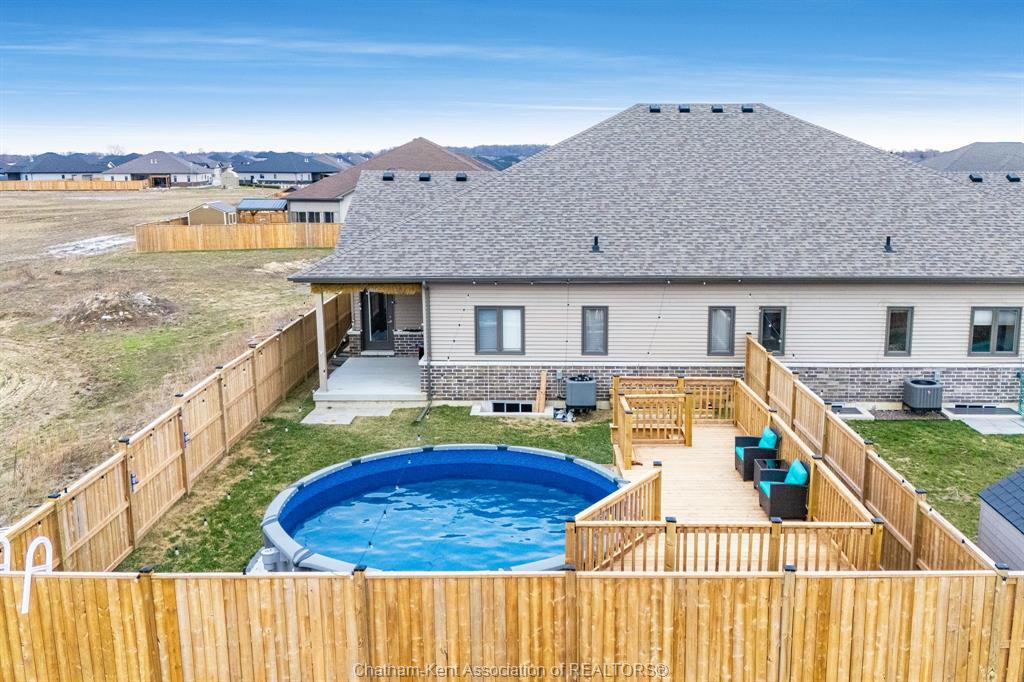 Experience the perfect blend of modern sophistication and effortless living in this 2-year-old semi-detached bungalow, situated in the highly sought-after prestancia neighbourhood on the north side. This "the roxbury" model by mch homes offers a premium lifestyle on a quiet, low-traffic street, perfectly positioned for those seeking quick access to local shopping, walking trails, and the convenience of north-end amenities. Step inside to a bright, open-concept layout featuring 1,463 square feet of carpet-free living space. The chef-inspired kitchen serves as the heart of the home, boasting sleek quartz countertops and an abundance of cabinet storage. The primary suite offers a private retreat with a spacious walk-in closet and a dedicated 4-piece ensuite. Practicality meets style with a large main-floor laundry and mudroom that provides seamless inside entry from the attached double-car garage. The exterior is designed for ultimate relaxation and privacy. As the last unit on the street, you’ll enjoy a serene setting with no rear neighbours. The fully fenced yard (2025) is a true summer destination, featuring an above-ground pool (2025) and an expansive deck. Whether you are hosting on the covered rear porch or looking to double your living space in the vast unfinished basement—already equipped with bathroom and central vac rough-ins—this home is a rare find in today’s market. Don’t miss your chance to own in one of chatham’s premier communities. Contact your realtor® today to book your private showing!