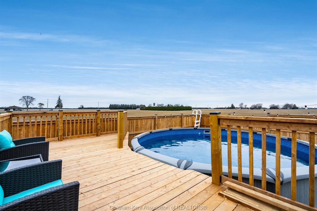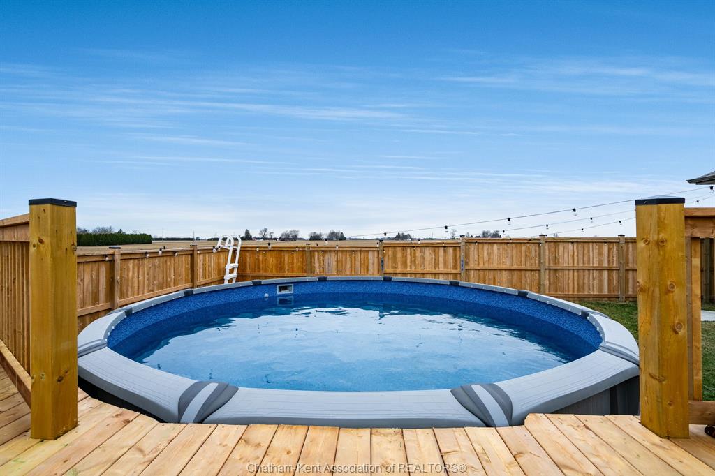 • Fully fenced yard with above-ground pool and expansive deck for relaxation.