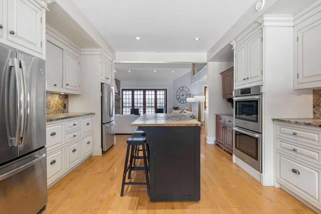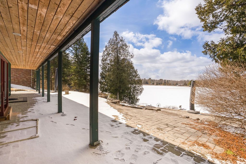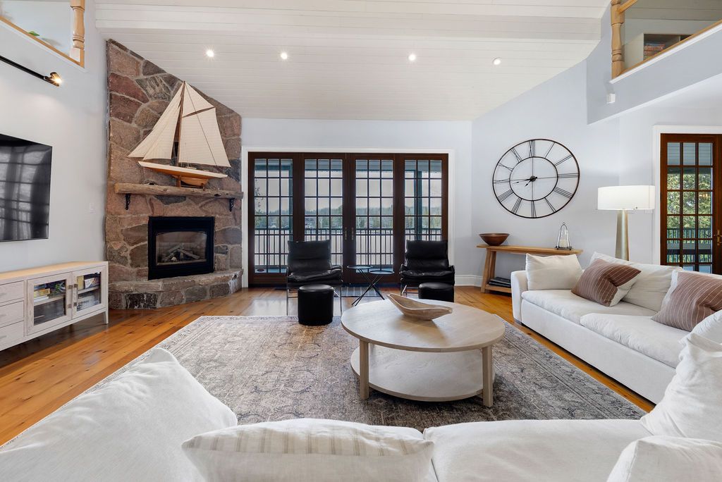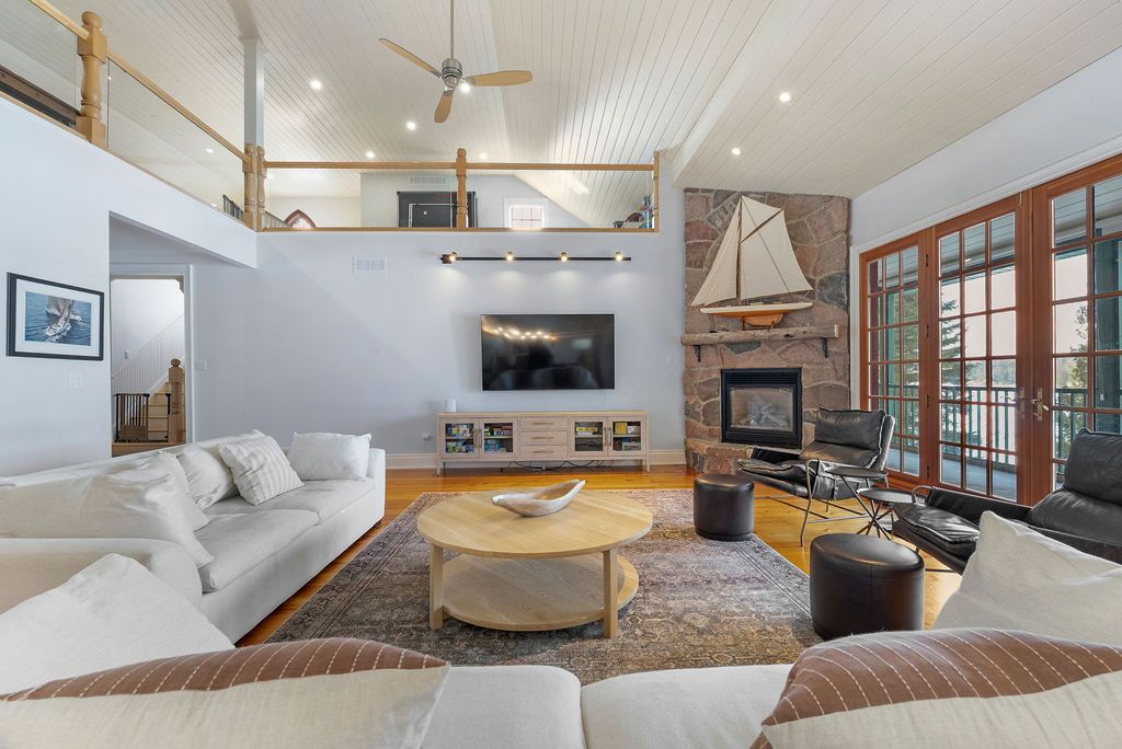 Balsam lake | a masterpiece of lakeside living experience unparalleled luxury in this custom-built lake house, offering over 5,900sq. Ft. Of premium living space across three finished levels. Designed for grand-scale entertaining, the home features 8 spacious bedrooms and 4 full baths, including a private cedar sauna. The heart of the home is a voluminous great room boasting 28-foot ceilings, a floor-to-ceiling stone fireplace, and seamless access to a 60-foot screened lakeside deck-perfect for taking in spectacular westerly sunsets. The chef's kitchen is a culinary dream, equipped with double wall ovens, twin double-door fridges, and leathered granite countertops. Upstairs, an expansive loft offers a games area overlooking the living space, while the walkout lower level provides a secondary entertaining hub just steps from the water. Professionally landscaped with armour stone and interlock, this indian point gem includes access to private tennis, pickleball, and a vibrant community association. Rare and remarkable, this is more than a home, it is a bucket-list essential.