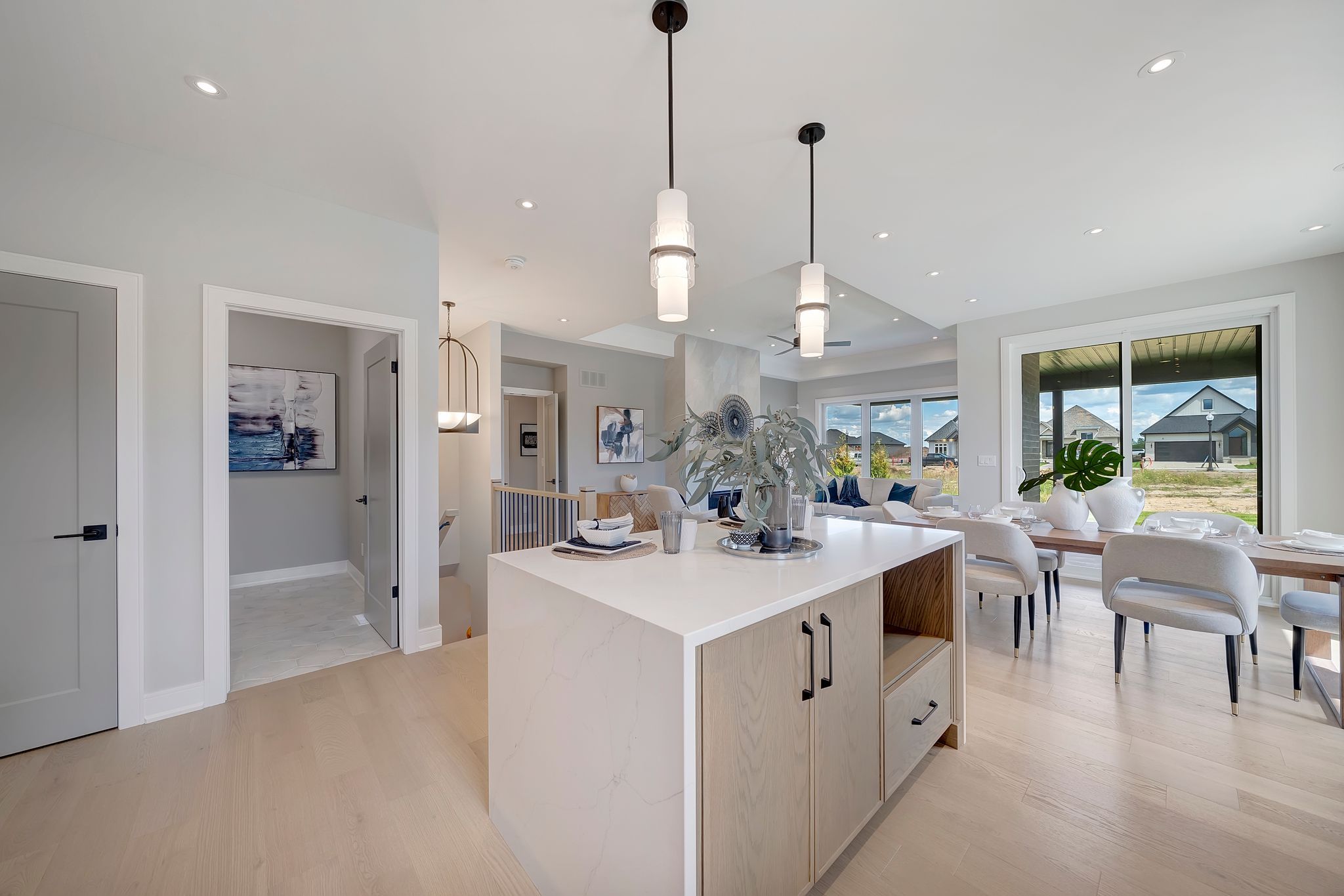 Welcome to watercrest at hunters pointe - an exclusive 55+ active adult community in north welland, in the heart of niagara. This is one of the final releases from lucchetta homes, known for thoughtful design, bold architecture, and high-quality finishes that stand the test of time. Enjoy resort-style living with monthly fees of $265 that include full access to a private clubhouse featuring a saltwater indoor pool, fitness centre, hot tub, sauna, games room, library, banquet hall, tennis and pickleball courts. Lawn care, driveway snow removal, and monitored security are also included - offering unmatched lifestyle value. This exterior model, the haven, delivers 2,169 sq ft of finished living space with 2+1 bedrooms, 3 bathrooms, and a double garage. The layout is open and airy with 9 ft ceilings, a cathedral great room, and oversized windows that flood the space with light. A covered rear deck extends your living space outdoors. Built to energy star standards, this home exceeds ontario building code performance by 20% with efficient mechanicals, smart insulation, and premium materials. Outside, the brick, stone, and stucco façade is paired with an asphalt driveway, irrigation system, and clean landscape design. Interior finishes mirror the completed "model i" (see listing photos): hardwood flooring, quartz counters, pot lights, tiled shower surrounds, and a stunning kitchen with full custom cabinetry, dovetail drawers, under-cab lighting, and tile backsplash. The great room centres around a gas fireplace with 24x24" tile surround and white oak mantel. White oak railings with glass inserts, flush vents, and elevated trim details complete the space. The primary suite features crown moulding, a wallpaper accent wall, pendant lighting, and a luxurious ensuite with heated tile floors, tiled niche, and bold black shower base. The finished basement offers vinyl plank floors, a large rec room (optional wet bar), an additional bedroom, and a full bath. Schedule a tour today!