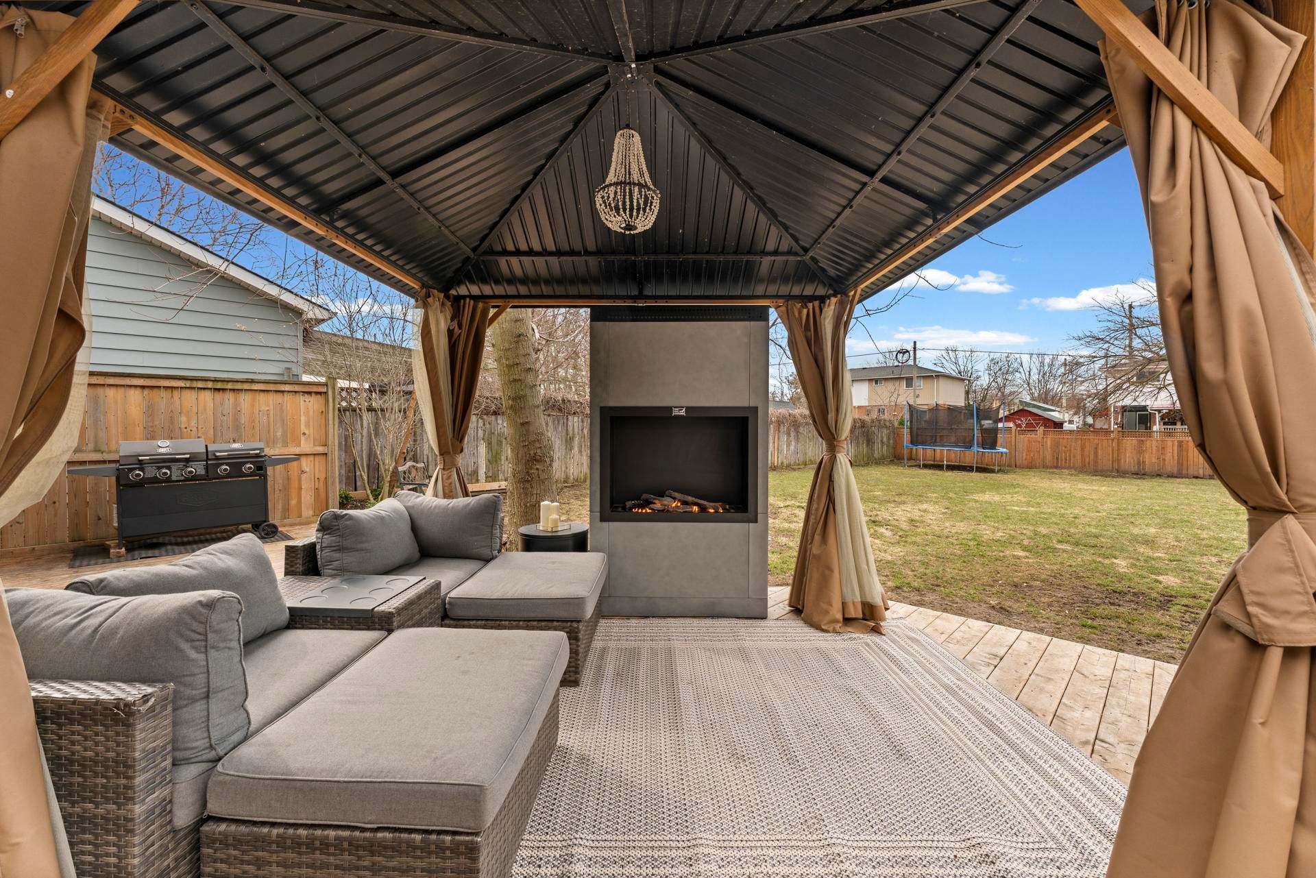 • Spacious outdoor area with a deck, fire pit, and hot tub.