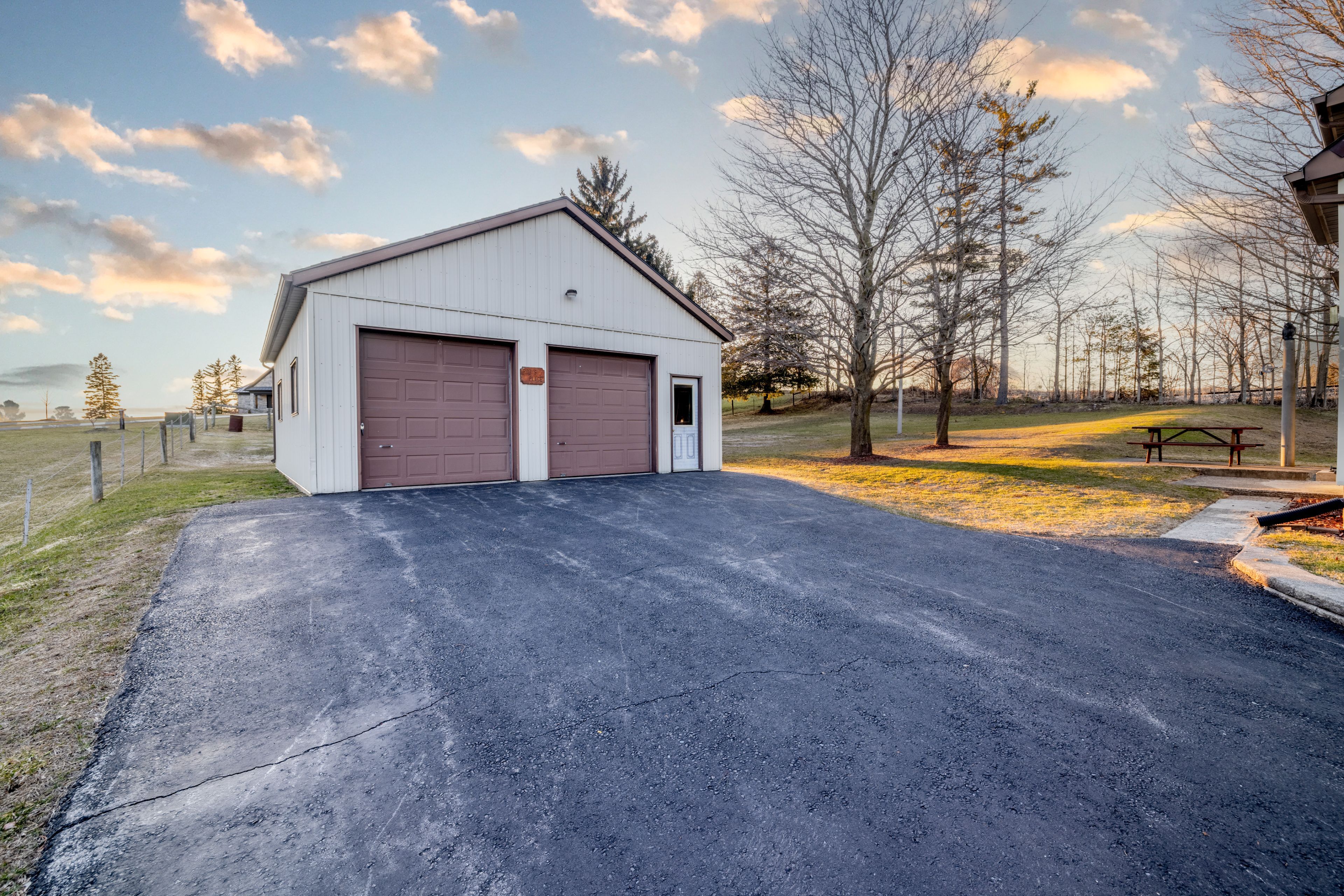 • Detached 747 sqft shop with two garage doors for extra storage or workspace.