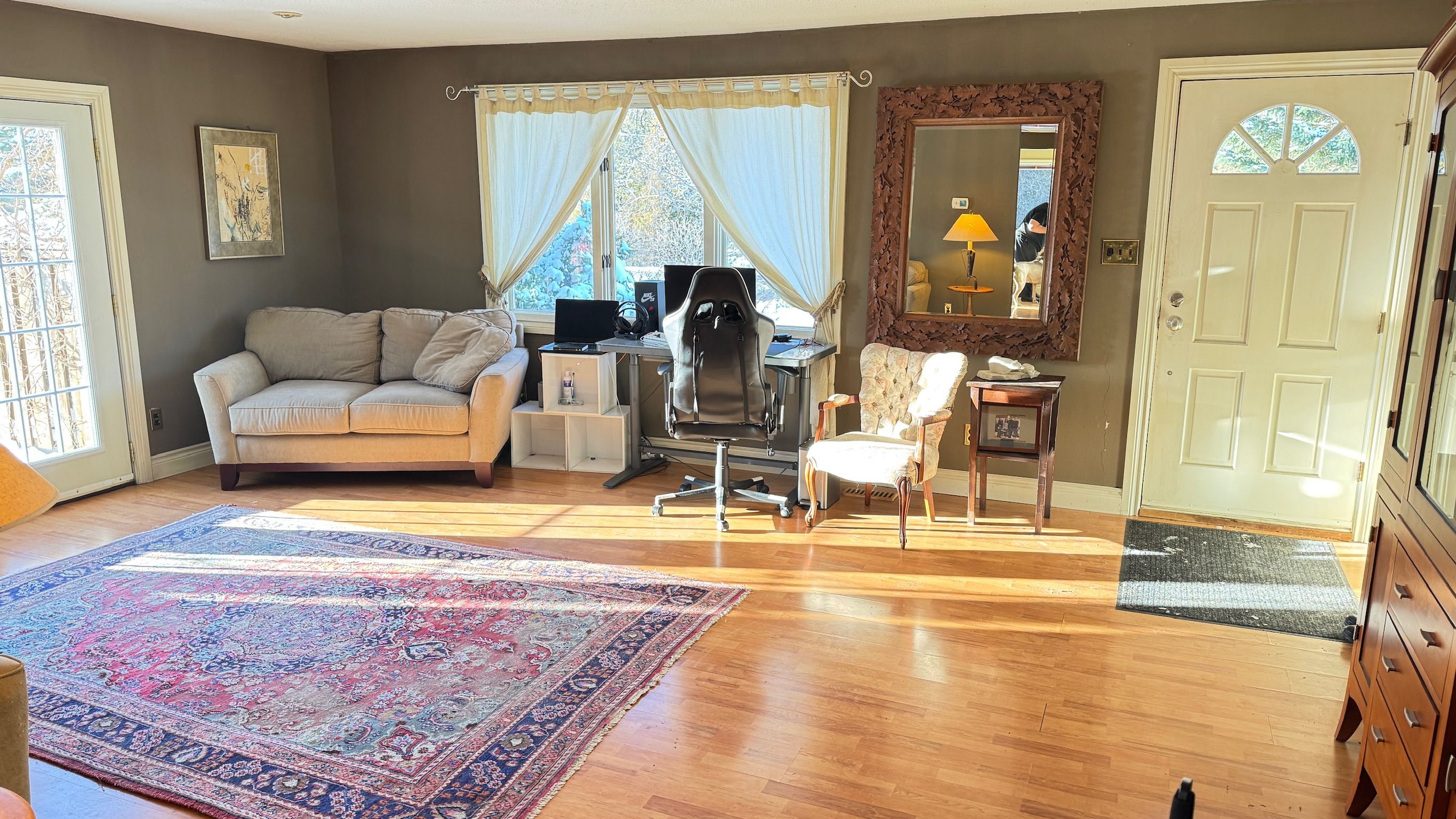 Beautiful and spacious bungalow on 2. 3 acres of landscaped, park-like property. The main floor features a spacious primary bedroom withfrench doors leading to rear yard, a generous second bedroom with its own two-piece ensuite a 3 room suitable for a bedroom (currently used asa den) the bright, open-concept kitchen, dining room, and sunroom create an inviting space for cooking and gathering, while the large livingroom with double glass doors leads to an expansive deck. The fully finished basement offers a separate entrance, a family room, and a dedicatedworkout area-perfect for hobbies, guests, or extended living. Outside, enjoy a 24-foot above-ground pool, and plenty of room to relax or entertain. A detached two-car garage adds convenience and extra storage. This beautifullymaintained property offers privacy, space, and exceptional indoor-outdoor living-an ideal retreat just minutes from town. The heating system isan economical heat source pump with electric back up and a/c for those hot summer days. All systems have been well maintained over theyears. Book a viewing today.