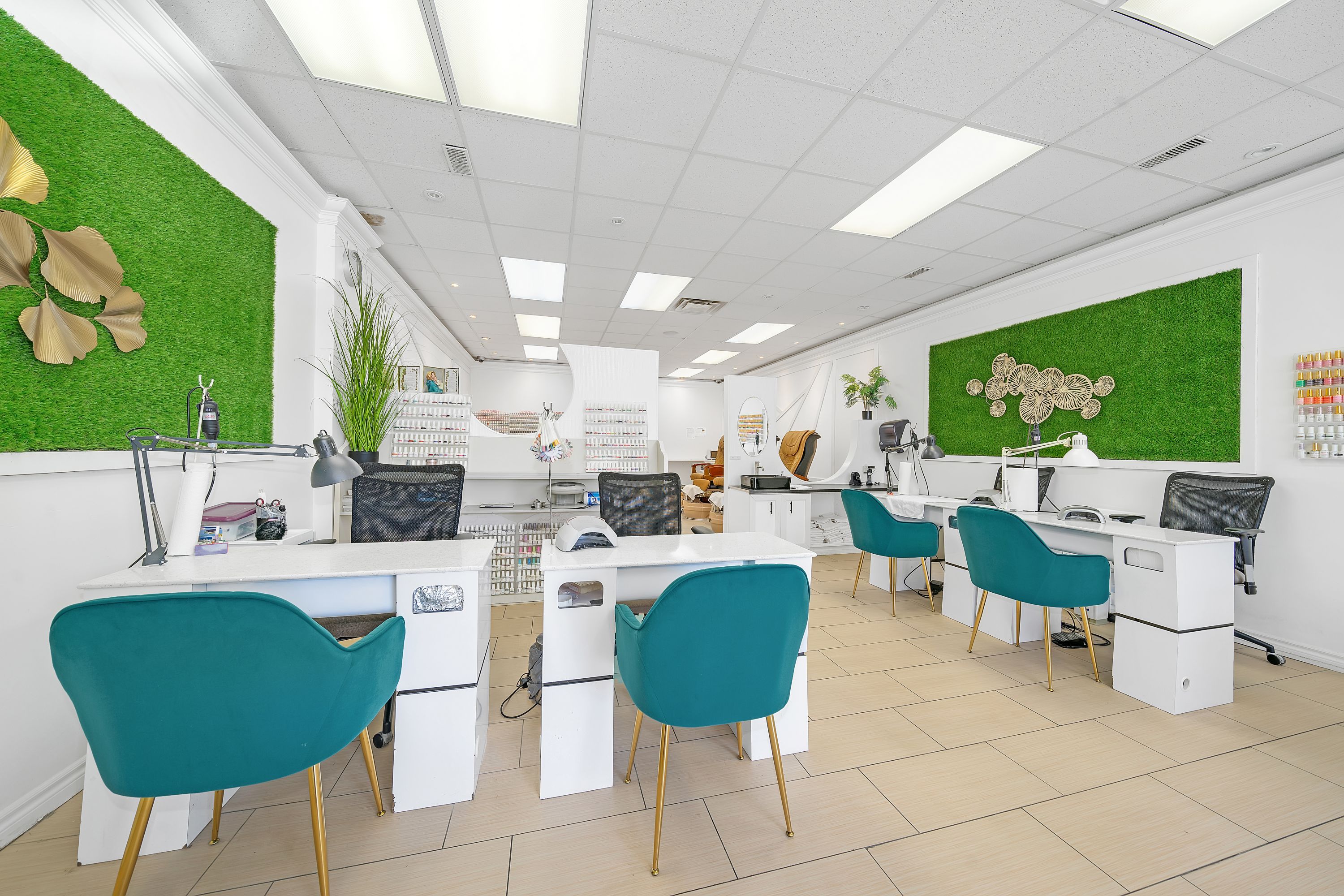 • Two treatment rooms and twelve stations for manicures and pedicures.